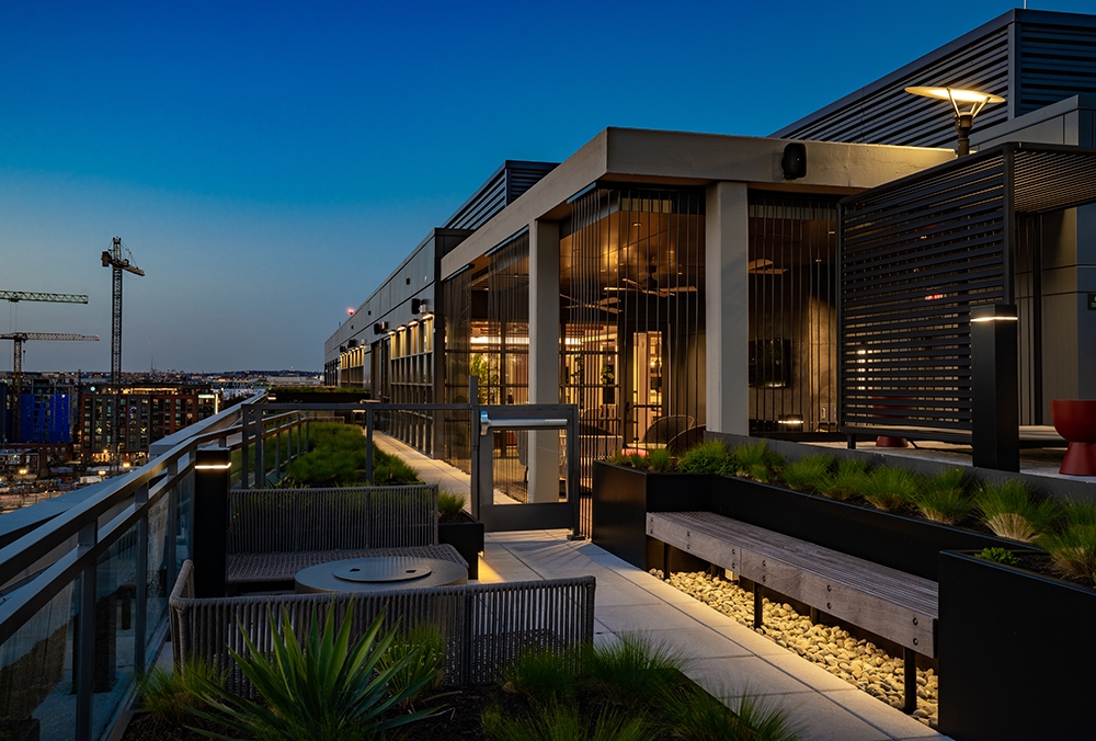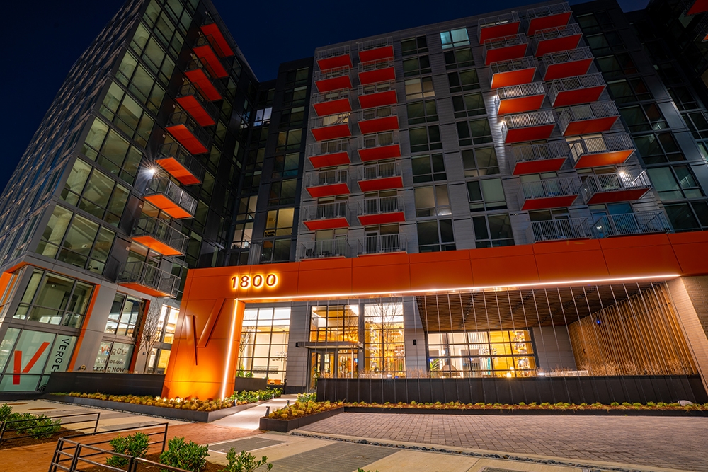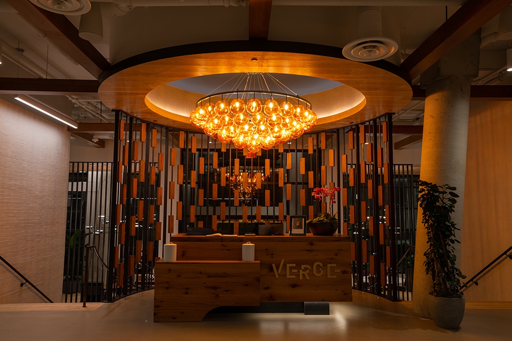 Entry DescriptionIncorporating the industrial feel of the area, combined with warm wood elements/materiality, The Verge exhibits a homelike atmosphere. All of this was considered when designing the lighting for the interior and exterior amenity spaces, as well as the residential units. Minimalistic LED architectural luminaires are used throughout, selected and placed to enhance the interior design and architecture. In selected areas, LED filament lamps are used to introduce the classic Edison lamp style into the decorative luminaires. At the main entry reception, a large custom decorative chandelier framed by a soft circular ambient cove makes a bold statement, creating an intimate, human-scale moment with an extremely warm CCT, contrasting the 2700K CCT used throughout the rest of the interior amenity areas. Continuing into the building, architectural luminaires vary from general wide-distribution downlighting and focal glow spot accents to wall-washers, wallgrazers and indirect coves. There is a rhythm to the lighting locations - they are dancing with the interior design and architecture. Multiple coves and integrated millwork lighting all surround a row of central decorative pendants creating a beautiful well-lit experience in the mailroom. The rooftop exterior amenity is carefully designed to meet life-safety, while maintaining an aesthetically pleasing relaxing environment. Enjoy!