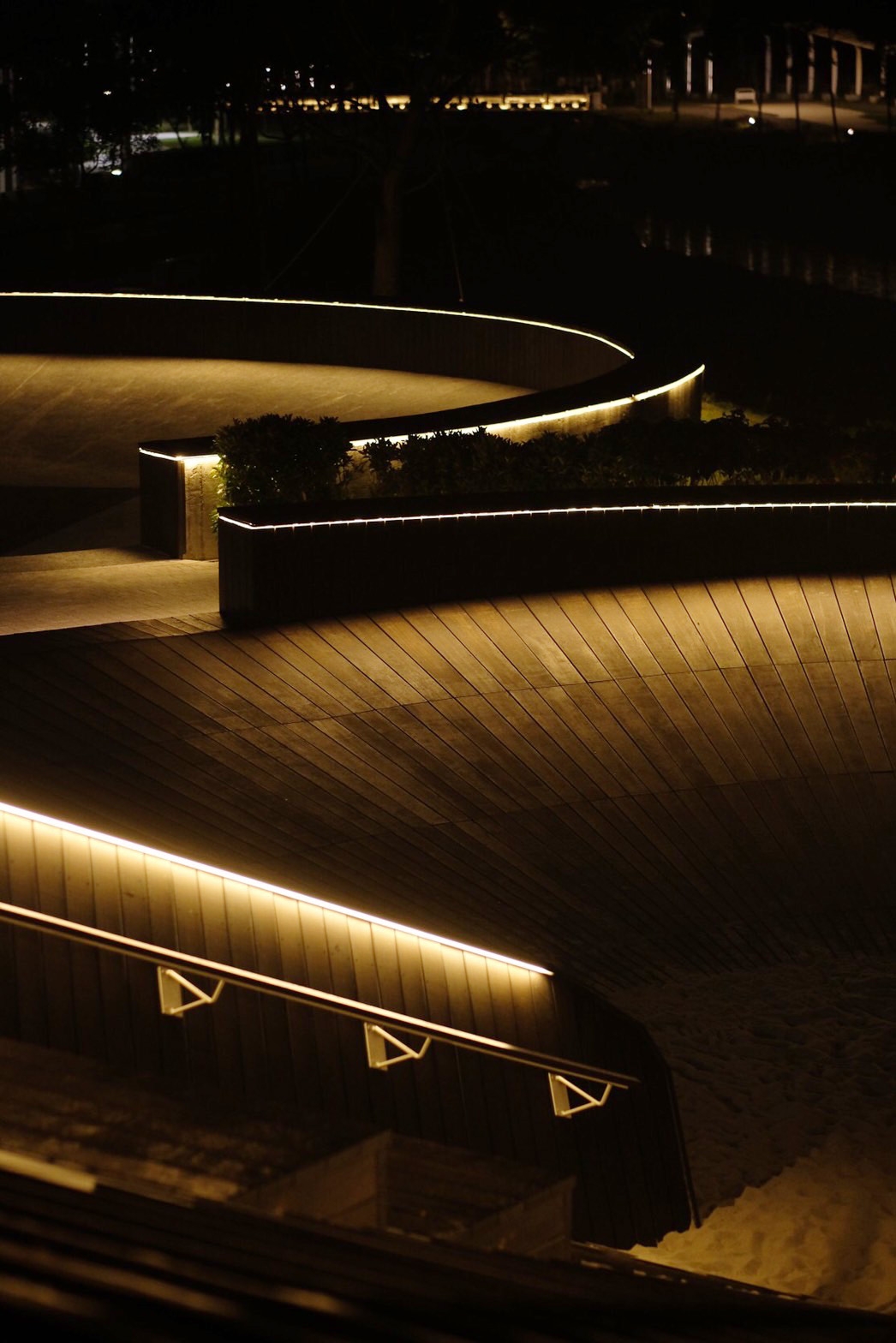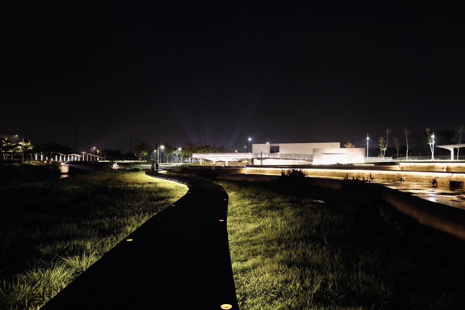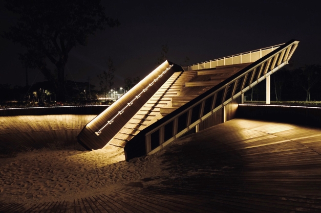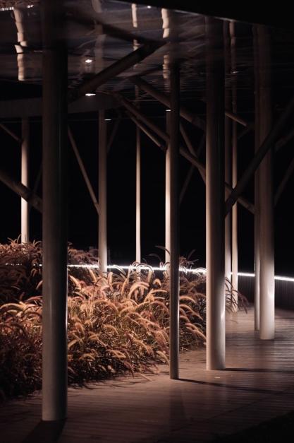 Sustainability ApproachThe design uses existing ruins to transform into a park, with 0.5 hectares of land grading into the slope so seasonal floods can happen and create wetland for natural restoration. The lighting design merges into the landscape to create an outline.