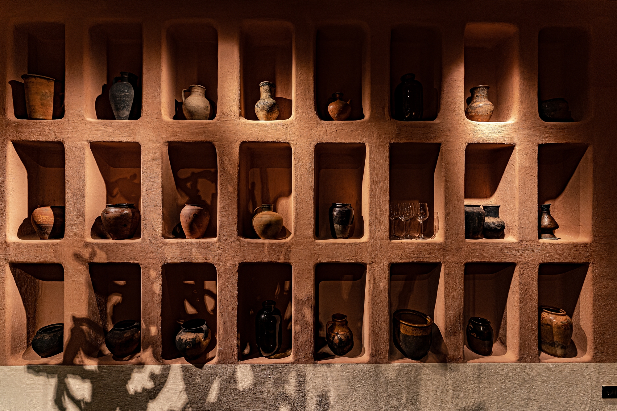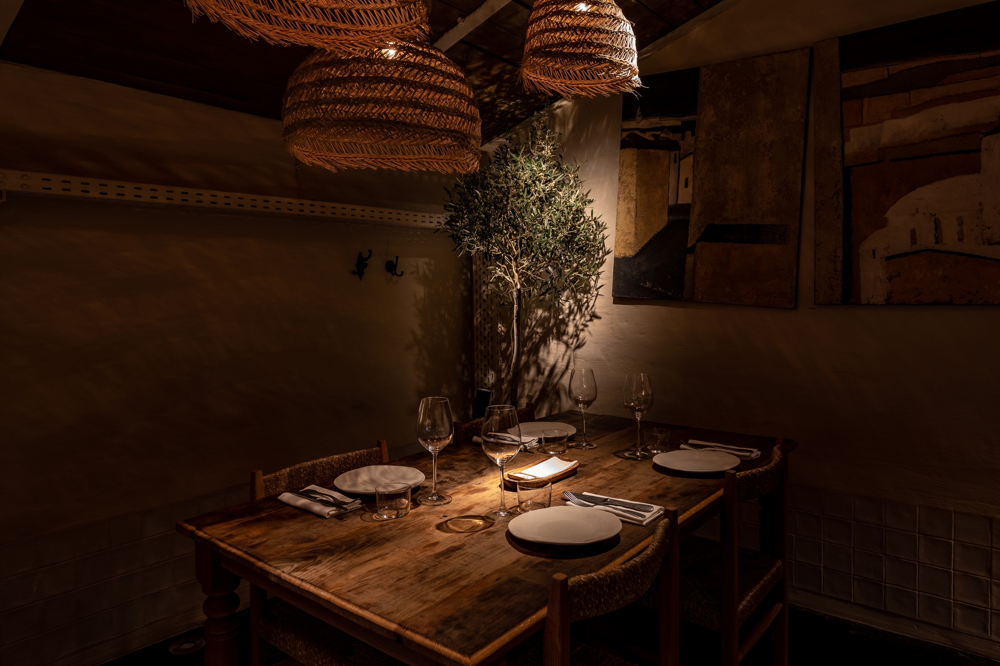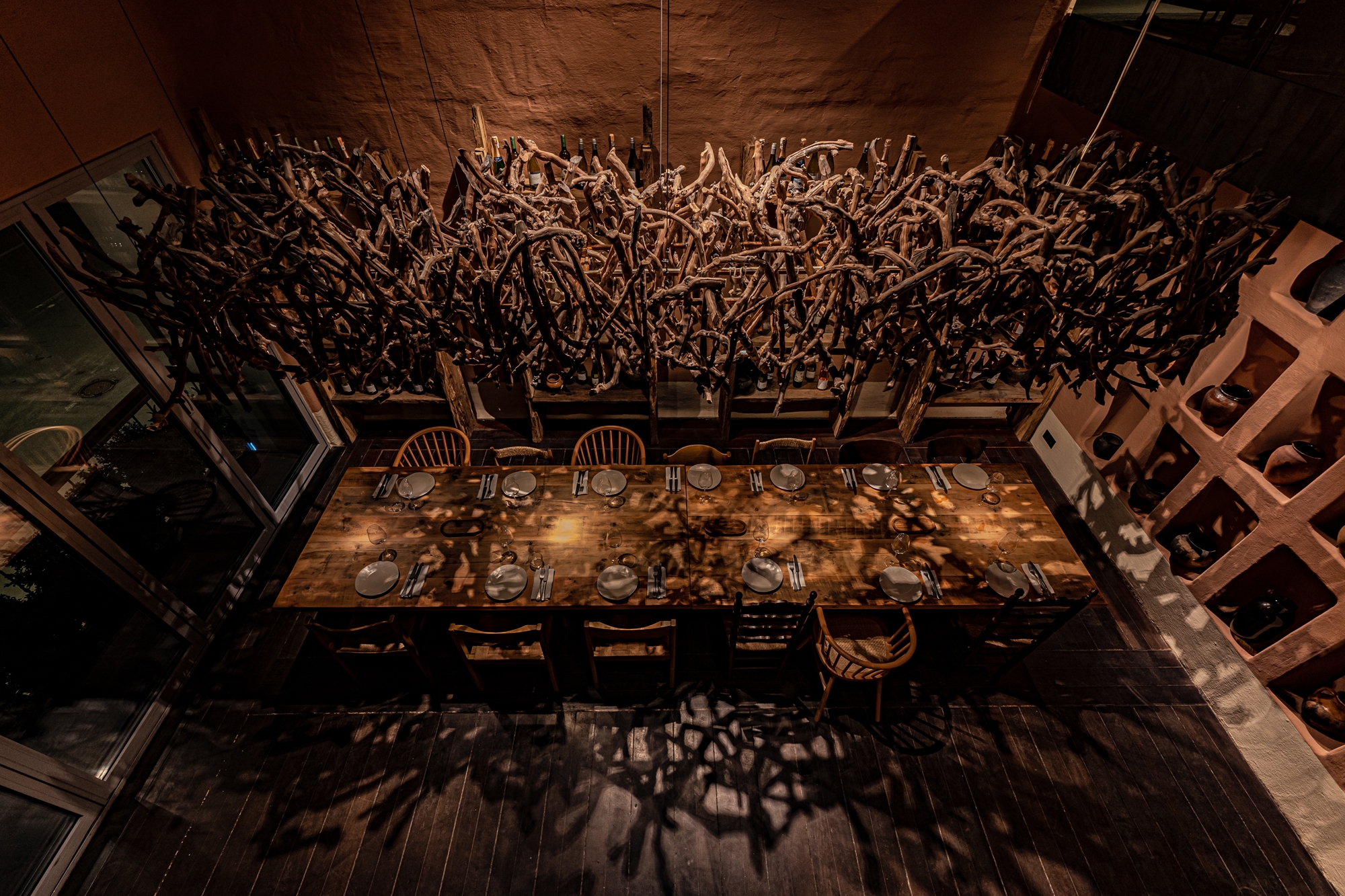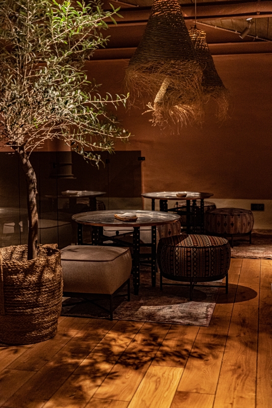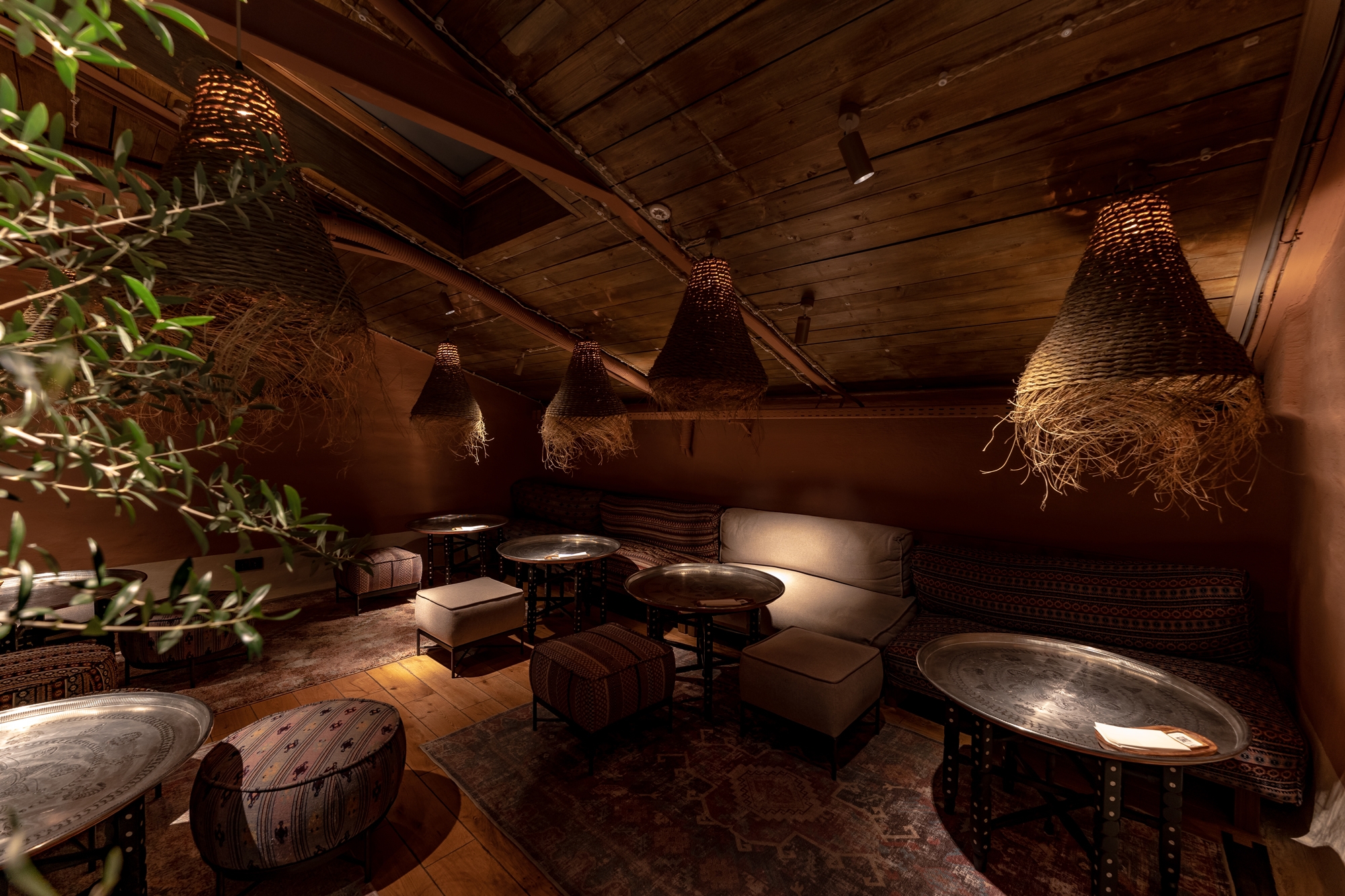 This is an ethnic restaurant with ethnic elements, so our main task was to enhance the natural materials' tactility. With light, we emphasized the live plants in the restaurant and focused on the picturesque shadows from plants and accessories.