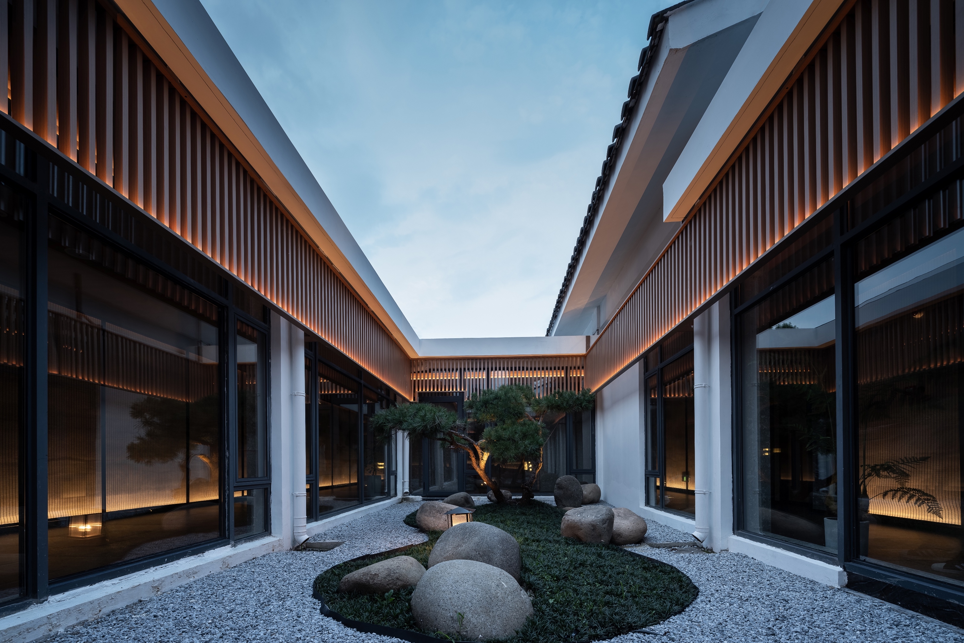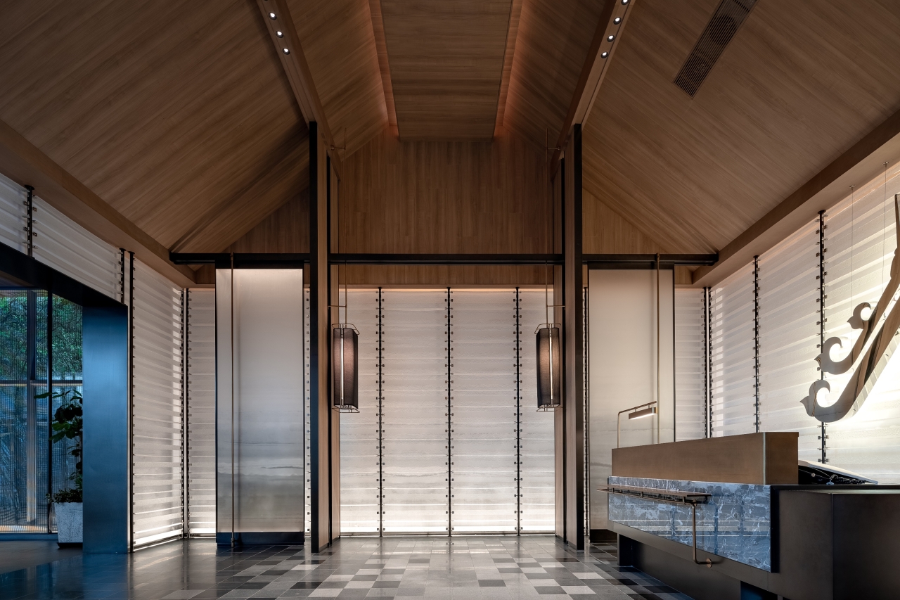 Entry DescriptionAs an innovative project, it aims to integrate modern design language with the spirit of oriental aesthetics. Our lighting design concept is to present poetic oriental aesthetics with elegant and easy light. The slopping wood-grain attic is the most prominent feature of the reception hall in the SPA club, as well as an iconic feature of oriental architecture, which brings certain challenges to the lighting design. Firstly, the security and functional lighting of the space should be ensured, while not damaging the sloping roof. In the end, we rise to the challenge to not install any lamps on the slope of the roof, but cleverly hide a group of four small-size and low-power spotlights in the hollow beams of the roof, enhancing lighting for key areas. In addition, the visual brightness of the space is enhanced by led wall washers. The light transmitting from the transparent resin screen on the facade surprises us, which presents a kind of dim and soft aesthetic feeling, creating a relaxed and romantic atmosphere. Finally, several ceiling spotlights are applied to meet the security and functional lighting requirements of the space, which not only makes the roof more clean and beautiful, but also saves certain lighting budget. In addition, it also reduces the maintenance cost of ceiling lamps later.