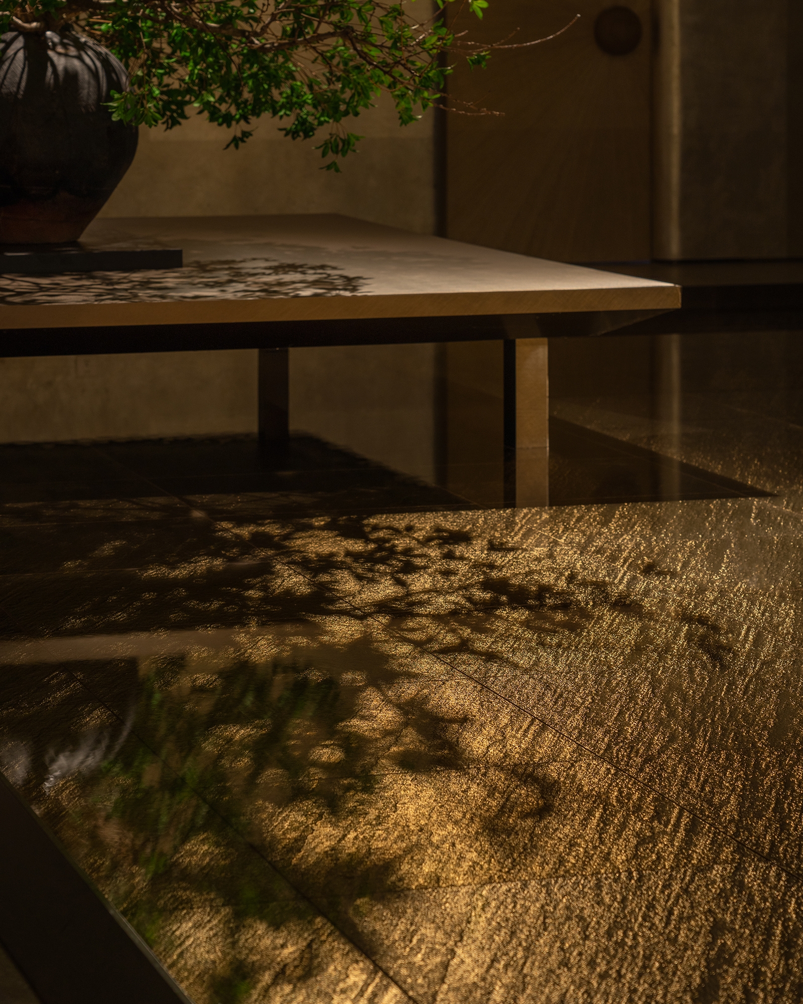 "YIN XI" teahouse, the convergence of "gold," "sound," and "water", creates a secluded detachment, isolating the clamour and allowing one to experience the charm of "rippling" and "courtyard."