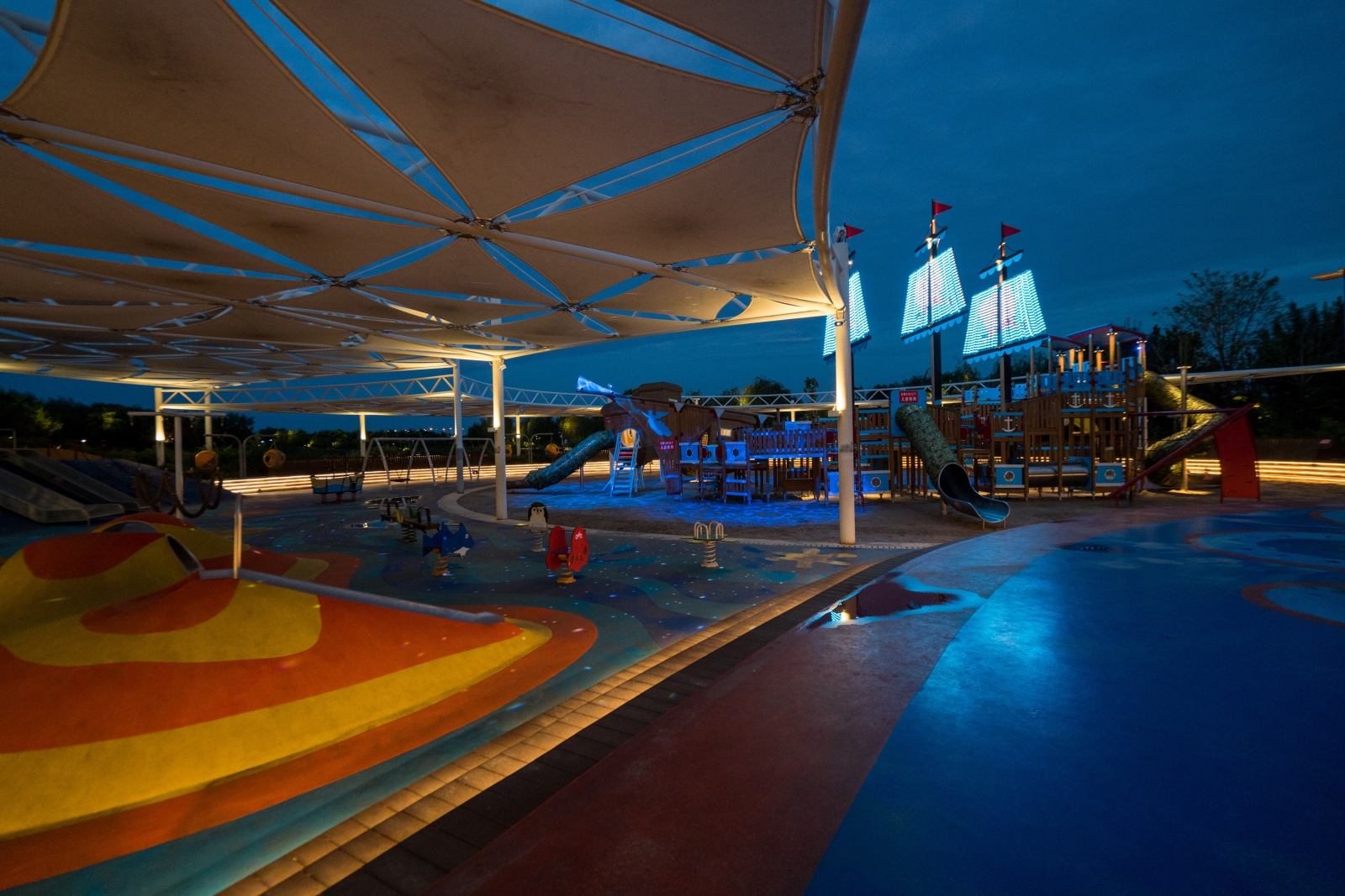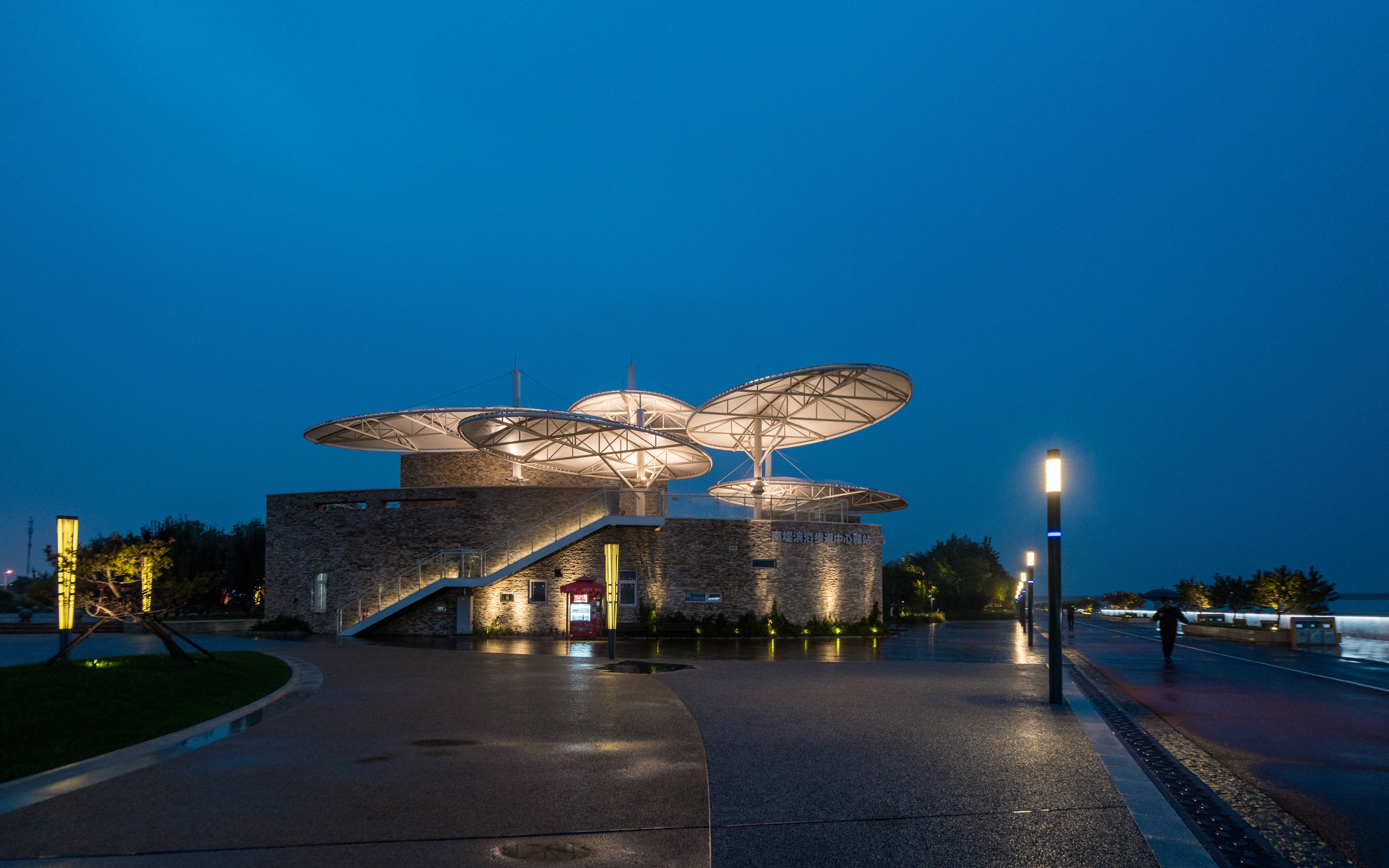 The lamps use mixed light technology to achieve different color states throughout the four seasons. The coastal Trail is designed with an interactive and responsive running track, where lighting fixtures can sense as people move, saving energy while increasing the interactive experience of lighting.