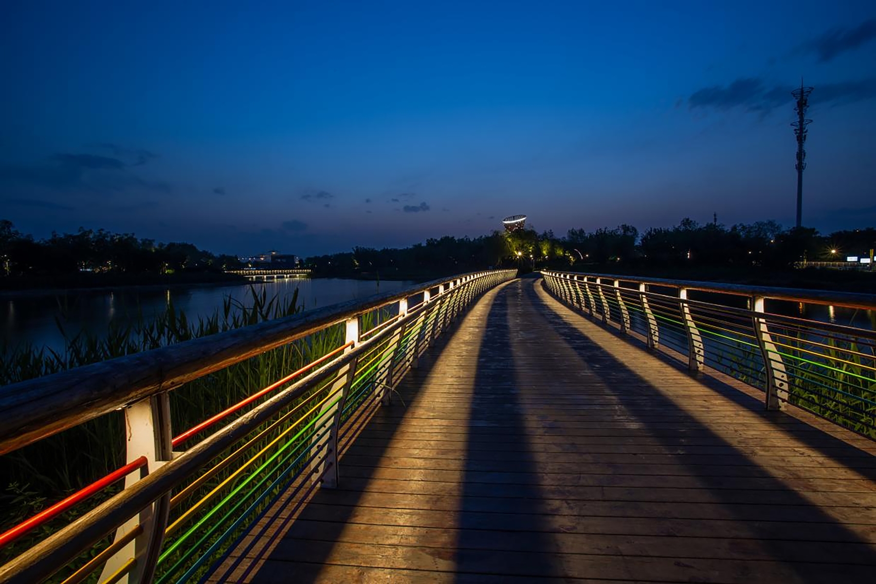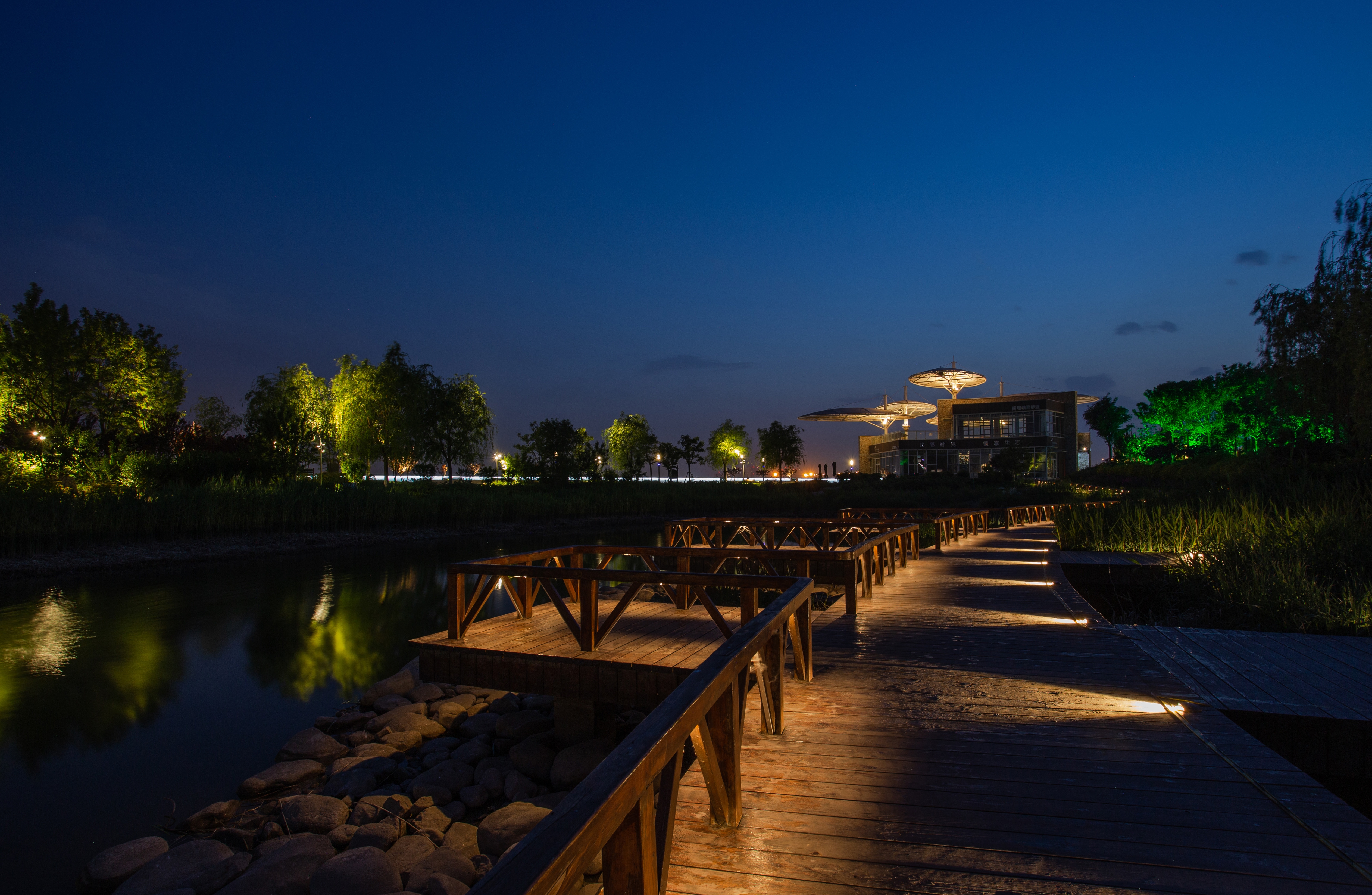 Entry Description This lighting design will enhance the China-Singapore Tianjin ecocity Nandi Coastal trail Park into a higher level for the night view of the park with comfortable landscape, intelligent interaction, natural ecology, and technological amusement. The design concept originates from the construction concept of the Coastal trail : "As green leaves fall by the Xinyongding River, focus on ecological construction, tourism, and education." The lighting plan adheres to the principle of people-oriented, pays attention to functional expression, and coordinates different forms to create regional characteristics. Because the insects such as mosquitoes and moths are abundant in this area,to reduce the gathering effect of nightscape lighting , The LED light source of the lamp has a low color temperature and contains less of the cold color spectrum. All lighting fixtures in the park are equipped with corresponding anti-glare measures. The above measures will maximize the experience of visiting the park at night.