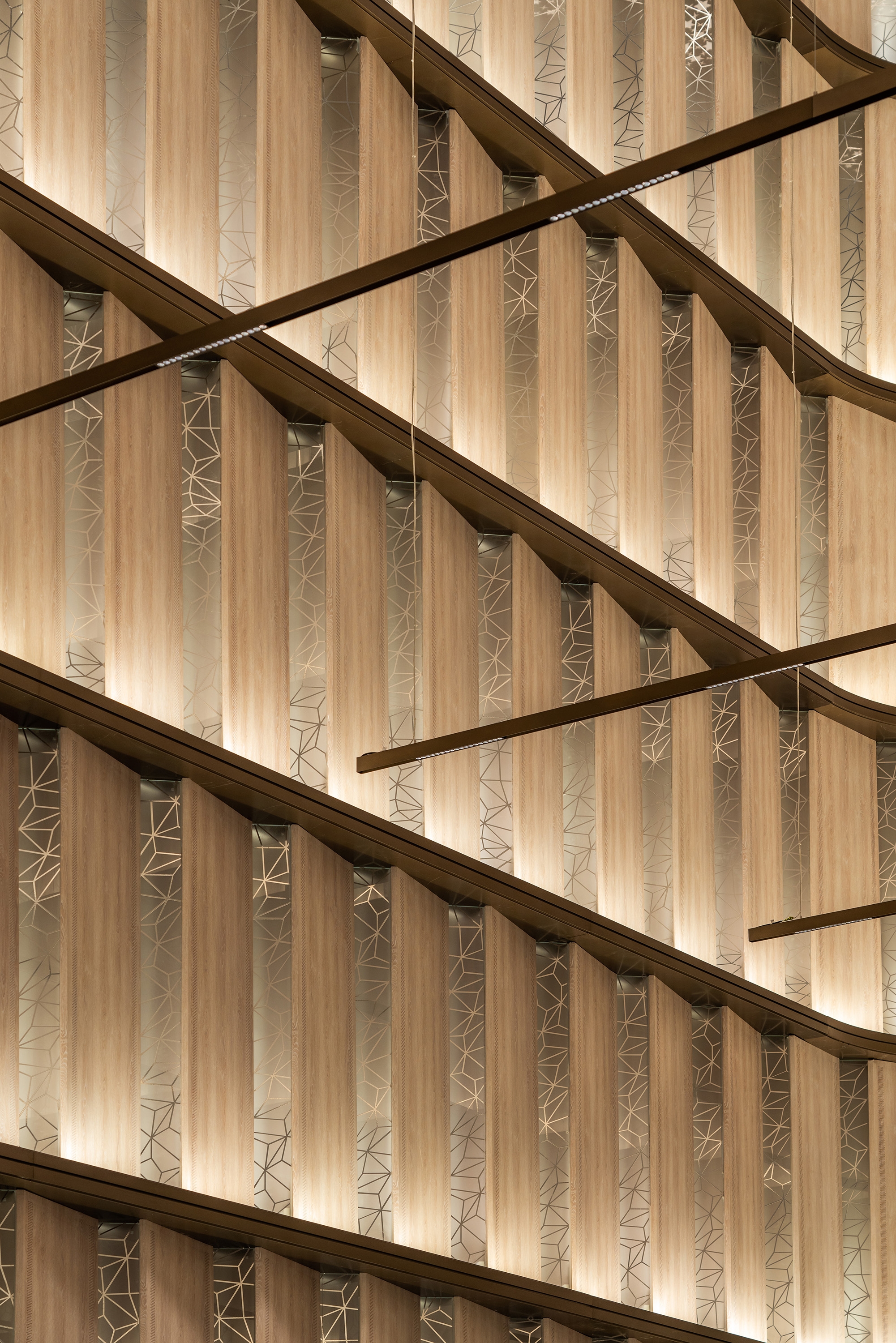 Throughout the interior space, you'll notice that we continuously use light refracted through crystal facets to create diffused imagery. This includes the use of infinity mirrors (elevator cabins) to produce a sense of transparency in enclosed spaces. It has become an essential element in translating the hotel's brand.