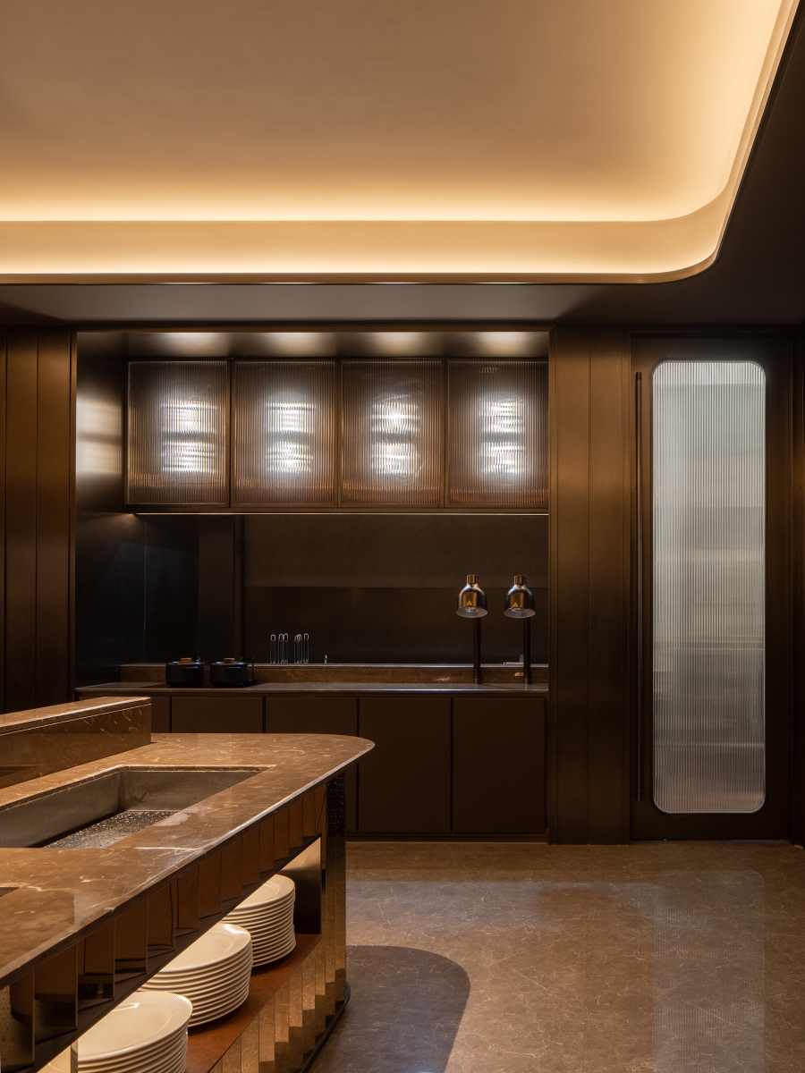 3. Centered around the crystal theme, we explore various lighting techniques to express the essence of crystals. We strive to utilize these lighting effects to meet the thematic and basic illumination requirements. Additionally, we create a sense of depth in different lighting scenarios through localised functional supplementary lighting and intelligent dimming.