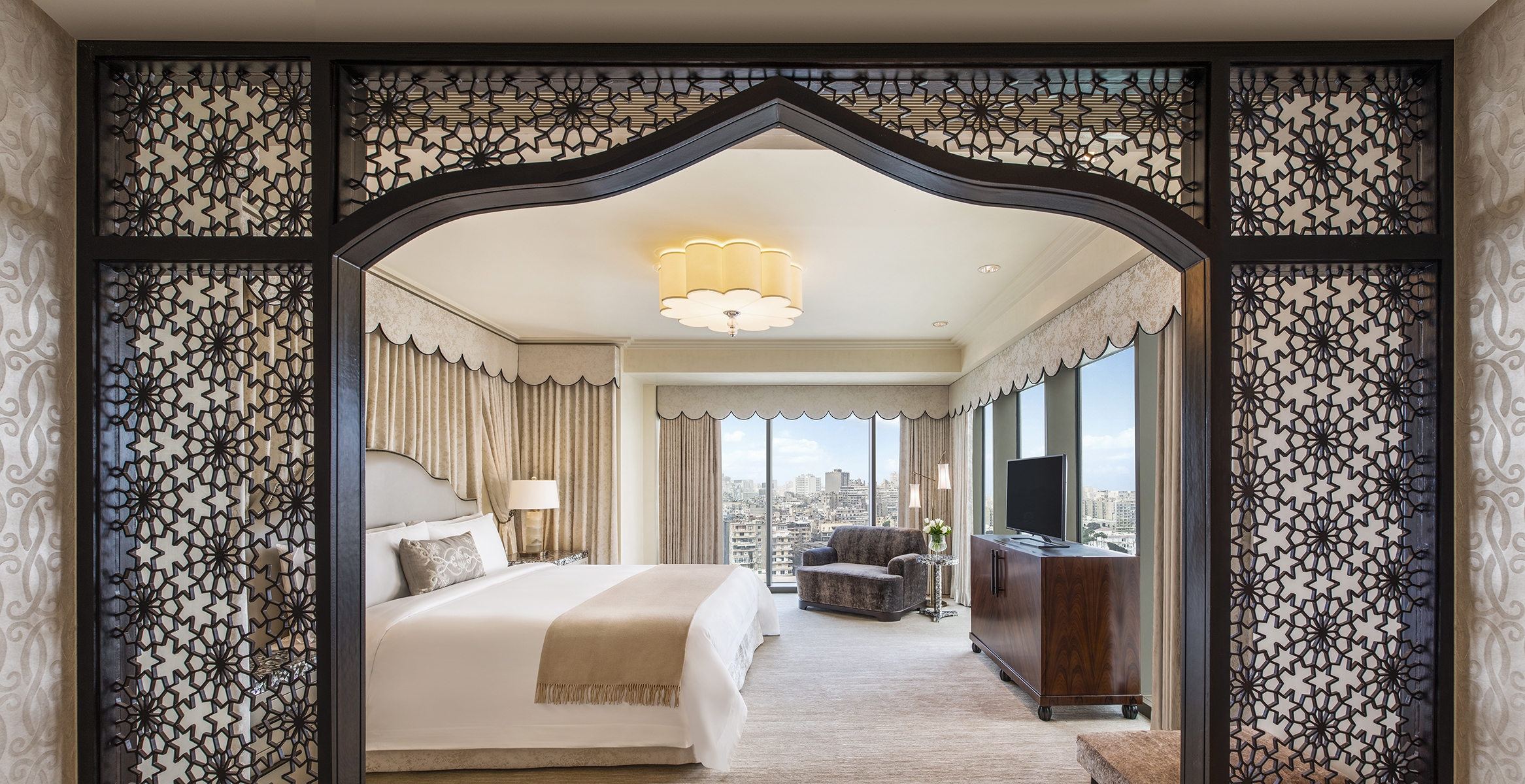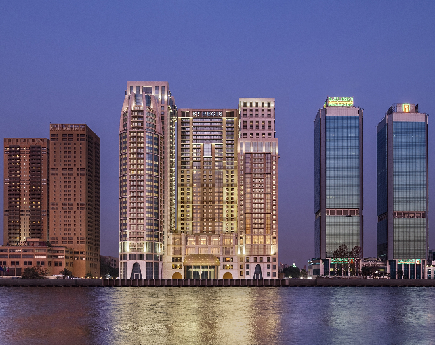 Entry DescriptionAt the heart of Cairo's bustling metropolis, the St Regis Cairo, a 39-story mixed-use development, rises from the Corniche along the banks of the Nile with a tower-podium design that maximizes river views while maintaining a reserved nighttime presence. Graceful geometric lines throughout the interior repeat motifs that draw on Cairo's historical past while confidently striding into the twenty-first century.