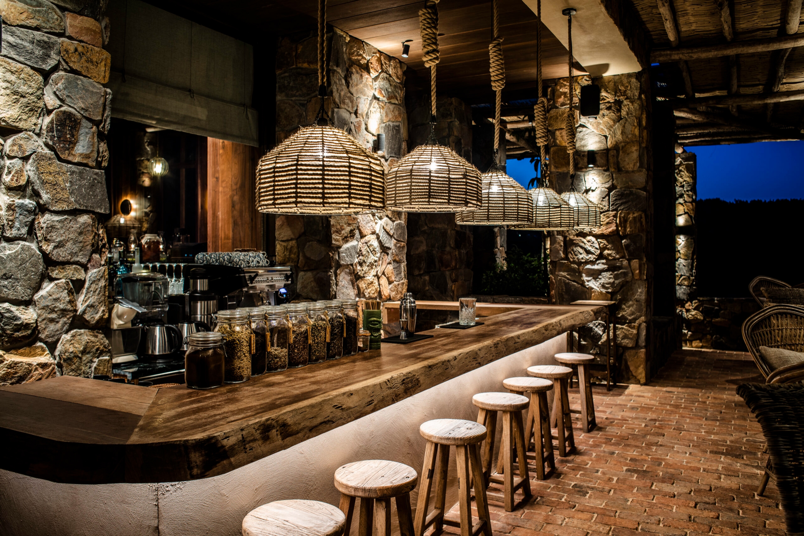 The resort boasts 71 suites and villas, each designed in one of three distinct architectural styles, paying homage to local tribes. The interior and landscape lighting design, featuring bespoke fixtures, enhance the natural beauty of the surroundings.