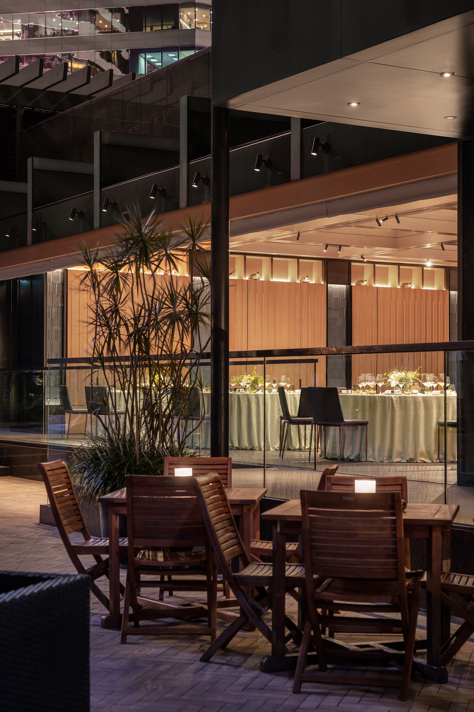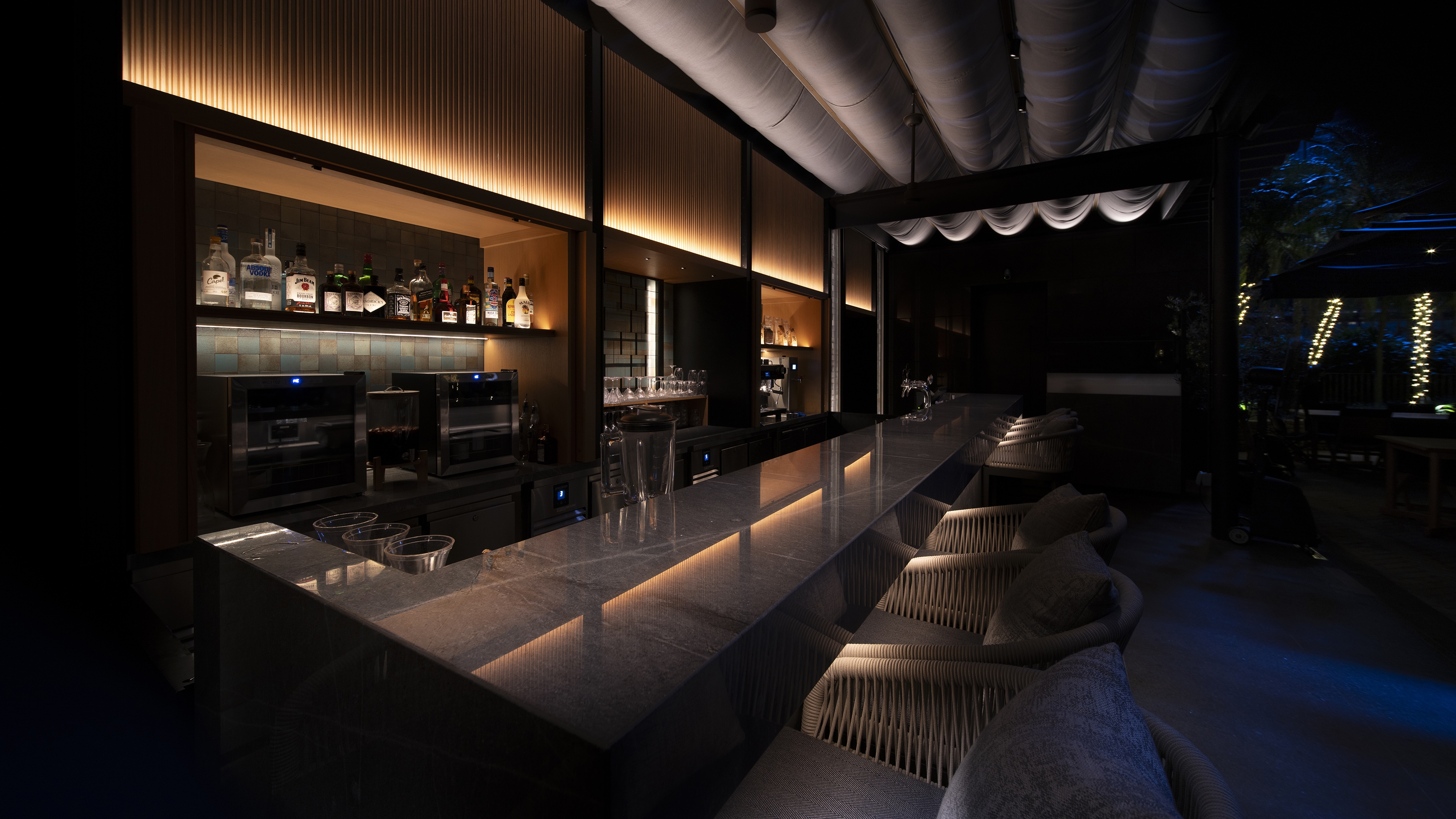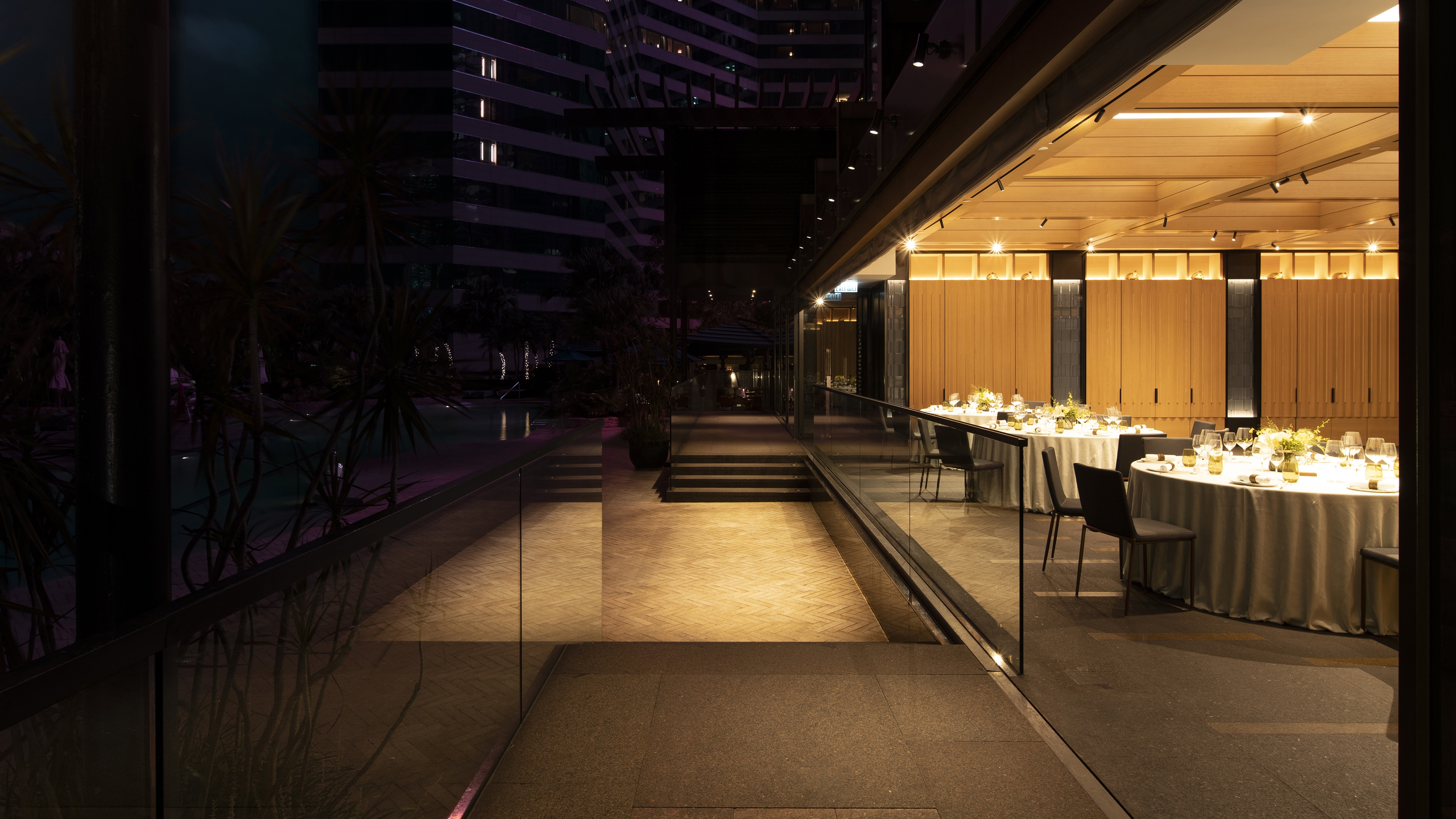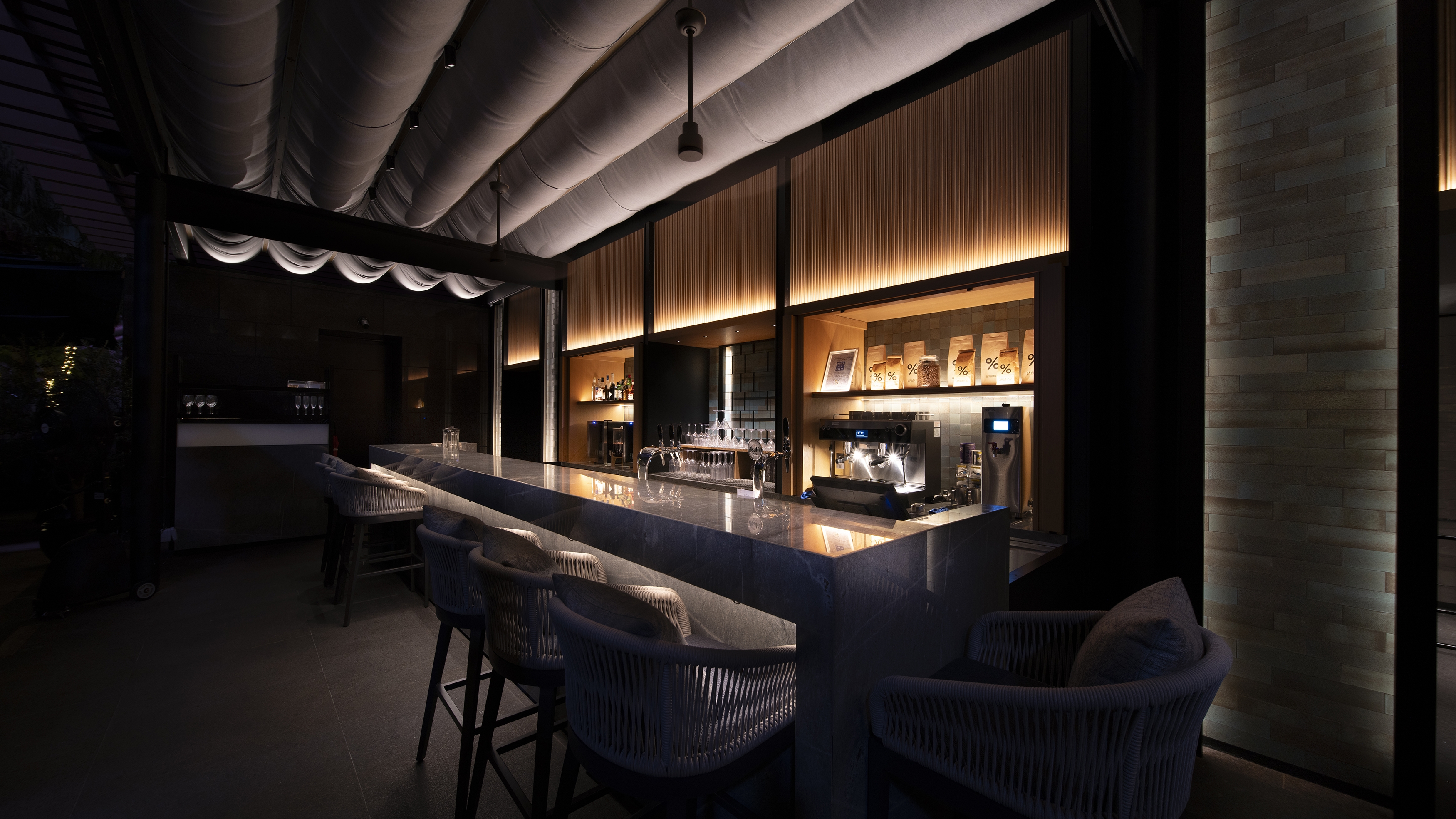 Located on the 11th floor, both bars offer guests a stunning outdoor experience. To create a captivating ambiance, we have implemented a lighting design that accentuates the bars' architectural features and creates an inviting atmosphere. The outdoor lighting fixtures are strategically placed to highlight the bar area, casting a warm and alluring glow. This design not only enhances the visual appeal of the space but also ensures that guests can enjoy their drinks and conversations in a well-lit and enchanting environment.