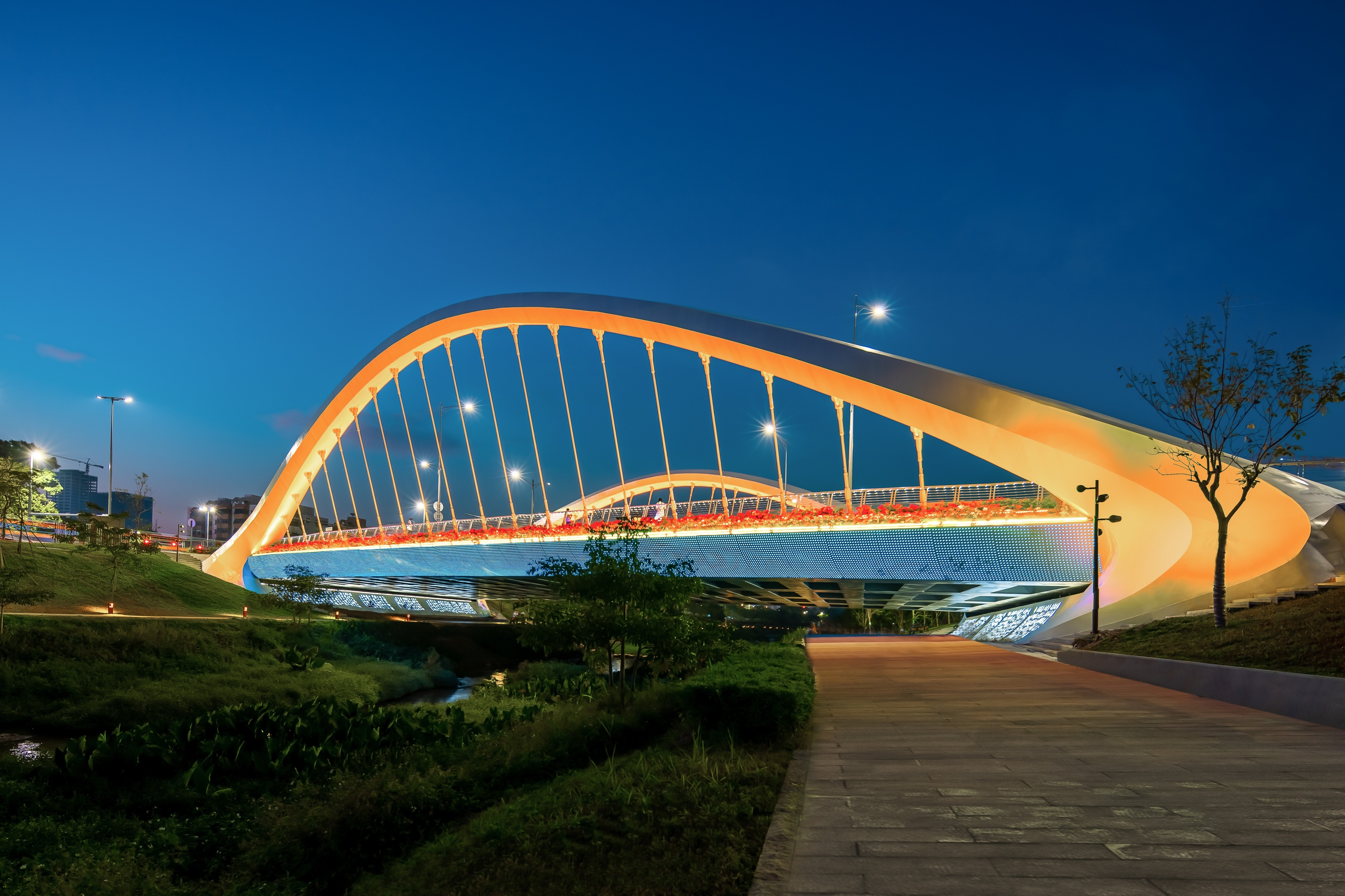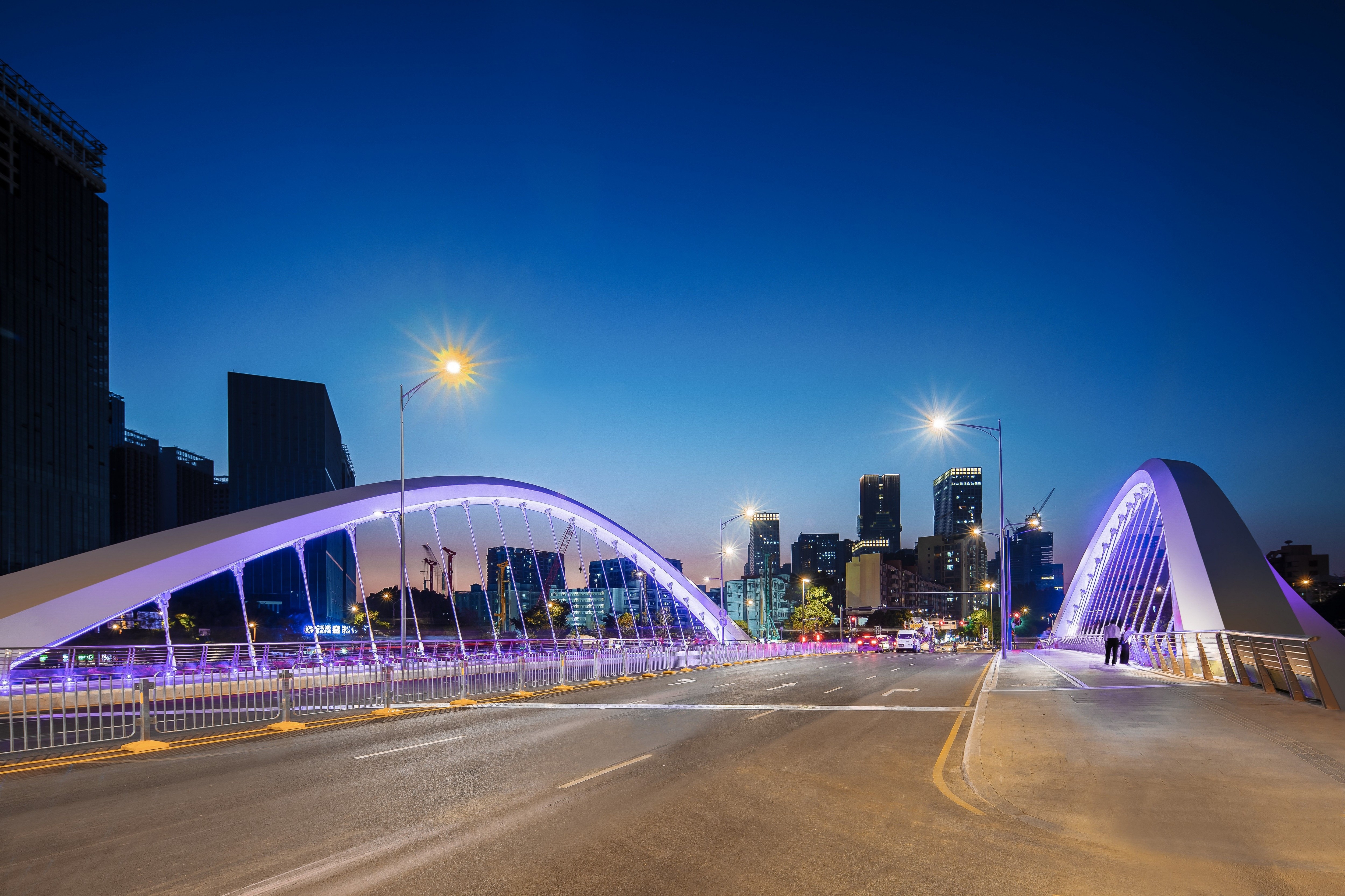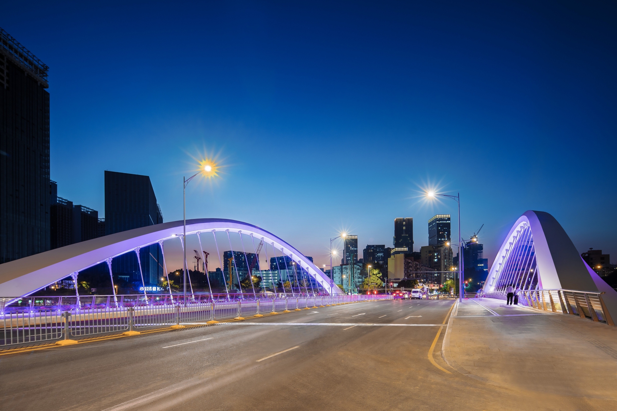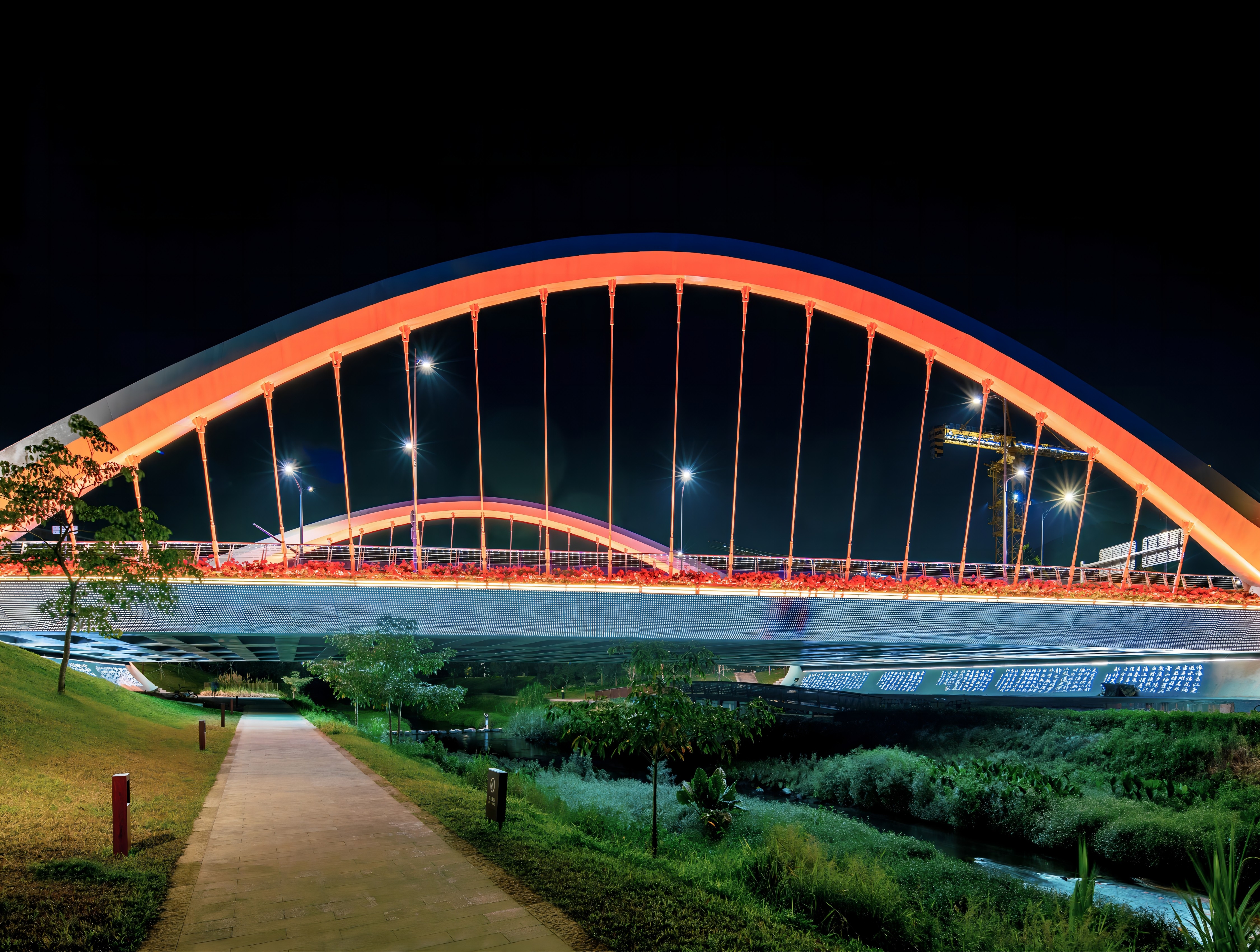 The dynamic point lights on both sides of the bridge produce a dreamlike feeling of watching a video, adding to the magnificence of the Dasha River Ecological Corridor and extending the splendor of the nightscape in Shenzhen Talent Park. The intensity of the light blends well with the environment, echoing the idea of harmonious coexistence between humanity and nature and creating a unique, beautiful, and alluring scene.