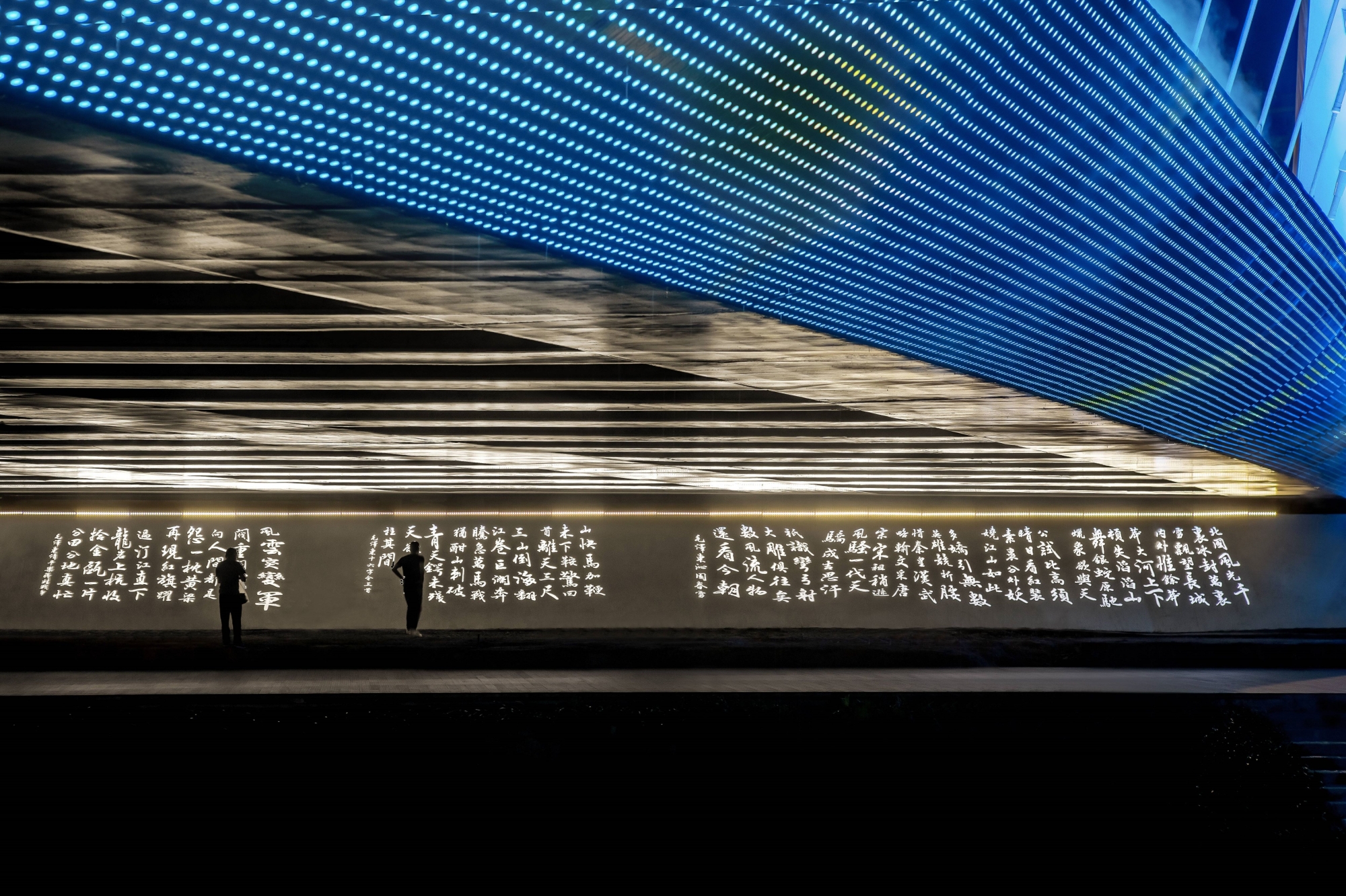 The projection of poetry from ages past on the underside of the bridge is a means of promoting China’s calligraphy culture while adding a taste of tradition and some essence of Cantonese culture to the modernized city, sculpting a nightscape that blends nature and culture.
