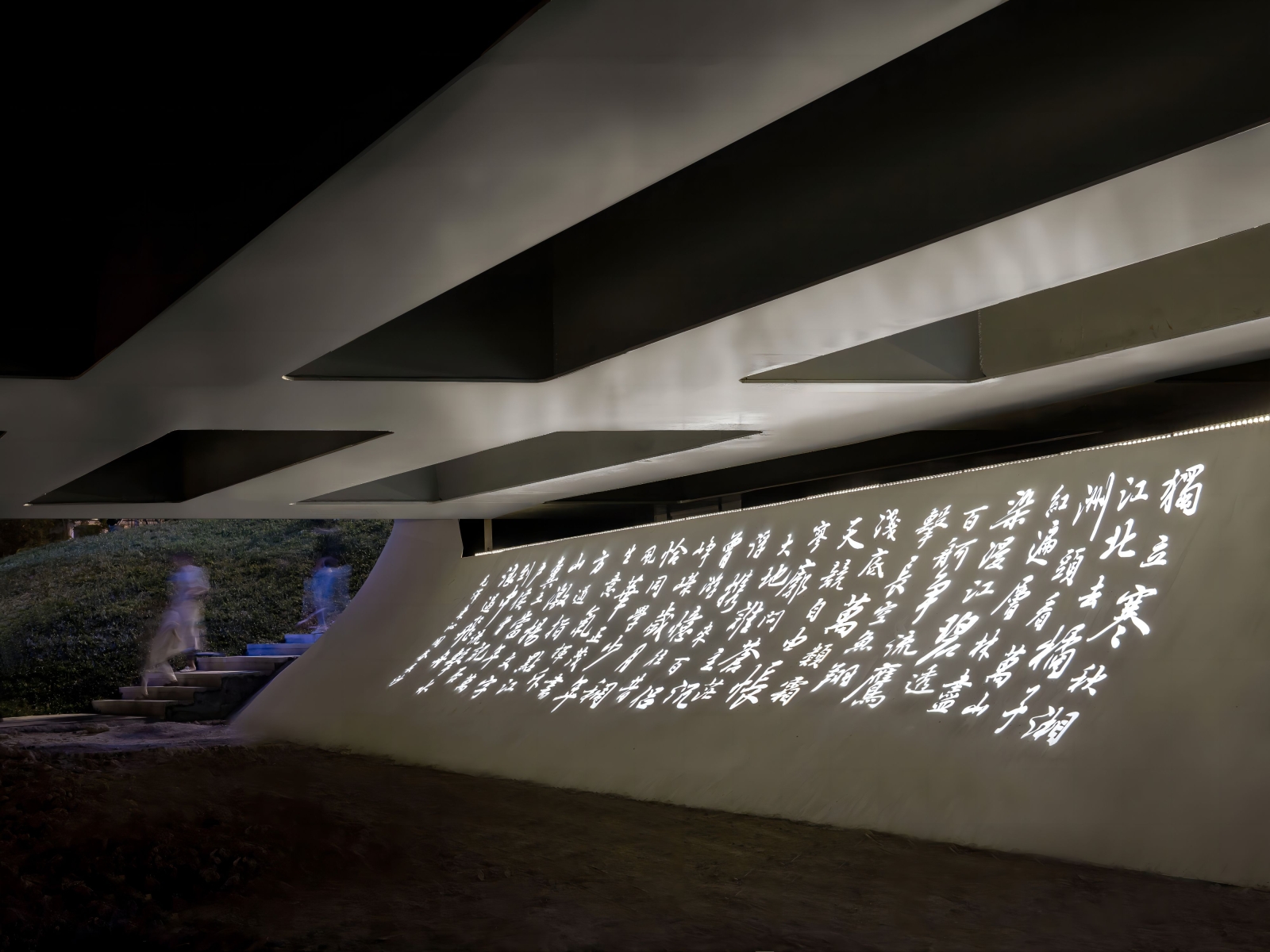 The lighting integrates technology with art. Both the bridge and surrounding environment are part of the design. The bridge’s impressive width was applied in creating an interesting interaction between people and the lighting, and the projection of poetry adds to the sense of culture. Indeed, many calligraphists have enjoyed copying the calligraphy.