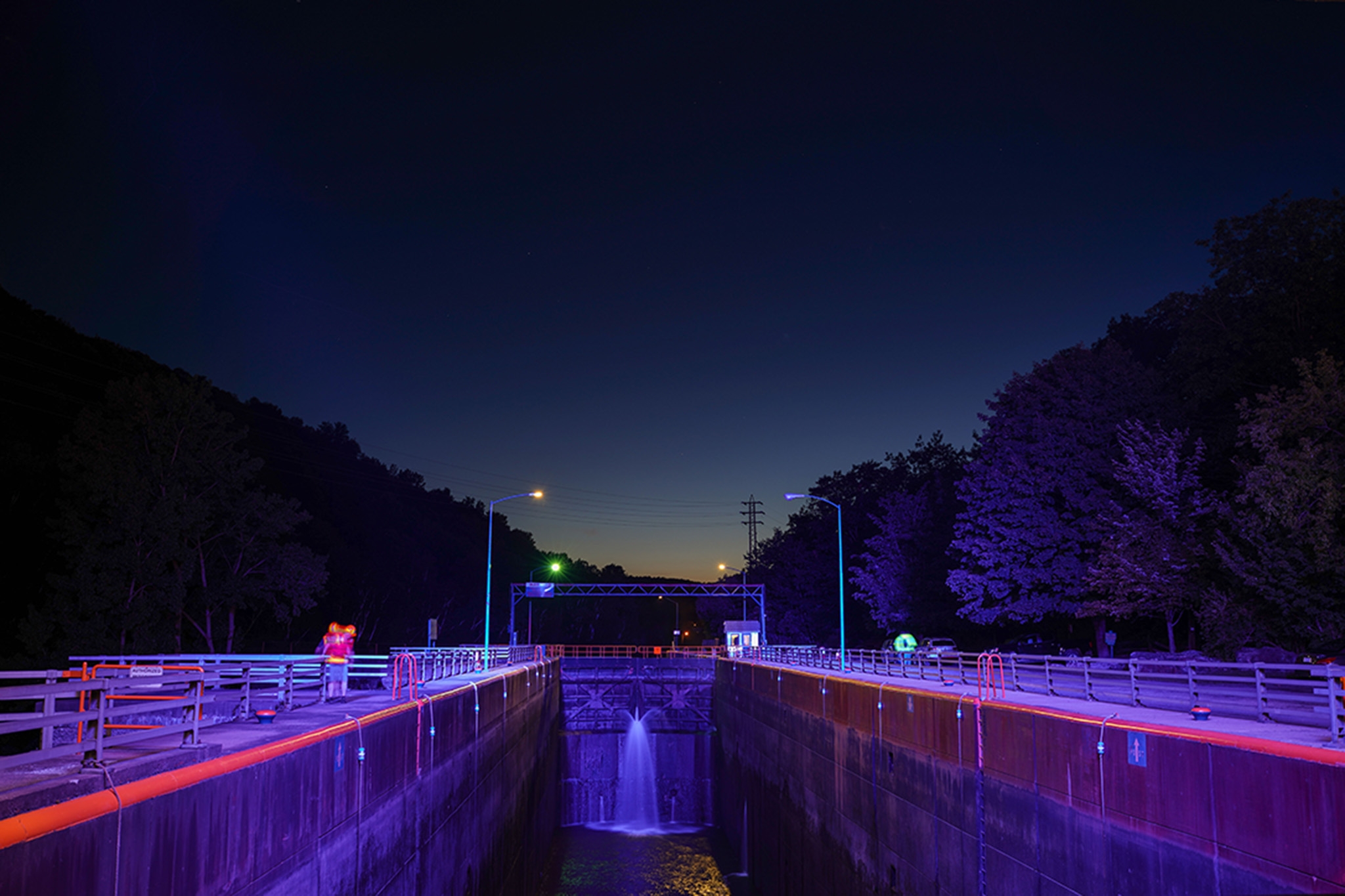 Entry DescriptionReimagine the Canals uses light as the catalyst to revitalize the heritage of NY’s Erie Canal-side communities. Landmark structures, Verona Beach and Brewerton Lighthouses, Little Falls Lock E-17, and Fairport Bridge, are given new life via unique lighting schemes that celebrate local culture and promote economic growth. Verona Beach Lighthouse’s new nighttime identity ripples to life as dusk settles. Exterior LED luminaires with gobos mimic the rhythm of surrounding waters against its white surface. Ensuring comfort for surrounding residents, lighting was precisely aimed to prevent glare and spill light. Brewerton Lighthouse embodies a dark concrete construction. Its reimagined nighttime identity transforms its cold appearance into a warm candlelit glow with amber colored LEDs positioned around the base, exuding an antique aura that complements its sister lighthouse’s renewed identity. The design for Lock E-17 strategically focused lights with gobos to simulate a rippling water effect, while illuminating the lock volume itself with color changing LED floodlights in a soothing purple hue to enhance its details and dramatic perspective. Fairport’s bridge features amber tones, echoing the neighborhood’s industrial character via linear and point source color changing LED luminaires. The dimming and color settings are curated to gradually shift in 30-minute intervals.