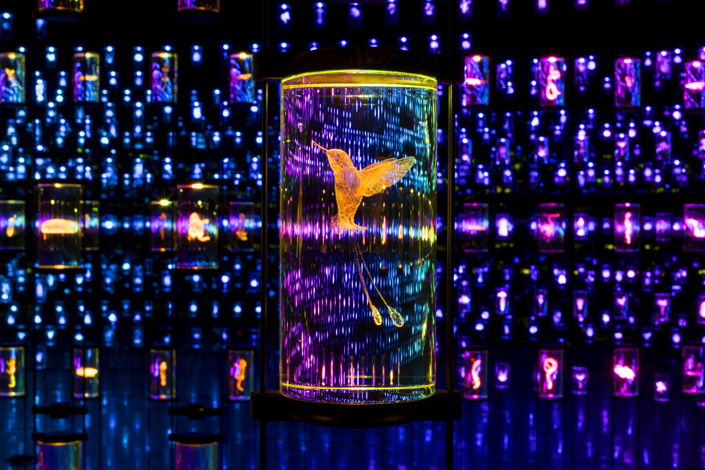 The DMX lighting control is decentralized, with each floor and media lift having its control center connected via a network. The media control system synchronizes lighting sequences with media content and visitor interactions while managing the entire lighting installation. Approximately 3000 individually controllable LED luminaires are addressed via 220 DMX512 universes, creating a dynamic lighting process.