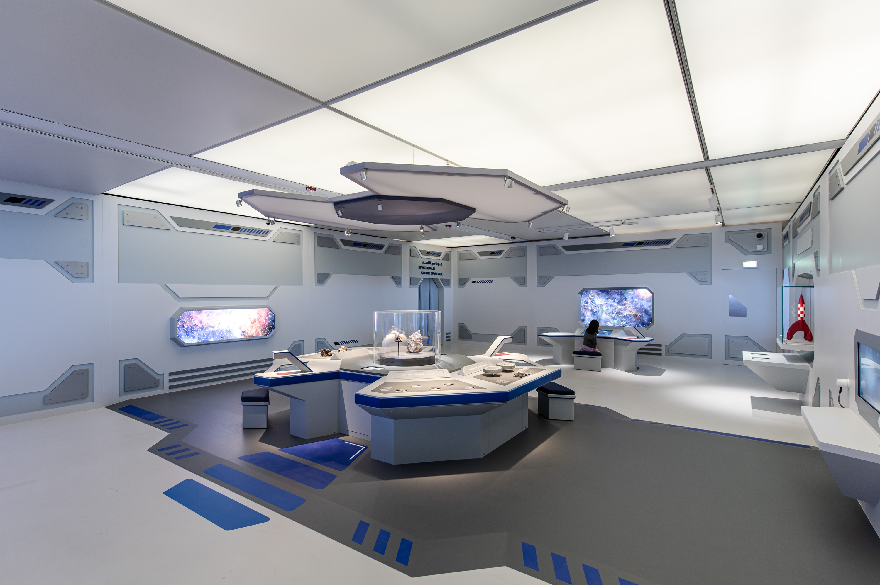 Entry DescriptionThe Museum and Exhibition, with its three distinct themes spread across three engaging levels, showcases an innovative approach to lighting design that seamlessly complements the exhibition's immersive journey through space. Our lighting design aims to capture the vibrancy of the cosmos, immersing visitors in the breathtaking birth of stars, the graceful ballet of galaxies, and a host of celestial wonders. This immersive experience is crafted through a delicate interplay of light and shadow, igniting a profound sense of wonder and curiosity.