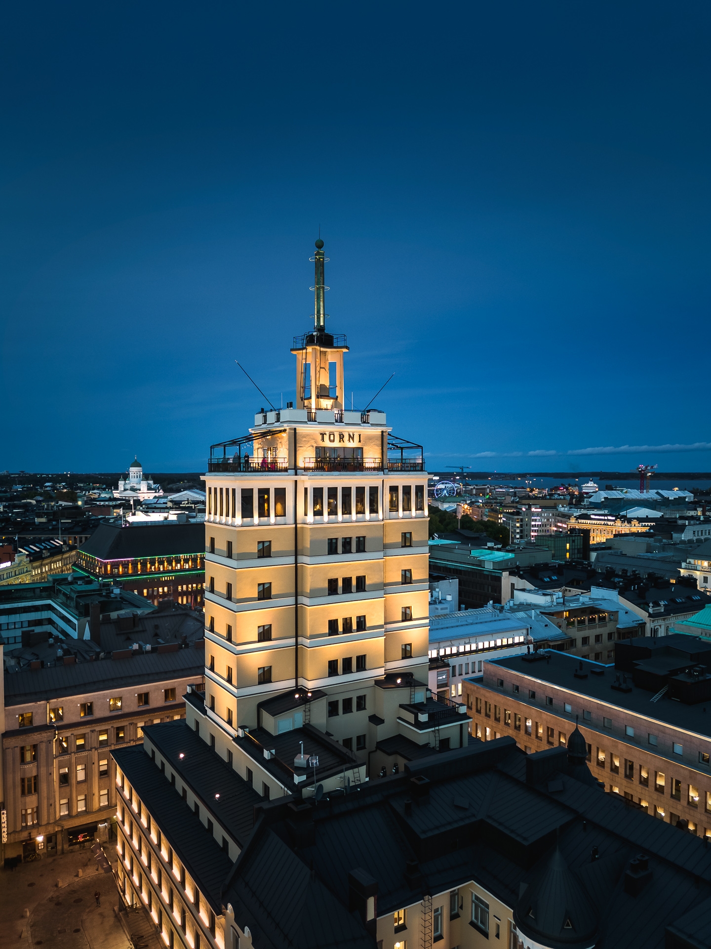 Opened originally in 1931, Hotel Torni was the tallest building in Helsinki and a skyscraper of its time. It is still one of the tallest buildings in Finland. The hotel also includes a former residential building property, Kyllikki, which was added to the hotel in the 1980s. The buildings are historically significant and prominent in Helsinki's cityscape. The renovated hotel opened in the spring of 2022.