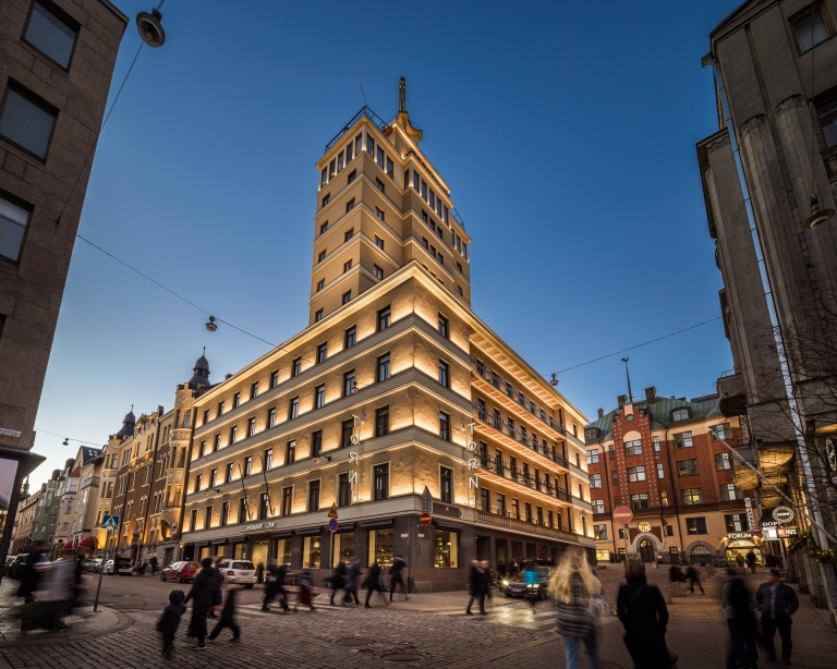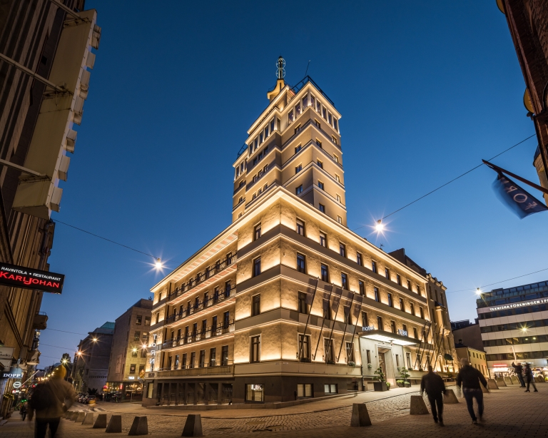 Entry DescriptionSolo Sokos Hotel Torni brings light to the surrounding streetscape and stands out as one of the landmarks of the center of Helsinki with its new facade lighting. The lighting also serves to communicate the renovations made inside the building.