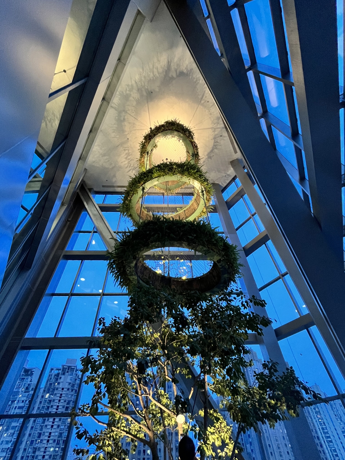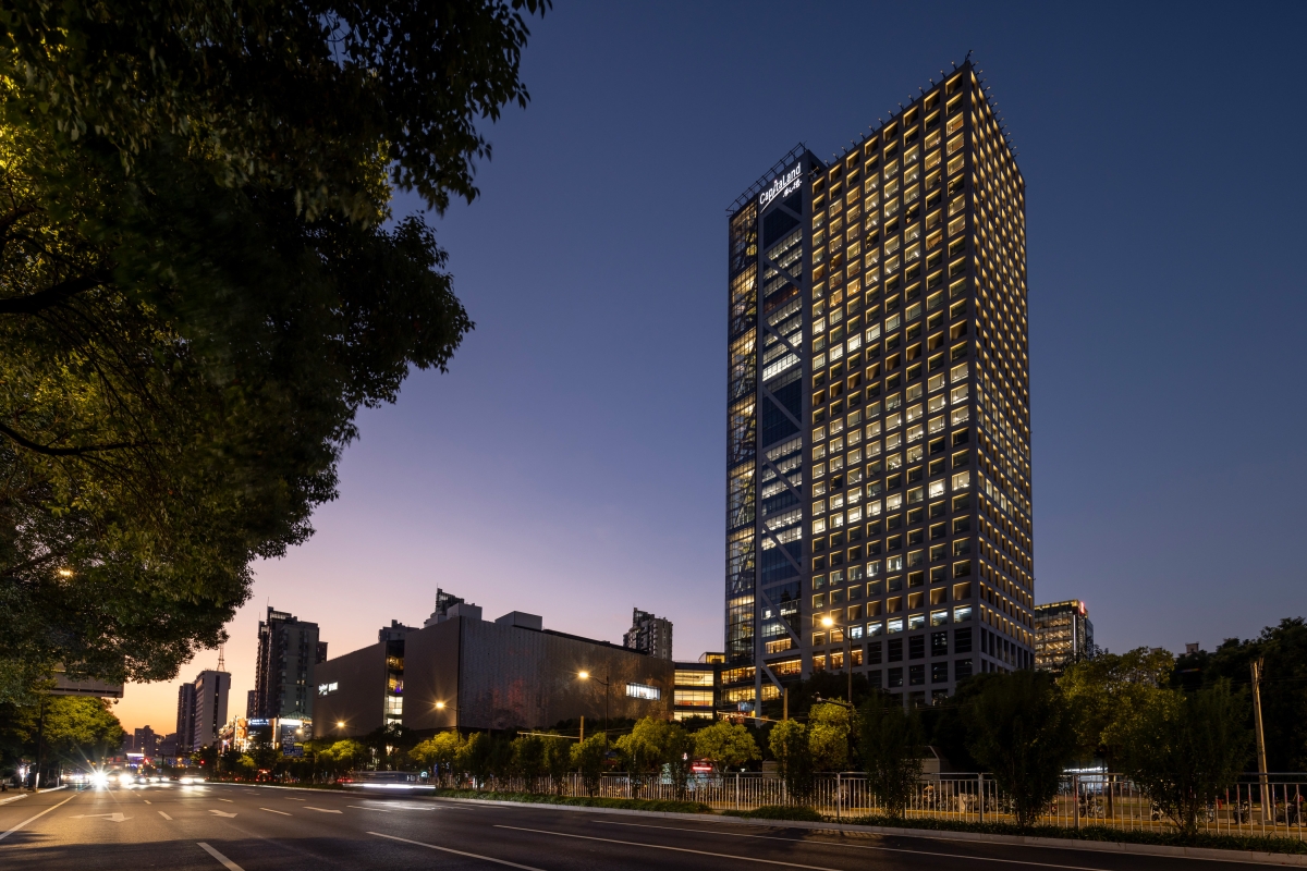 The southwest corner of the tower is specially designed as a glass tower, which is raised on a four-storey basis to form seven separate ecological gardens, integrating green into the office building. it mainly expresses the exquisite details and the intimate relationship between people and the garden landscape, the podium and the interior lobby, the tower and the podium are unified at 3000K height, and the upper and lower levels are harmoniously integrated with the surrounding environment. The light illuminates a pane to reflect the design language of the building, so that the light and the building fit together.