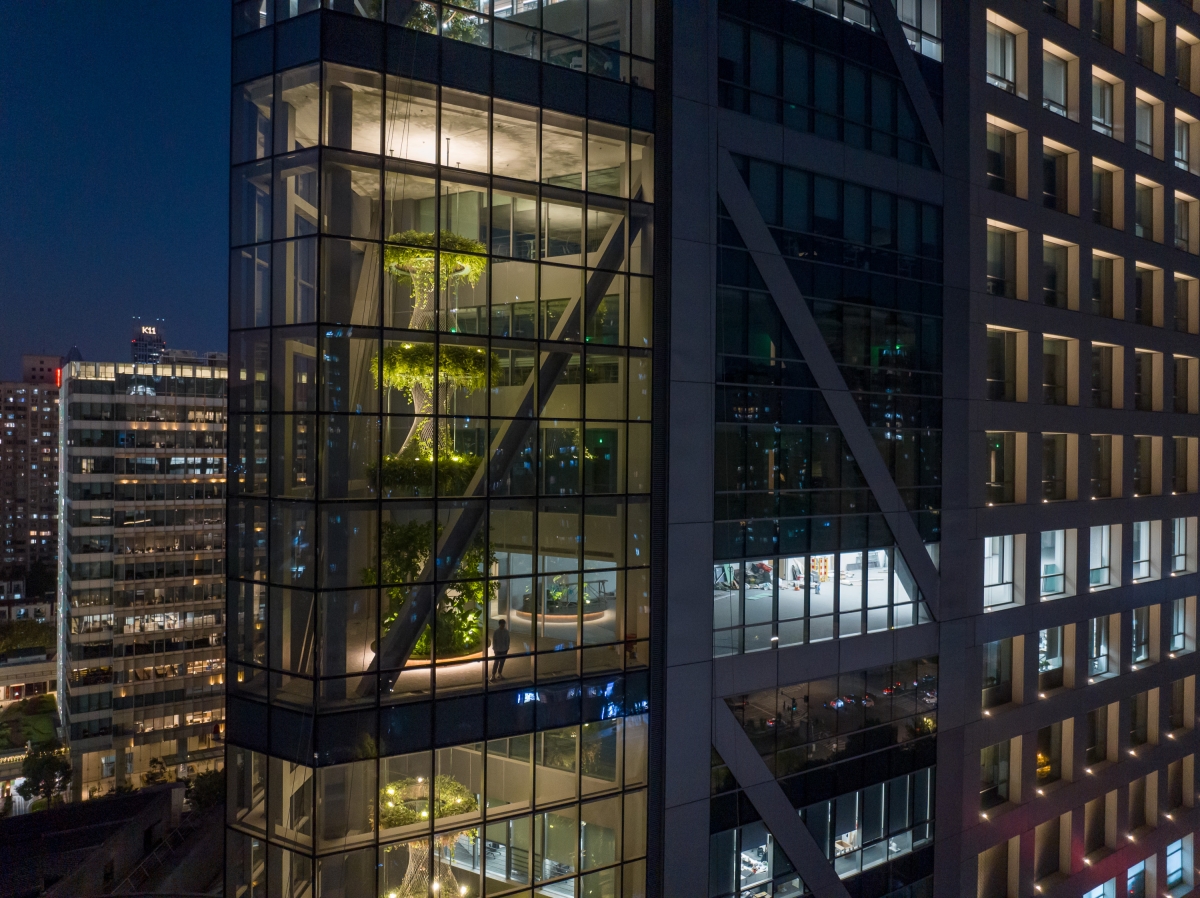 Entry DescriptionLuOne Office Tower is located in Madang Road business District, the surrounding residential population density is in the forefront of Shanghai, the project positioning and green environmental protection, continuing the design concept of the integration of architecture and nature, breaking the traditional appearance of office buildings, the integration of buildings and ecological gardens. So that urban buildings can follow the changes of the seasons, symbiosis and integration with nature, with the "virtual and real" combination of building facades to create a green vertical space in the air where the office corner is a park, so that LuOne office building truly becomes an oasis in the bustling city.