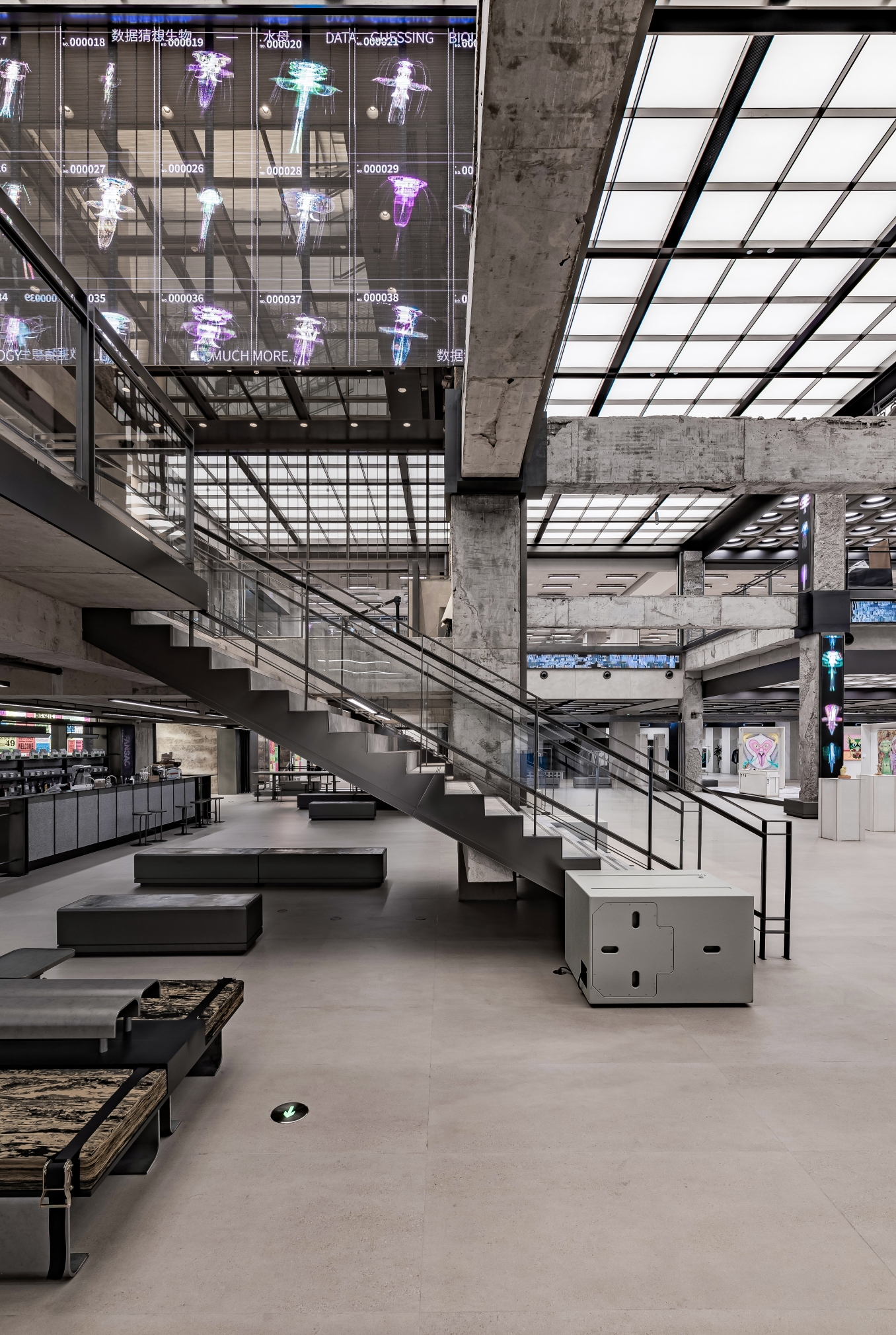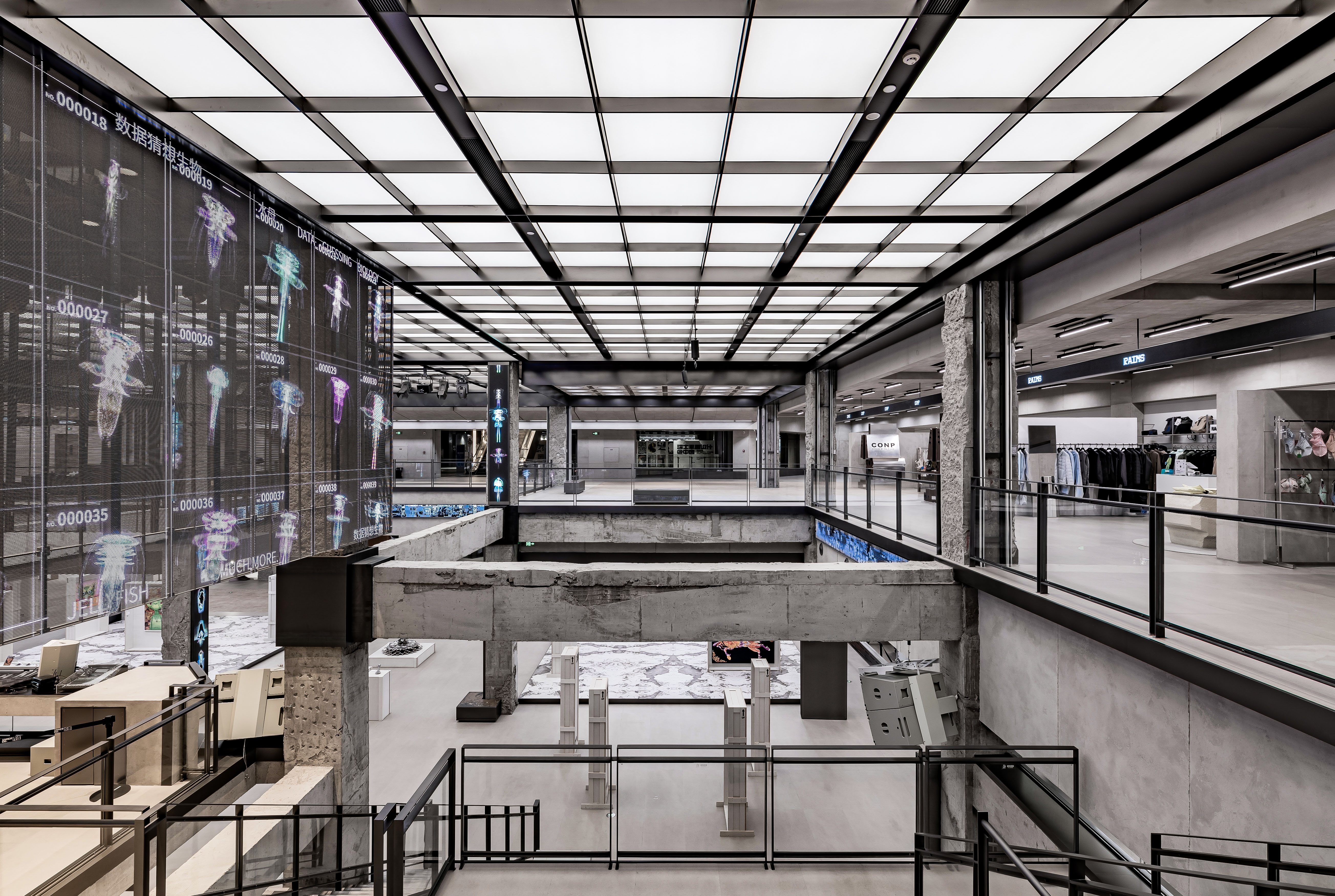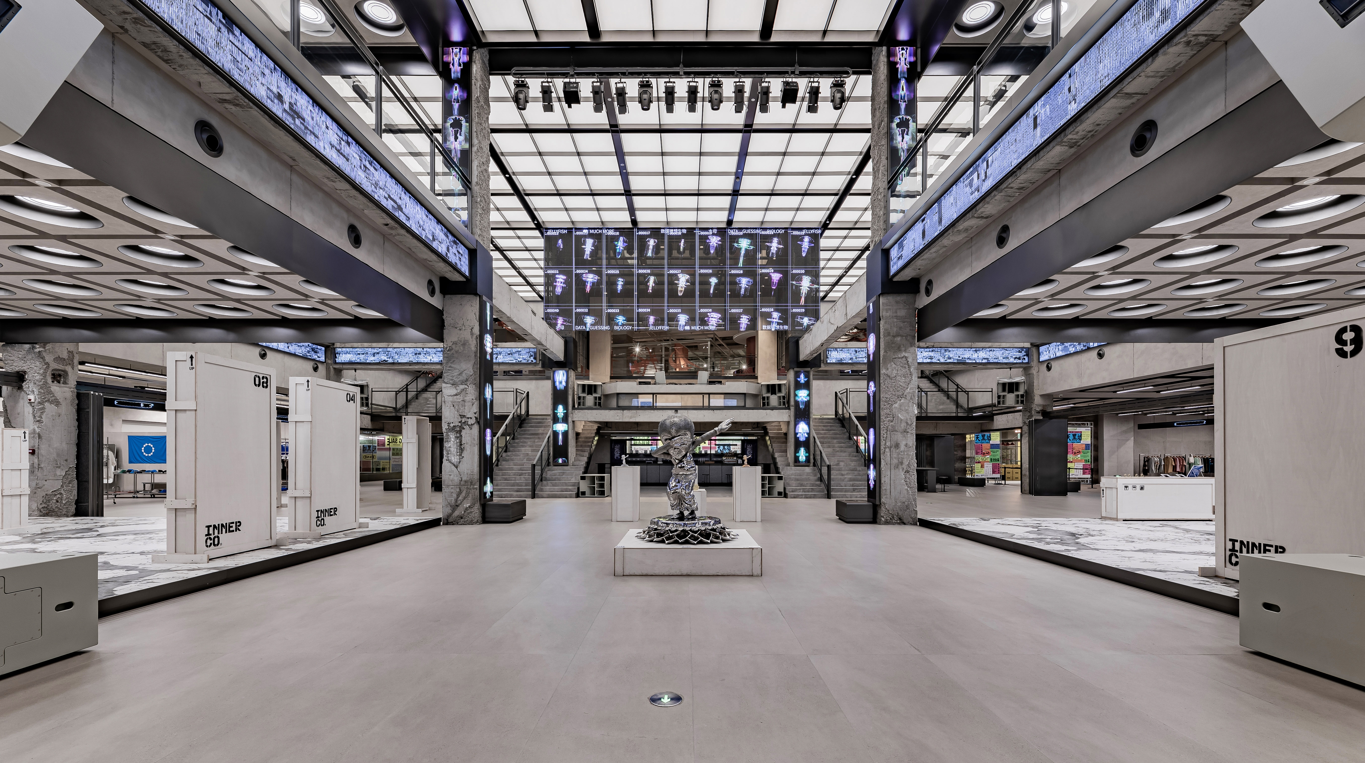 INNERCO is COSMO's largest highlight space, occupying a total of 7,600m² on the second and third floors.The area retains the exposed concrete building structure, incorporates modern design elements, and combines with the LED colorful canopy to create a sense of historic and futuristic collision.