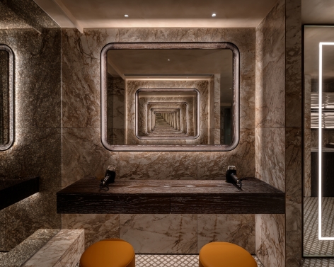Both aesthetics and practicality were thoughtfully fused by seamlessly integrating the lighting scheme into an interior design scheme which reflects the planet Mars as creative inspiration. The signature tangerine palette of the walls and miniature ceiling downlights complement the intricate decorative light fixtures to echo the Martian themes.