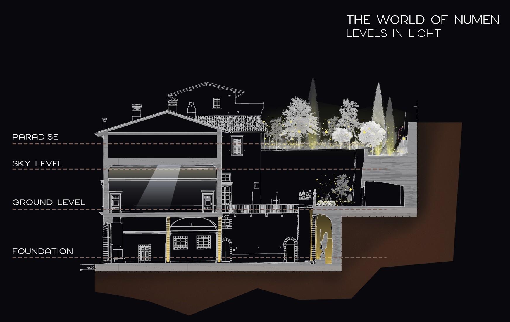 Light solutions for other levels immerse the visitor to the specific atmosphere, support ground level's solutions & lead the visitor throughout the project.