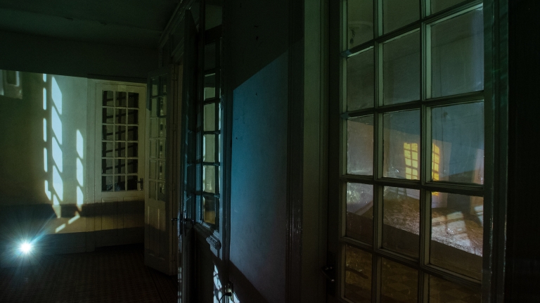 Guests were invited to wander around the building with the light of their flashlights. Immersing themselves in anecdotes told through large windows, sloping floors, and ruins that reflect the present while showing relics of the past.
