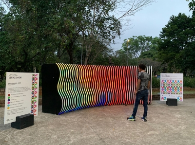 The artwork was powered by the city's electrical grid (no fossil energy generators were used). In the state of São Paulo, 90% of electrical energy comes from non-fossil sources (65% hydroelectric + 25% bioenergy).