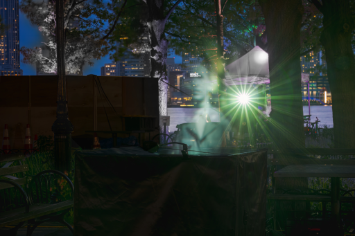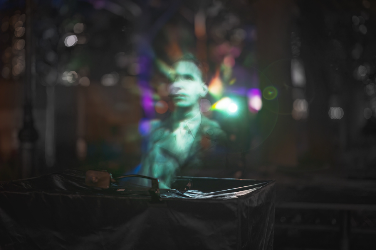 A projection piece that features a volumetric fog display designed to represent memory and its simultaneously ephemeral and corporeal nature. Community members are invited to submit photos and stories of lost loved ones to an online portal. The installation then generates holograms of those individuals who have passed, creating a piece where viewers inhabit the same physical space as their memories. As viewers approach the piece, the image fades away.