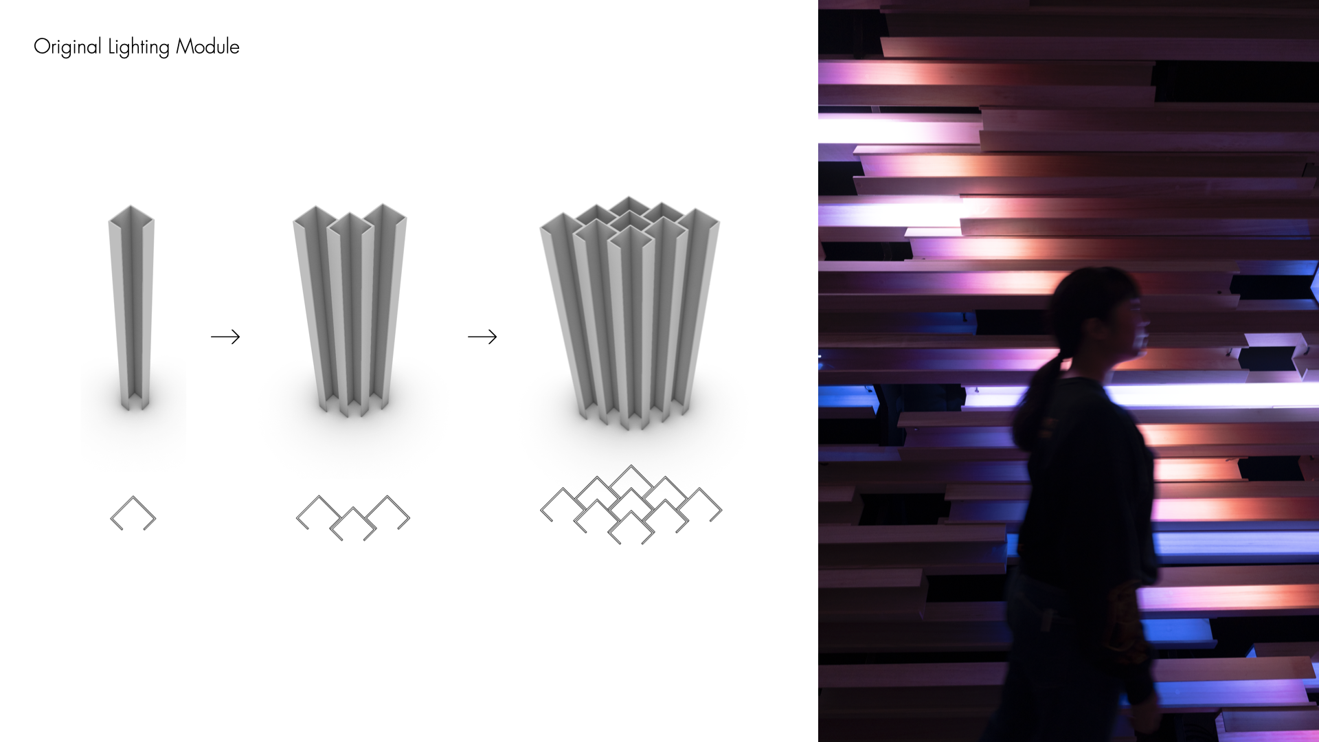 Sustainability ApproachWe have developed a reusable, original architectural unit that integrates lighting fixtures and architectural components. In traditional exhibitions using lighting and visual displays, lighting equipment and architectural structures were separately designed. Once the exhibition period ended, the architectural components used to create the space were discarded. Therefore, by combining lighting and architecture into a single unit, we have made it possible to reuse 70% of the previously discarded structures. With this unique unit, we were able to achieve sustainable spaces while pursuing creativity.