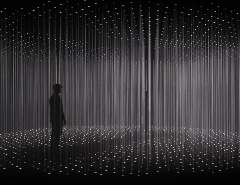 “Living Room” is a walk-in artwork when space itself is considered as a living being. It shows with the fluctuating architectural domain created by light and fog which are the brick and mortar of the installation. The artwork is conceived as a sentient organism embodied by light, fog and sound. The presence of visitors inside the space is key to activate all the elements and make them vary in unpredictable ways. “Living Room” is notably made possible by the use of LiDAR sensors that track visitors’ movements in order to document and create a stamp of presence of anyone and everyone. This same stamp can be turned into an NFT to immortalise this unique moment in time.