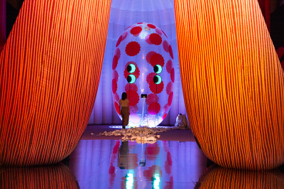 Visitors gradually progress through this journey of ritual, realisation and revelation, a warped and strange world full of illusions and delusions, perceptions and deceptions to the final part of the work to reach one of the two all-seeing gods: the Sun God and the God of Gods in this little world – Modern Guru.