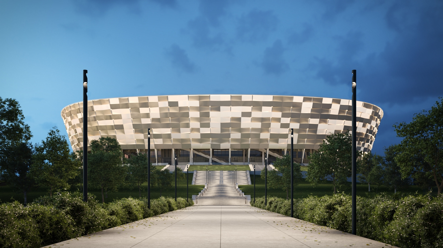 Light modules rotate 355? individually for controlled illumination and one-of-a-kind flexibility. Final positioning and rotation of each module can be modified on-site during installation. The curved sculpted opening and deeply recessed lens direct the light beam downward to minimize uplight while enhancing comfort and glare control.