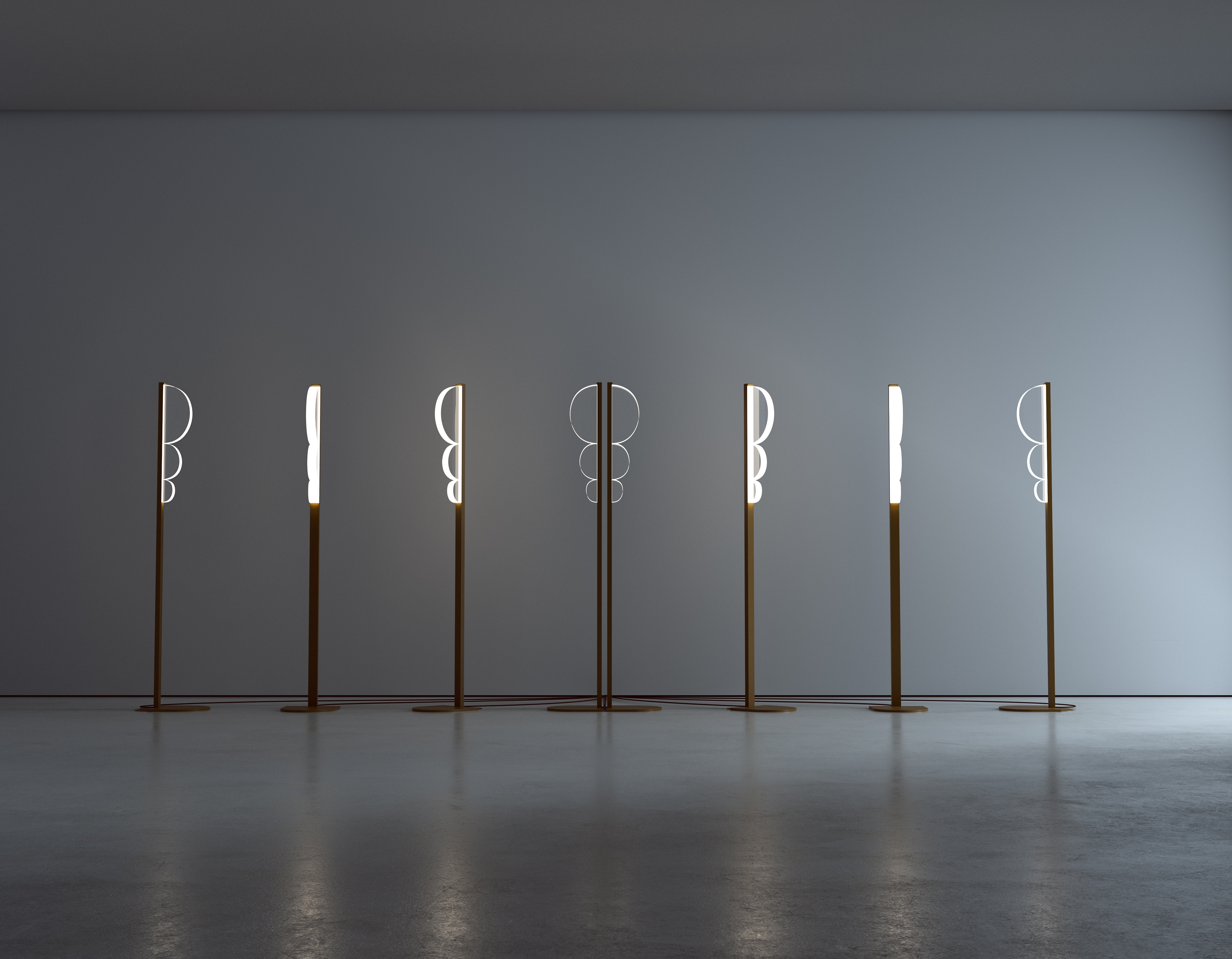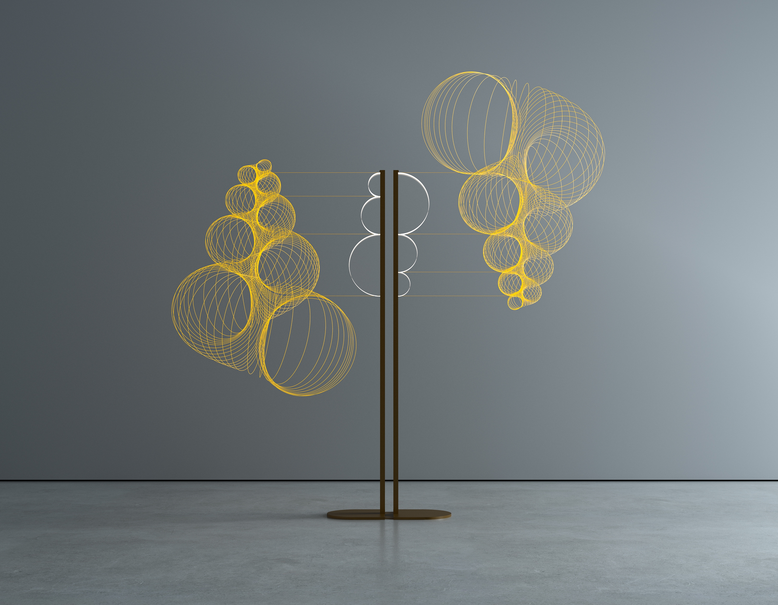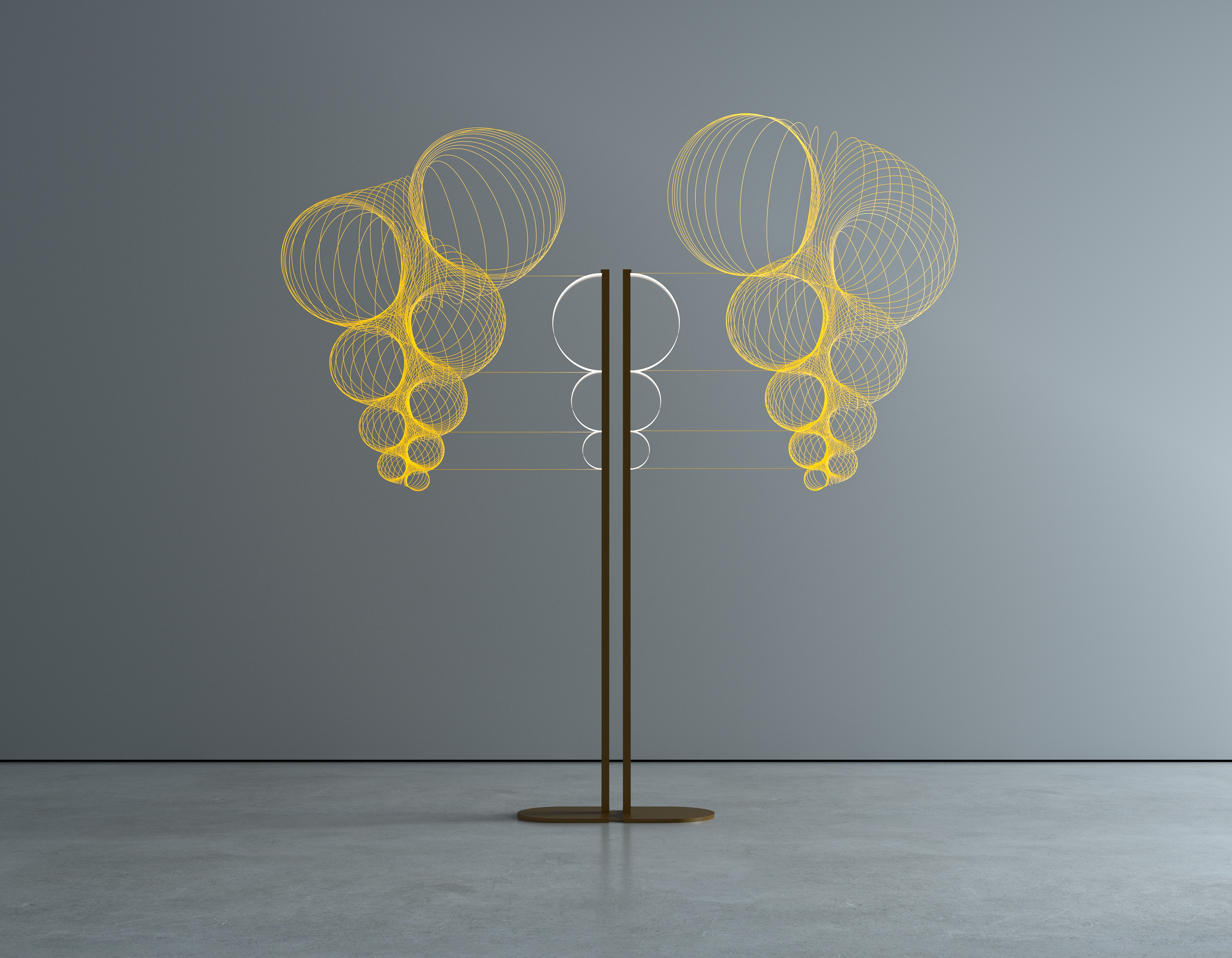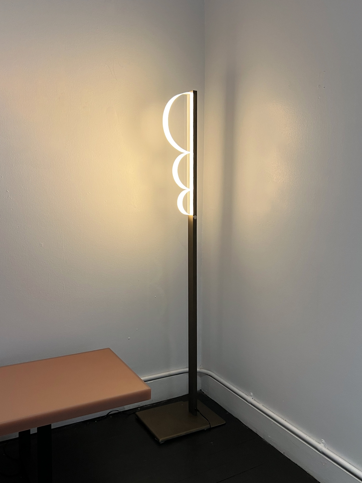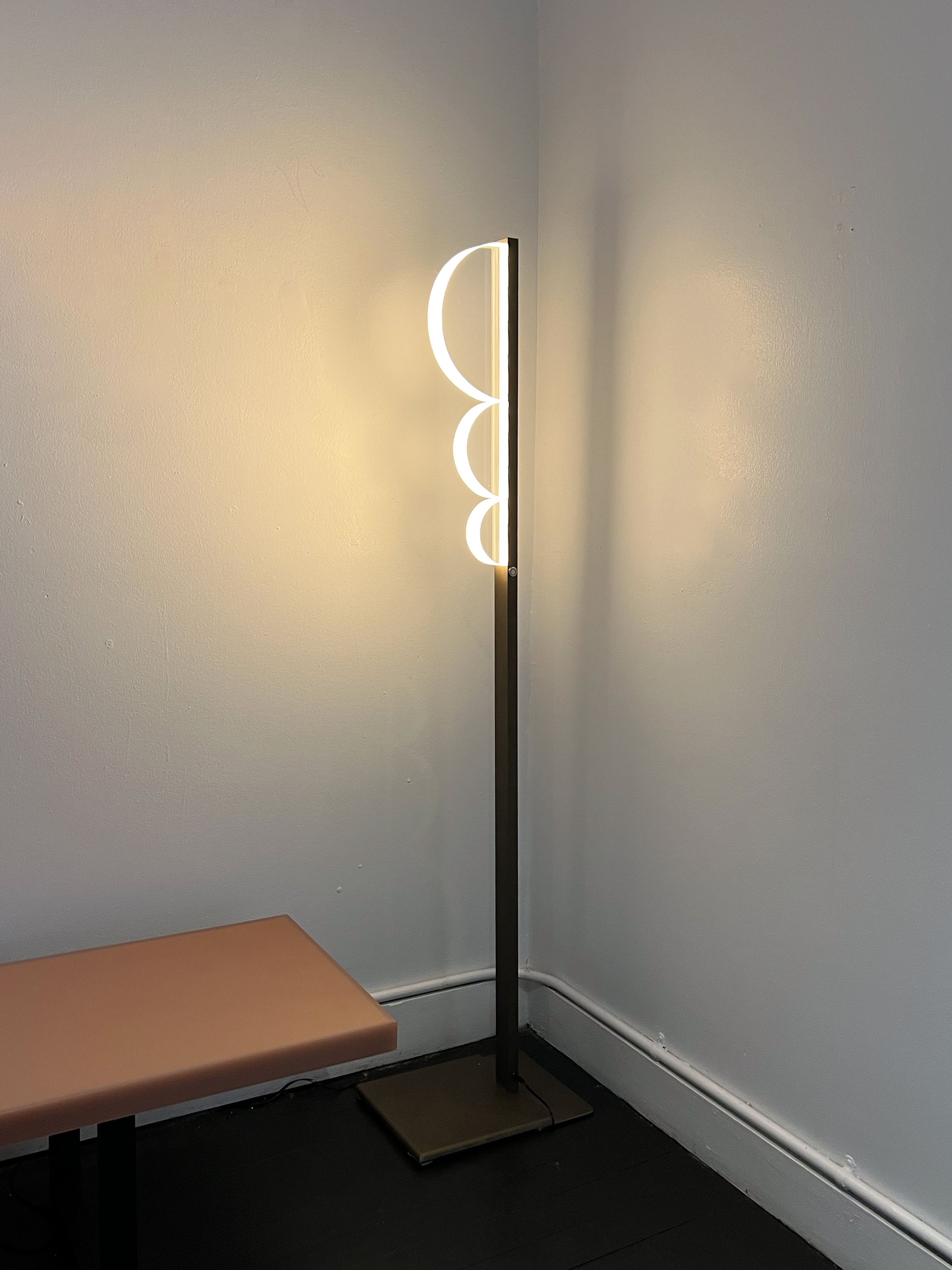 The acrylic elements, shaped as half circles of diameters following the fibonacci sequence, ensure harmonious proportions and a sense of visual balance. This also allows for playful rearrangements, enabling users to create unique configurations and interactions between multiple units that can be connected into pairs, making it an ideal addition to a variety of spaces.