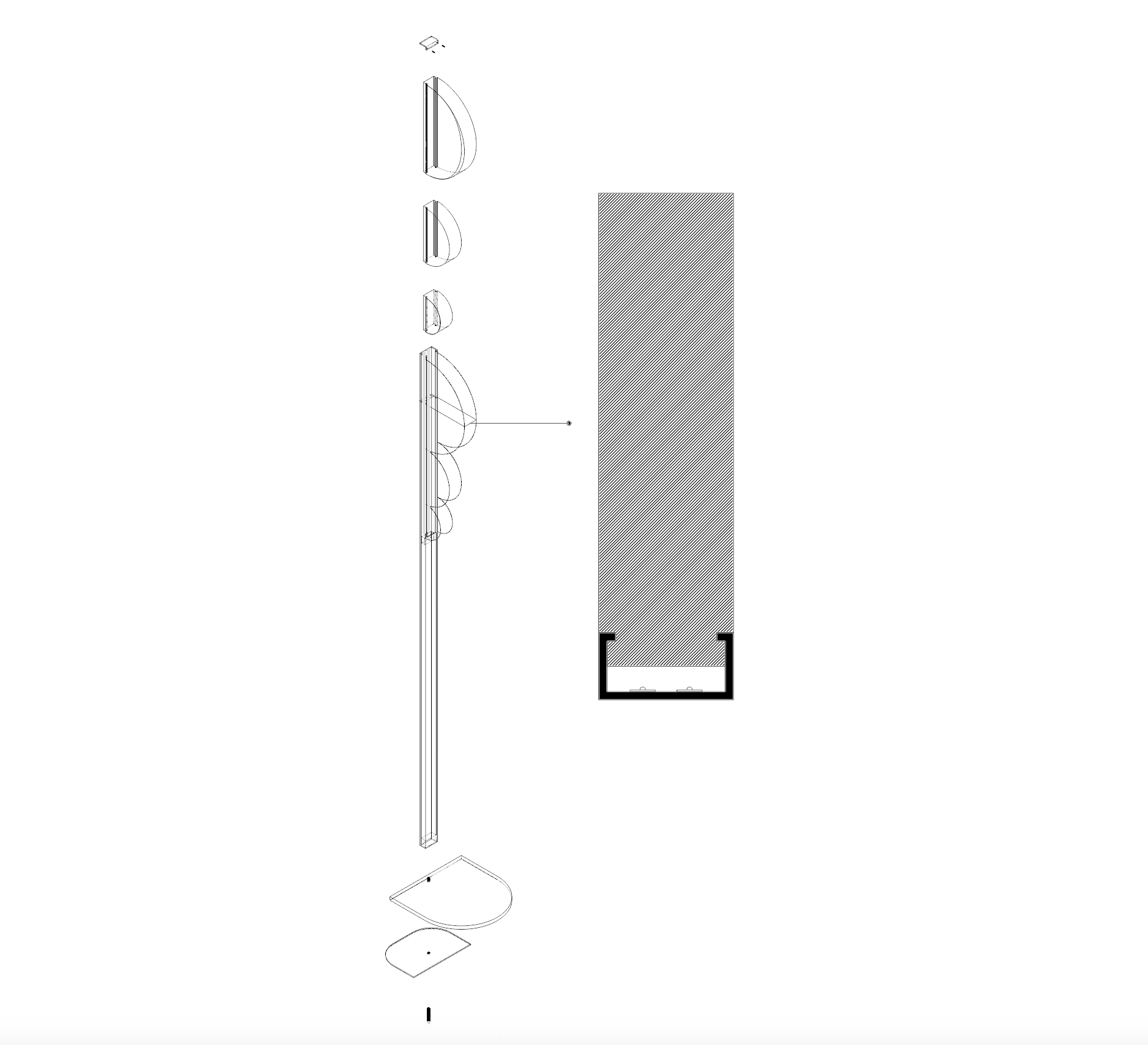 Entry DescriptionThe Totem lamp stands as a beacon of aesthetic and tectonic simplicity. Crafted from a sleek aluminum extrusion and adorned with three thick acrylic blocks, the lamp exudes a captivating presence. Its track solution allows the acrylic pieces to easily slide onto the extrusion, creating a seamless and elegant design inspired by the practicality of architectural aluminum systems.