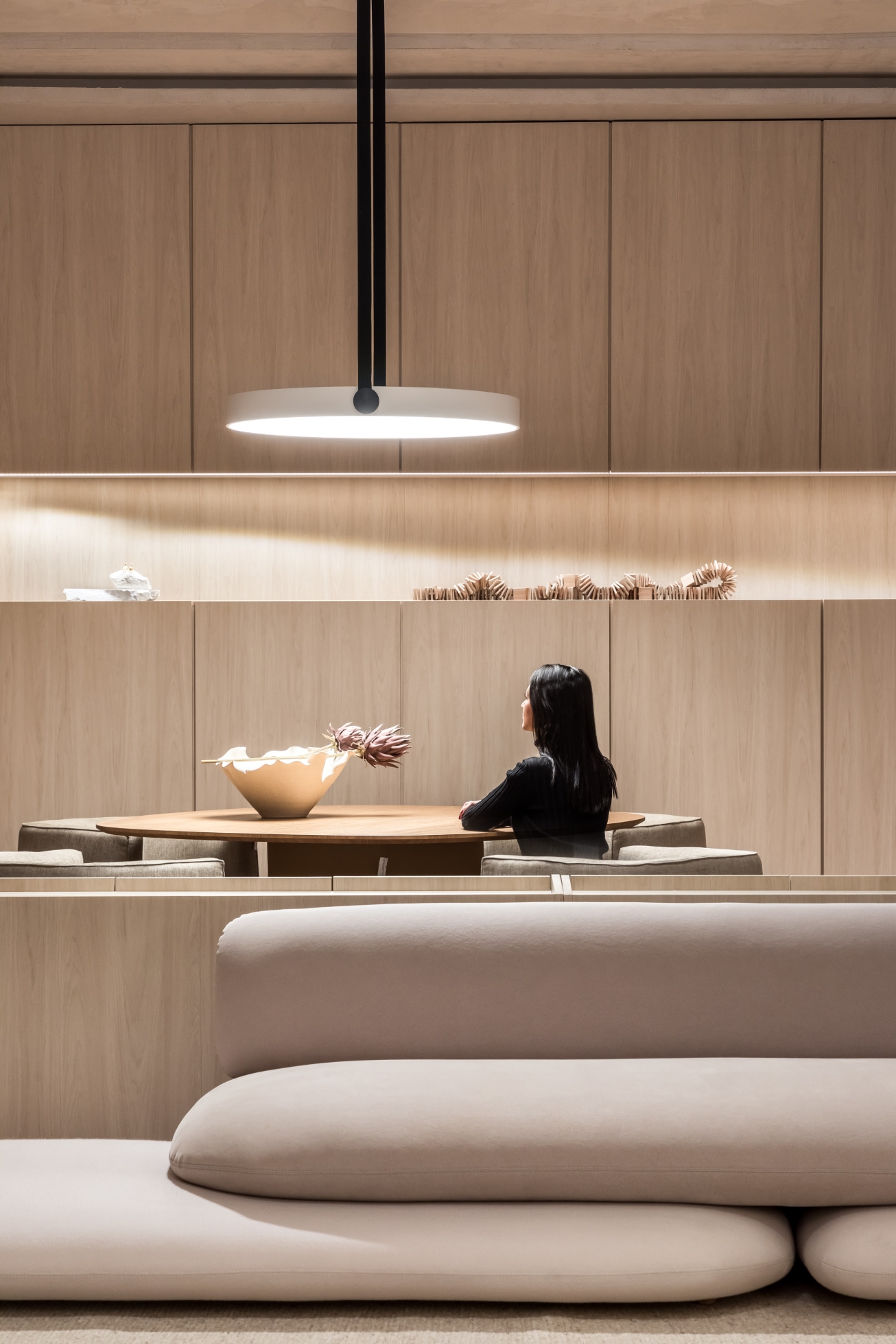 As luminárias da coleção apresentam uma iluminação uniforme e difusa - ideal para iluminar mesas de jantar e corporativas. Por ter esse direcionamento, graças ao tecido translúcido de sua estrutura, a iluminação proporciona uma sensação de luz direta e funcional, sem deixar a estética de lado.