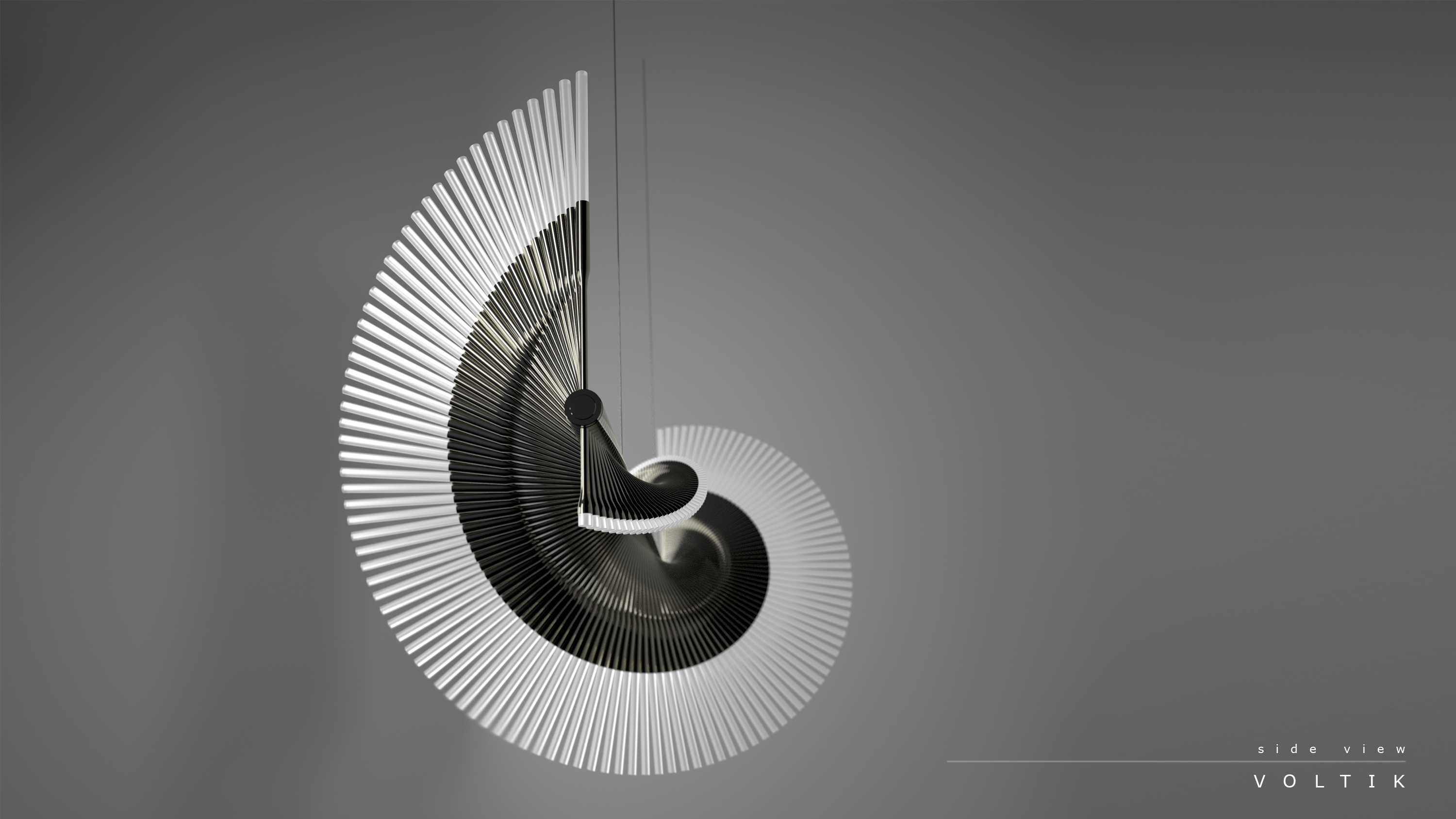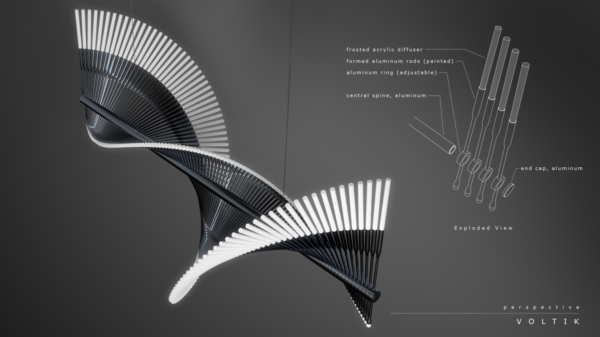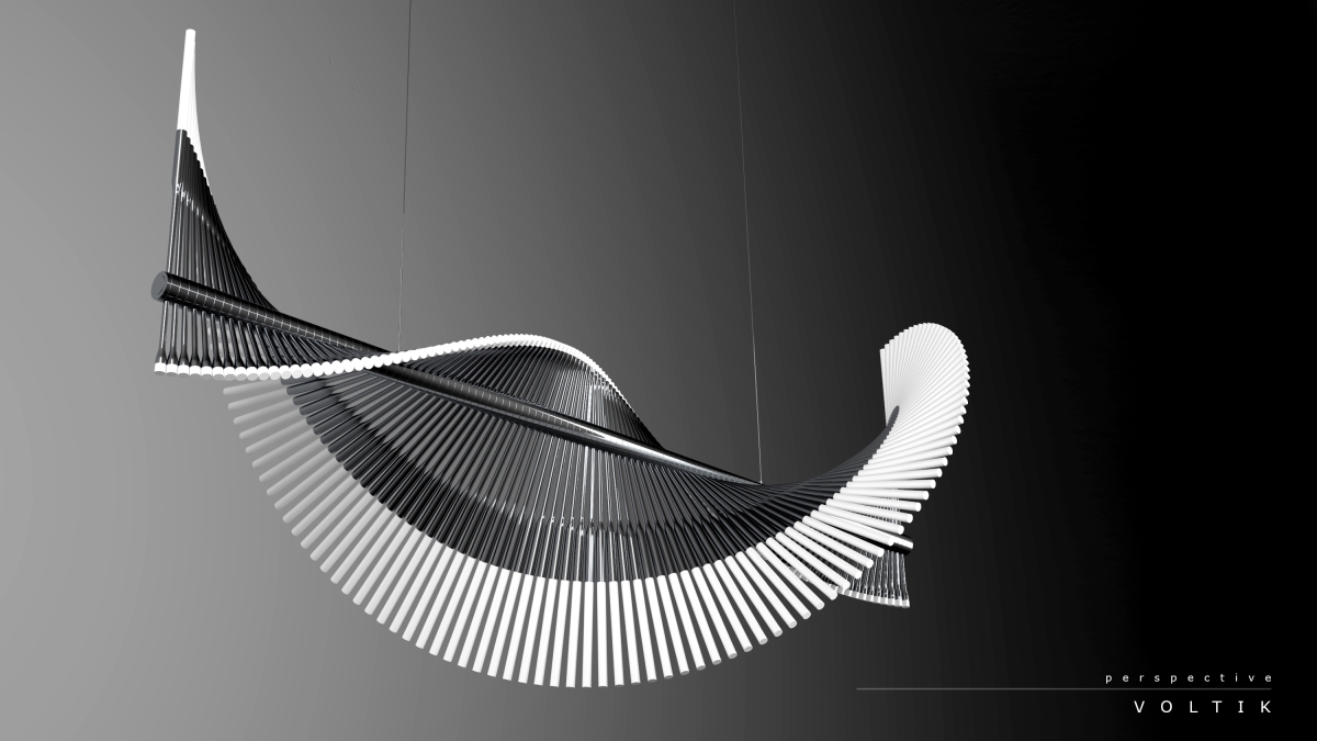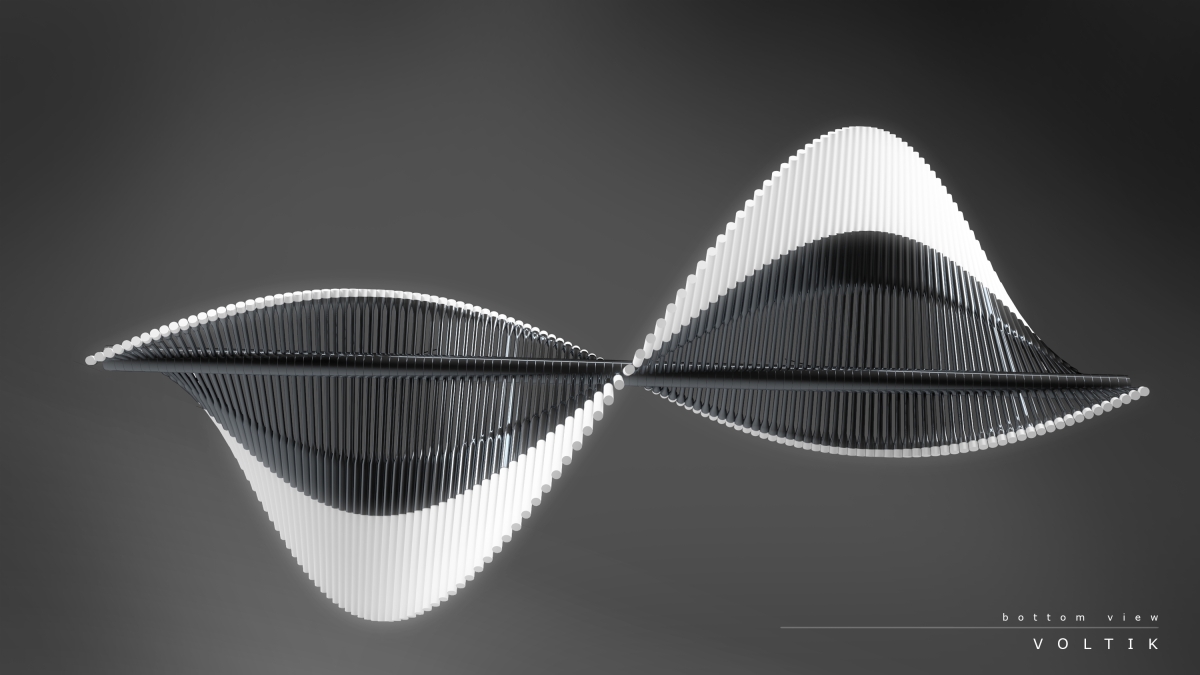 Finding inspiration in the work of mathematician Leonardo Bigollo Pisano, also known as Fibonacci, the Voltik, with its rhythmic offset arms creates a feeling of fluid motion. As the viewers angle changes Voltik seems to evolve its form.