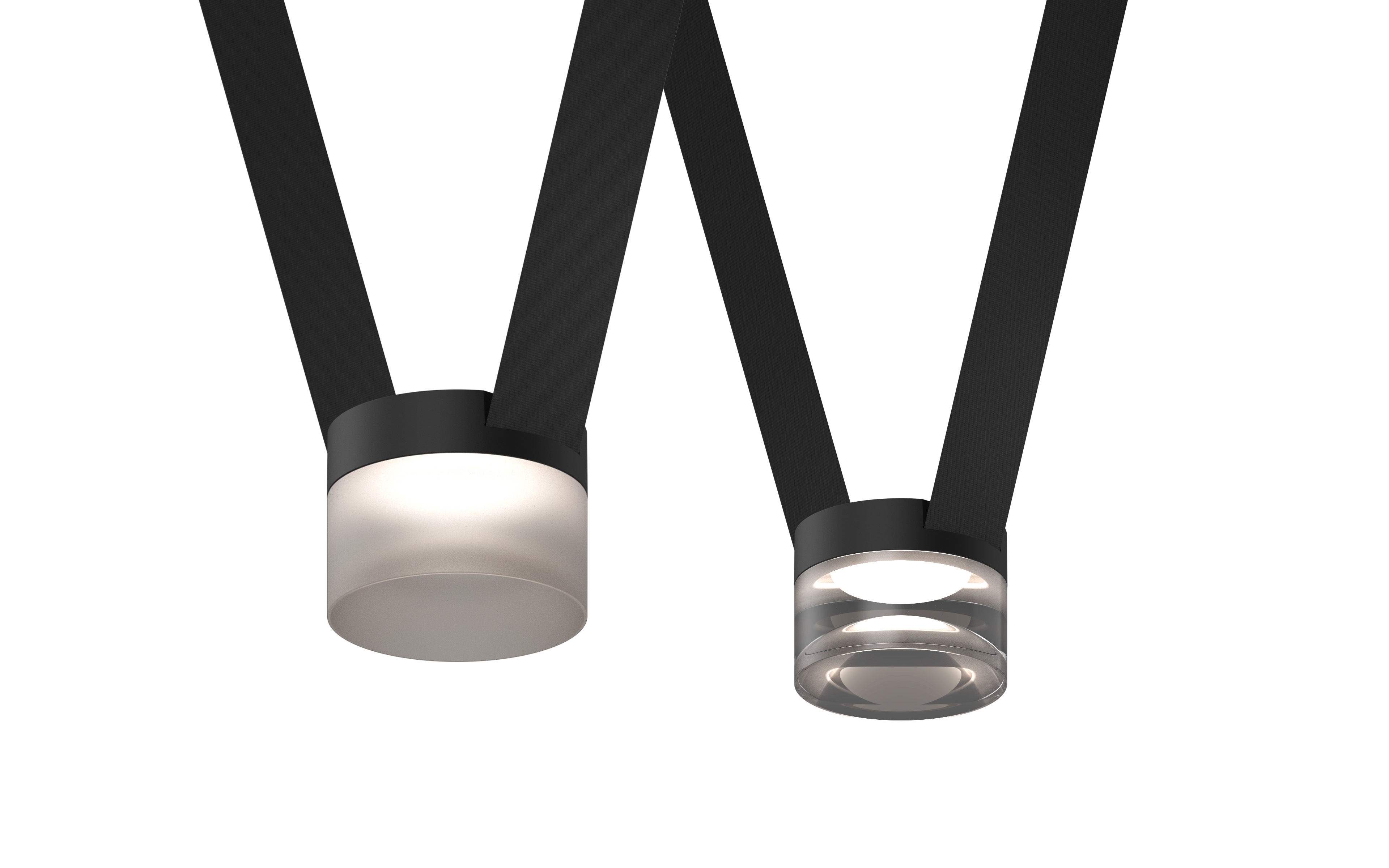 Entry DescriptionTangram-Cut is defined by bold four-inch-wide straps, which can be configured into a variety of geometries using spacers that pull in or push out the straps to create striking shapes. A flat power cable is fully concealed inside the strap.