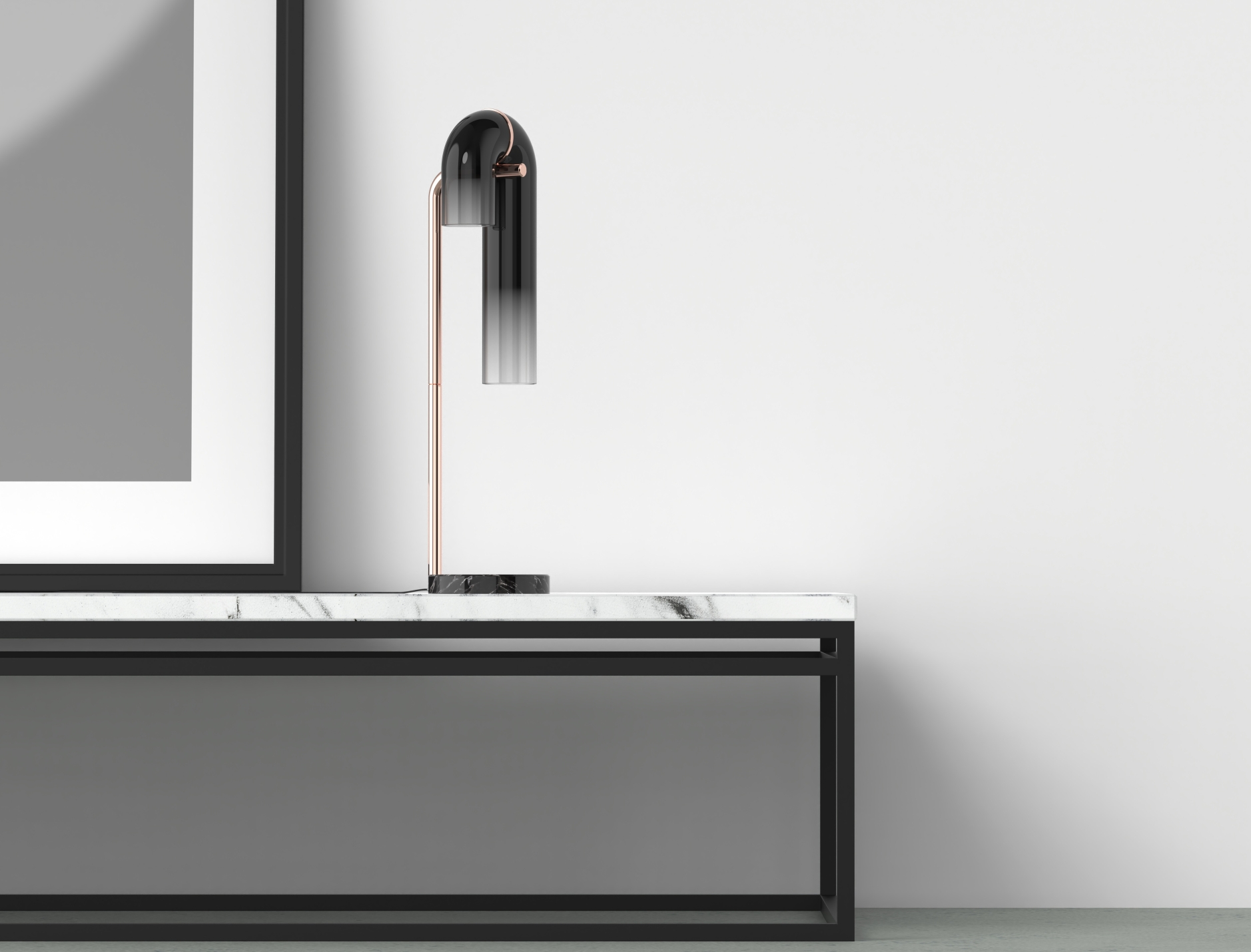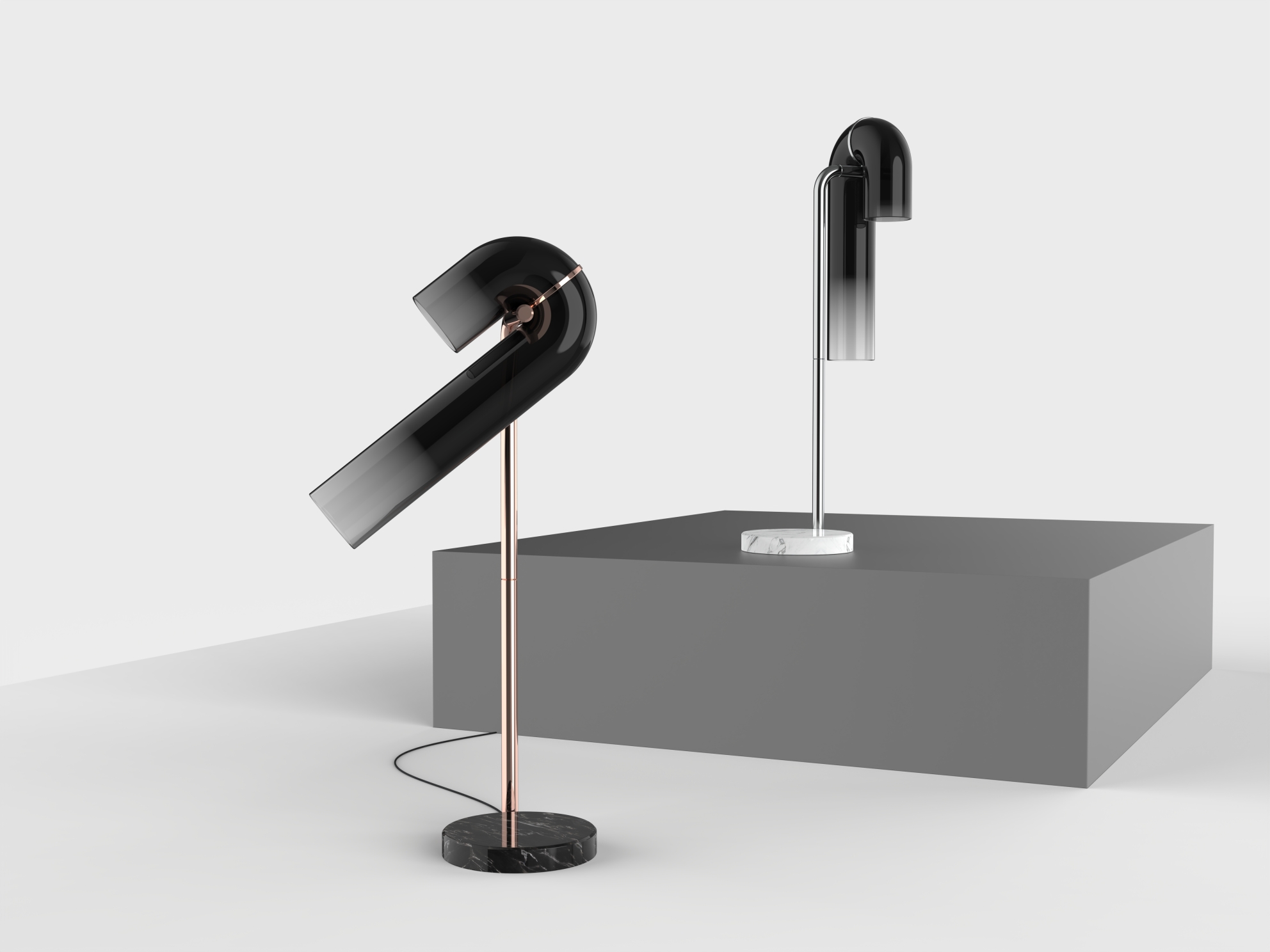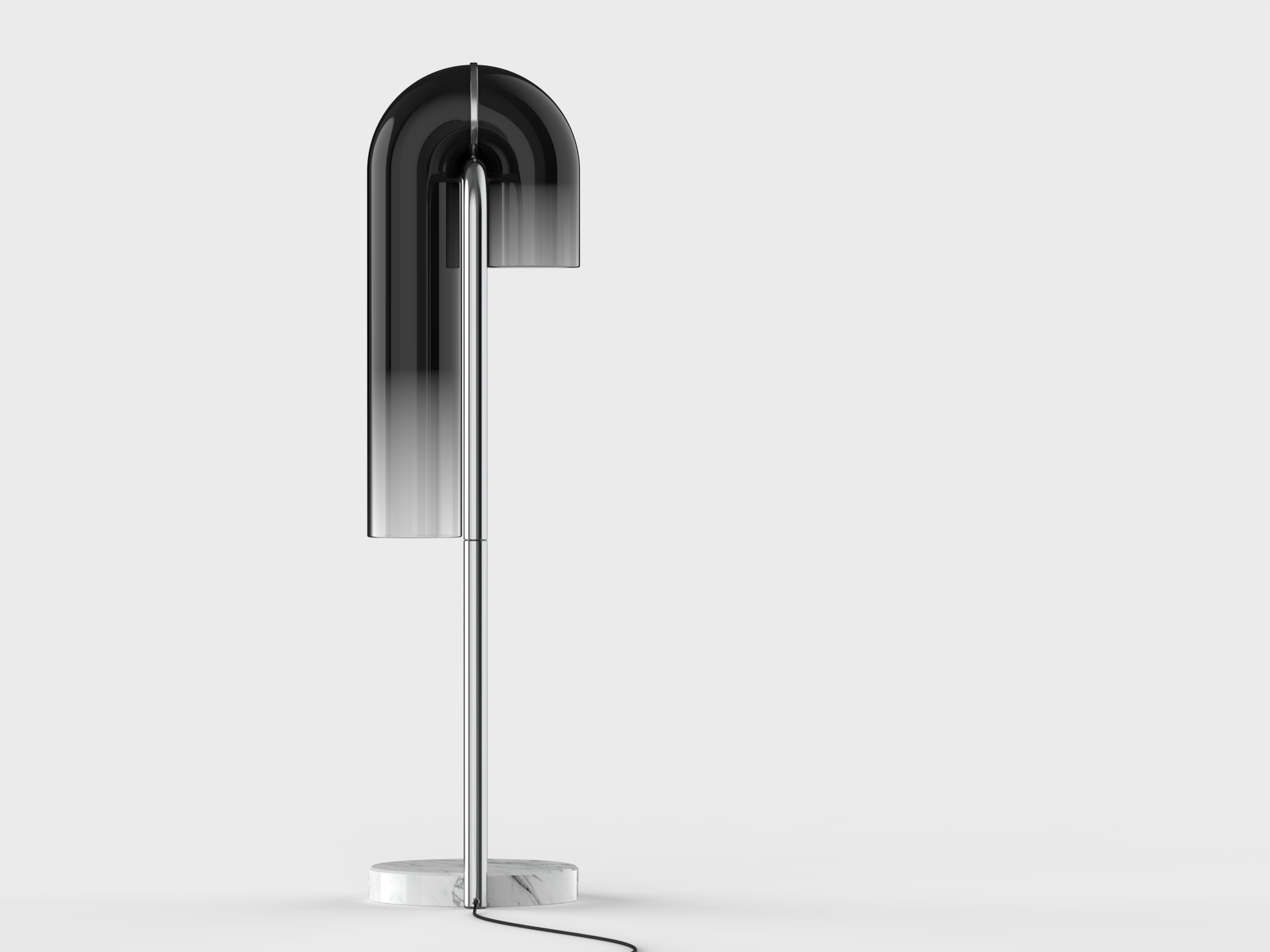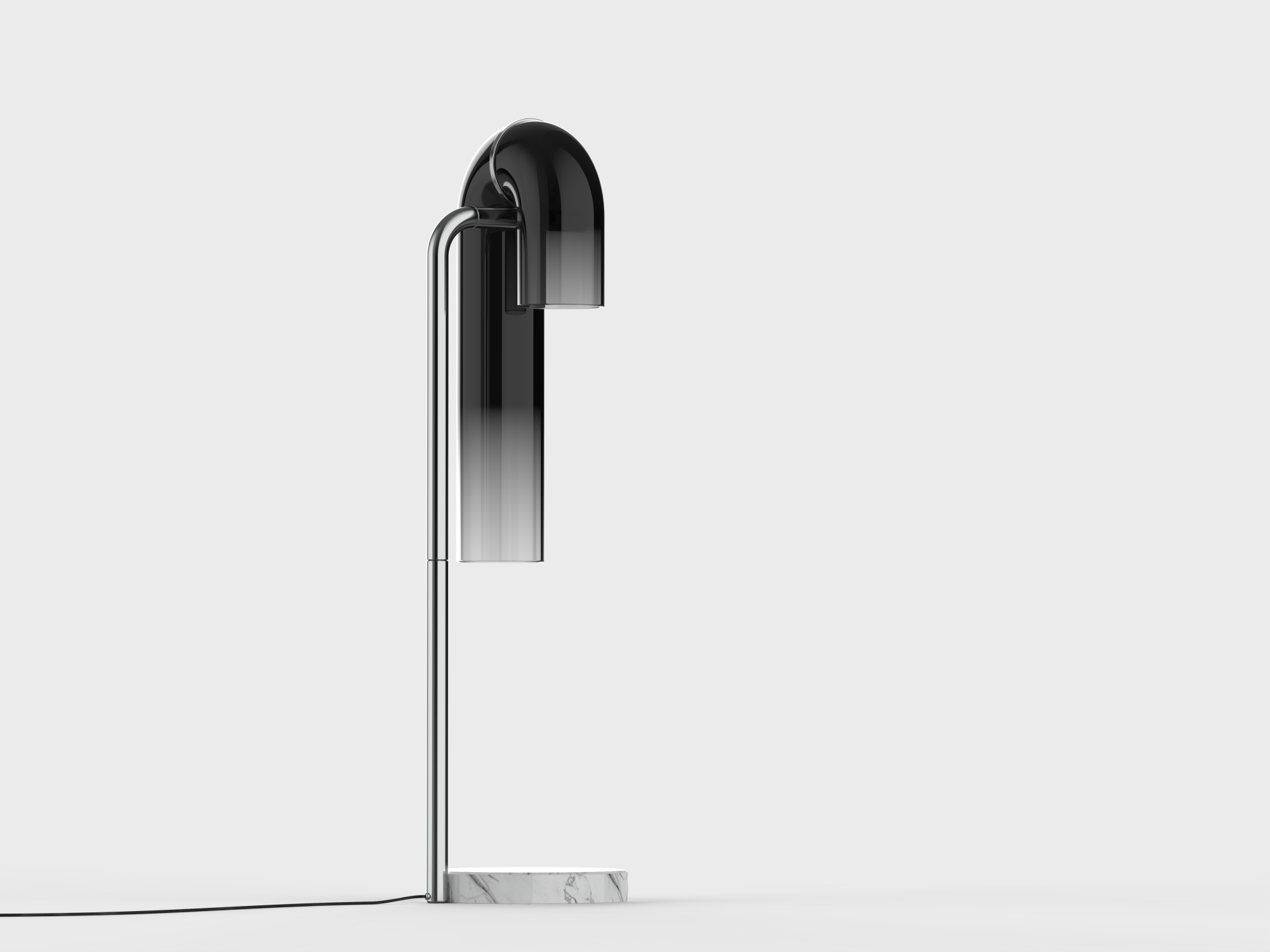 The combination of classic materials such as Carrara marble, polished stainless steel, and Murano glass works for an image of a lighting fixture that will be relevant almost always. In this way, I have endeavoured to create a design that will not become outdated and will create a responsible attitude towards consumption. The design of this lamp allows you to rotate and direct the light source in different ways, illuminating any preferred surface. Switching the lamp on and off is thanks to the touch zone under the light source - just swipe your hand to light the lamp.