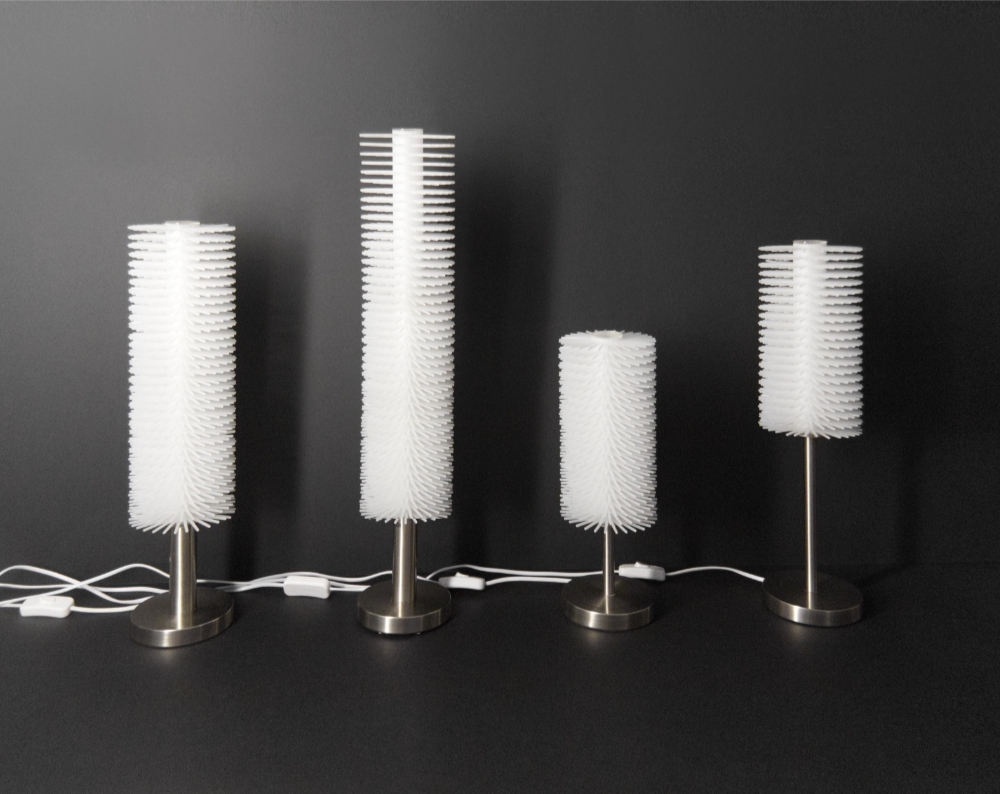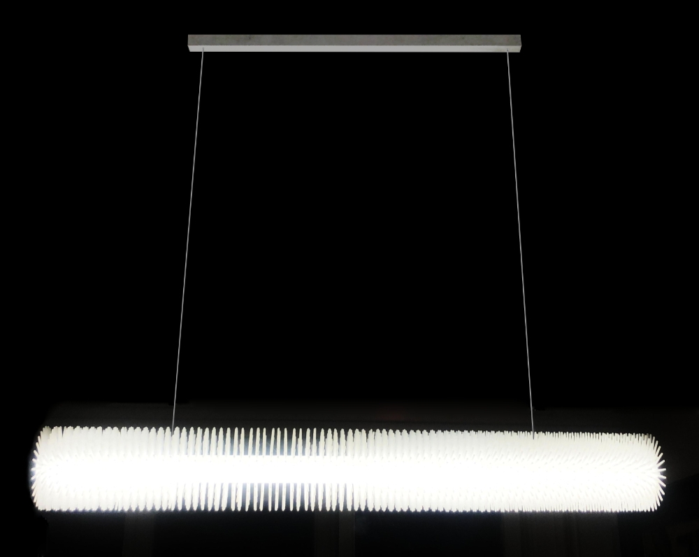 Sustainability ApproachThe star flower LED lamp family is made by stringing spiky white polystyrene discs on a plexiglass support tube. There is a square aluminum tube inside the lighting cylinder, two LED strips are glued to it. There are polystyrene disks on the cylinder, by these elements sorted gives the lamps a varied appearance. LED lighting is an energy-saving electrical lighting method. With the help of the adjustable adapter, you can change the mood of the lighting. These adapters can be integrated into a plug-in or wall-mounted controllable switch, an adjustable wireless remote control. In this way, the basic light can be adjusted up to 25%, creating mood lighting. By using only a few elements: the spiky white polystyrene discs, the square aluminum tube with LED tape glued on both sides, and the stainless steel tubes of different sizes, we create a family of lamps with a varied appearance and shape.