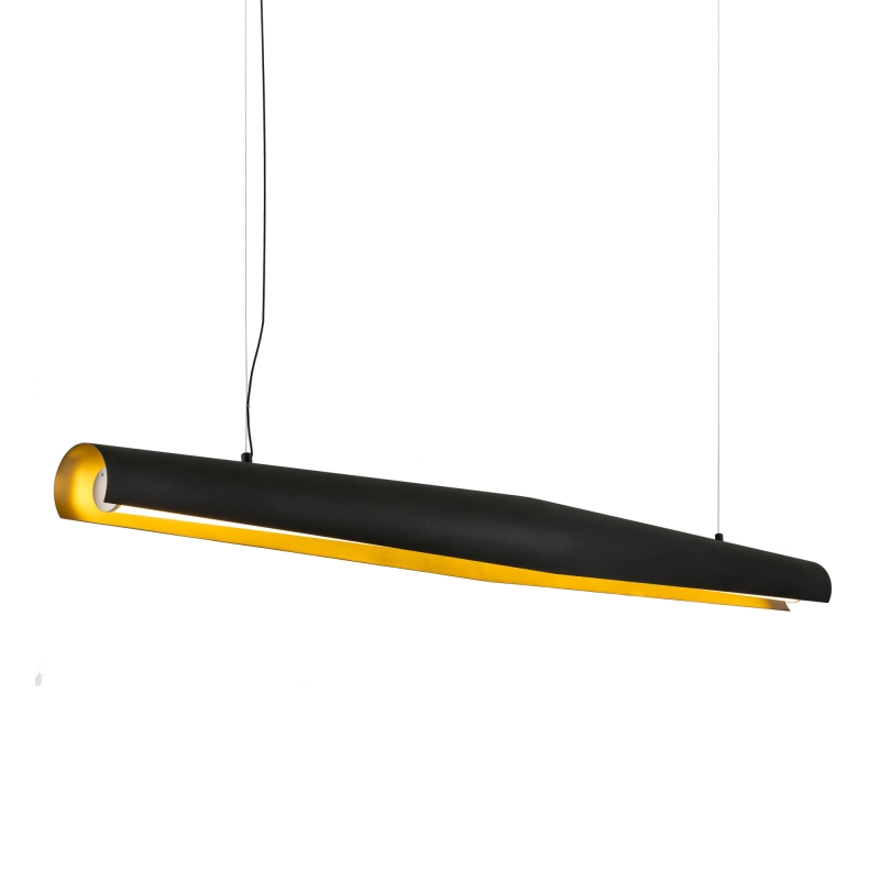 The Yona light has an interior specifically designed to play with light. The brass coating inside the curved shell not only adds an elegant feel to the fixture but also serves a functional purpose. The shiny surface inside the Yona celebrates light, reflecting it outward rather than absorbing it, making the fixture appear brighter and more luminous. This ensures that the illumination provided is maximized and enhanced, resulting in a brighter and warmer atmosphere.