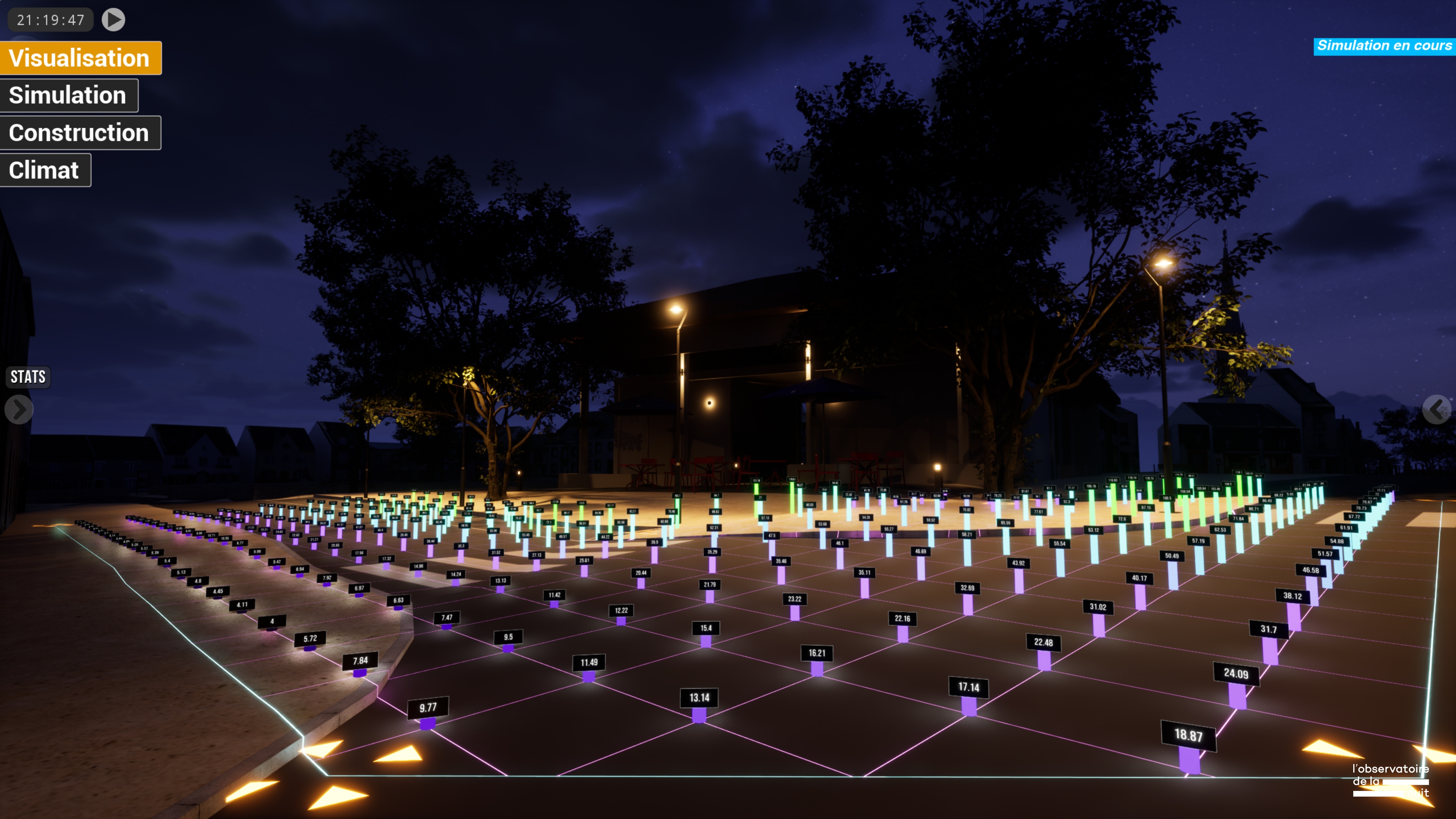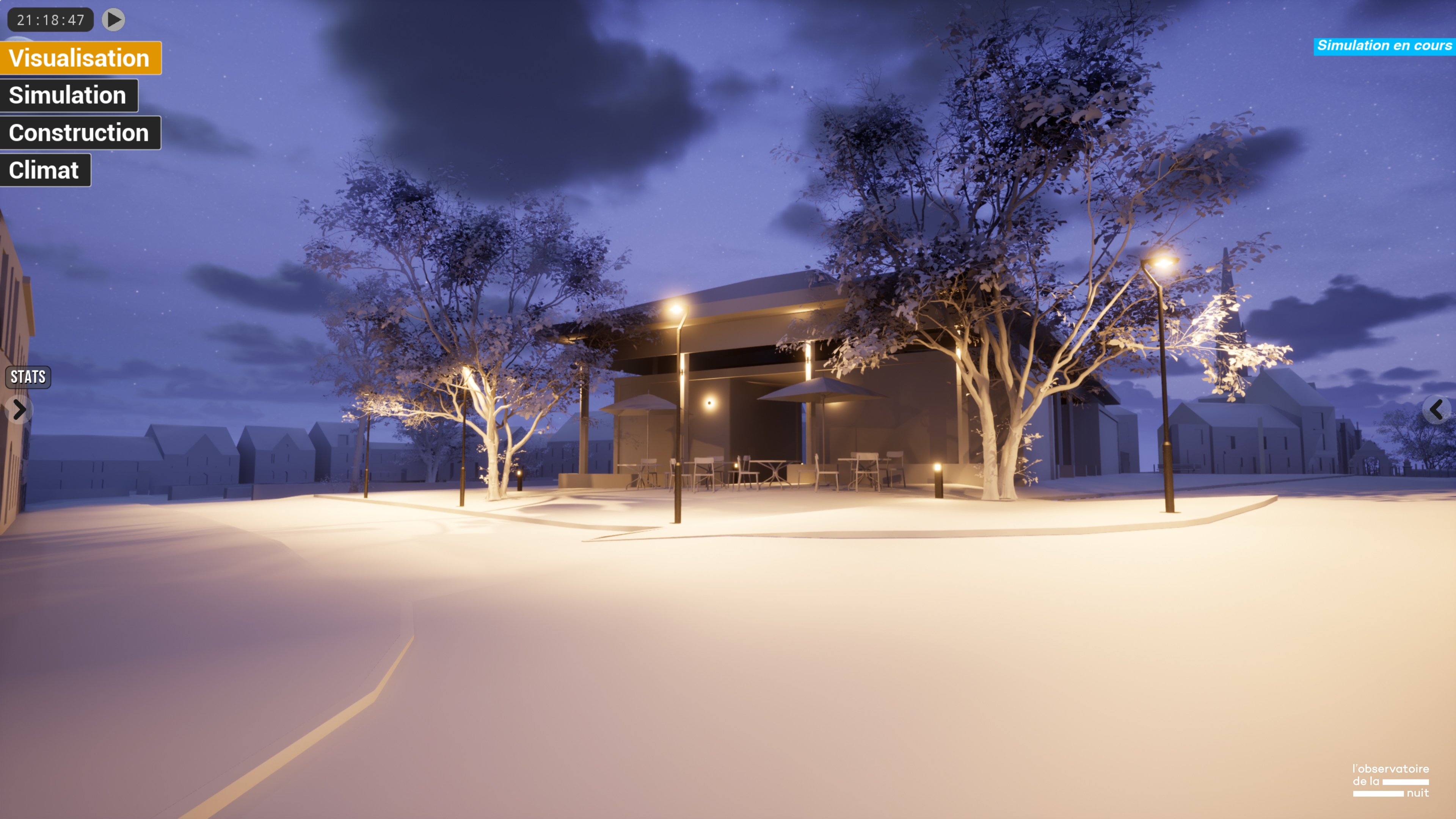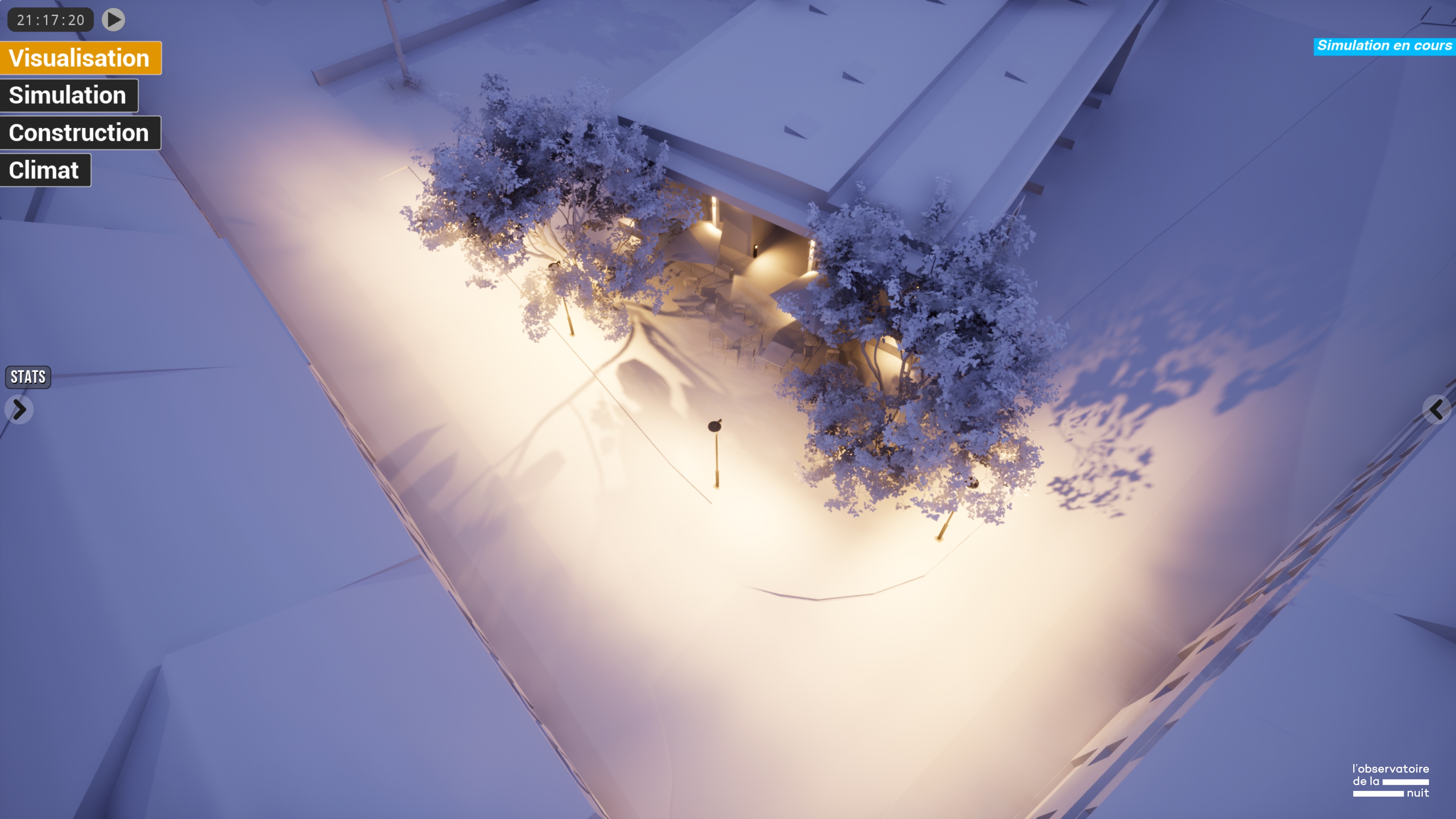 Sustainability ApproachObscura is dedicated to the democratization of moderate and high-quality lighting, to the search for an opening to the restitution of natural night atmospheres and the benefits of darkness for all living beings. It accompanies the evolution of practices towards a reasoned and adapted integration of digital tools and encourages the rise in requirements of lighting projects through interactive and collaborative simulations.