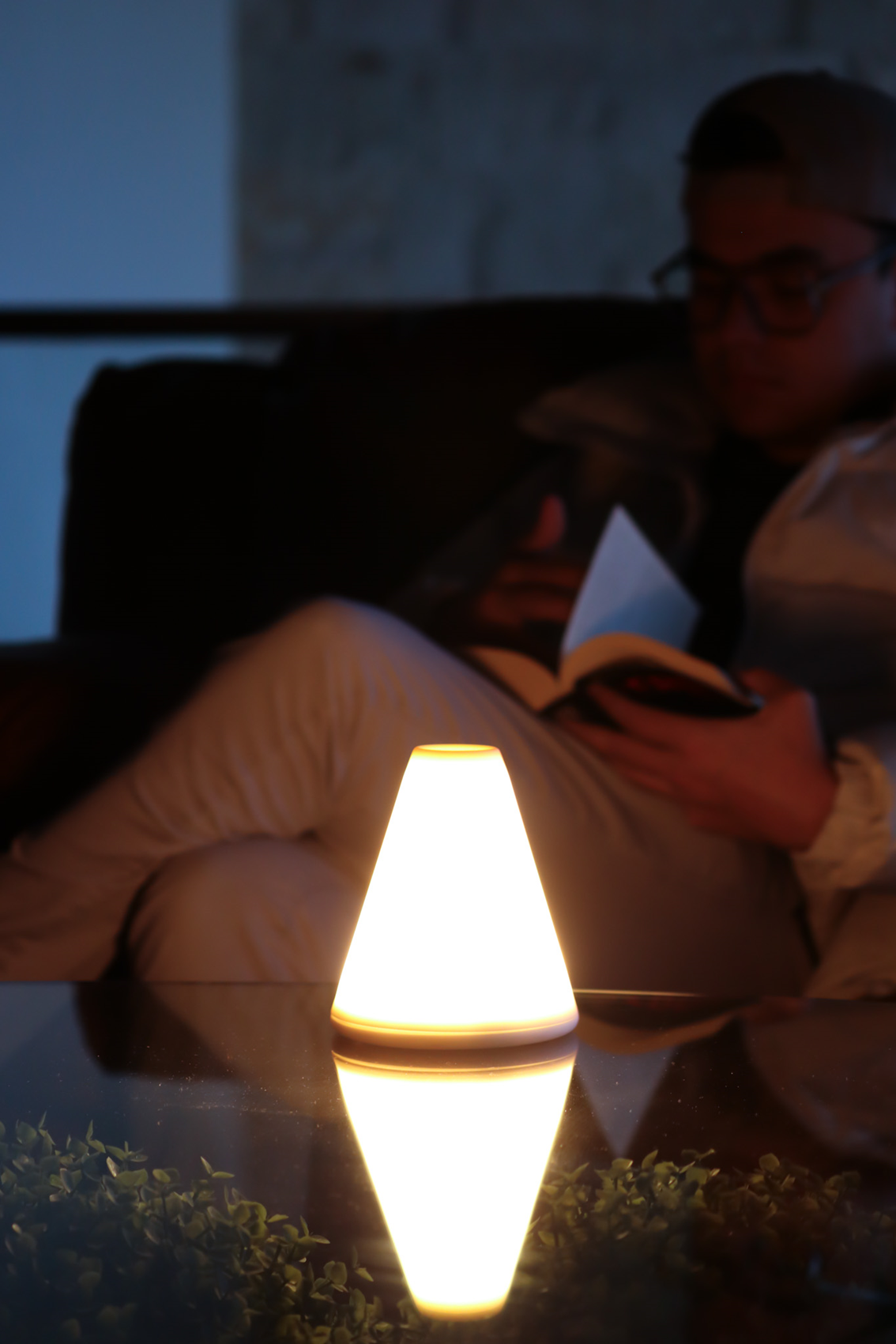 The function of "FARO" is to provide the user with new possibilities of interacting with a lamp inside and outside the home, as it consists of three types of adjustable luminaire, which are the base and the central part with warm and neutral temperatures, highlighted by its ecological 3D resin shade and the upper part that provides a cold light, all of them being used by the user and his various activities, "FARO" can be transported anywhere since its two sections are composed of electronic systems and independent rechargeable batteries, being interlaced by a sphere which has a charging mechanism that connects to the central part by magnetism and can be separated at any time, this sphere can be selected the color that most suits the user which is combined with its power cord.
