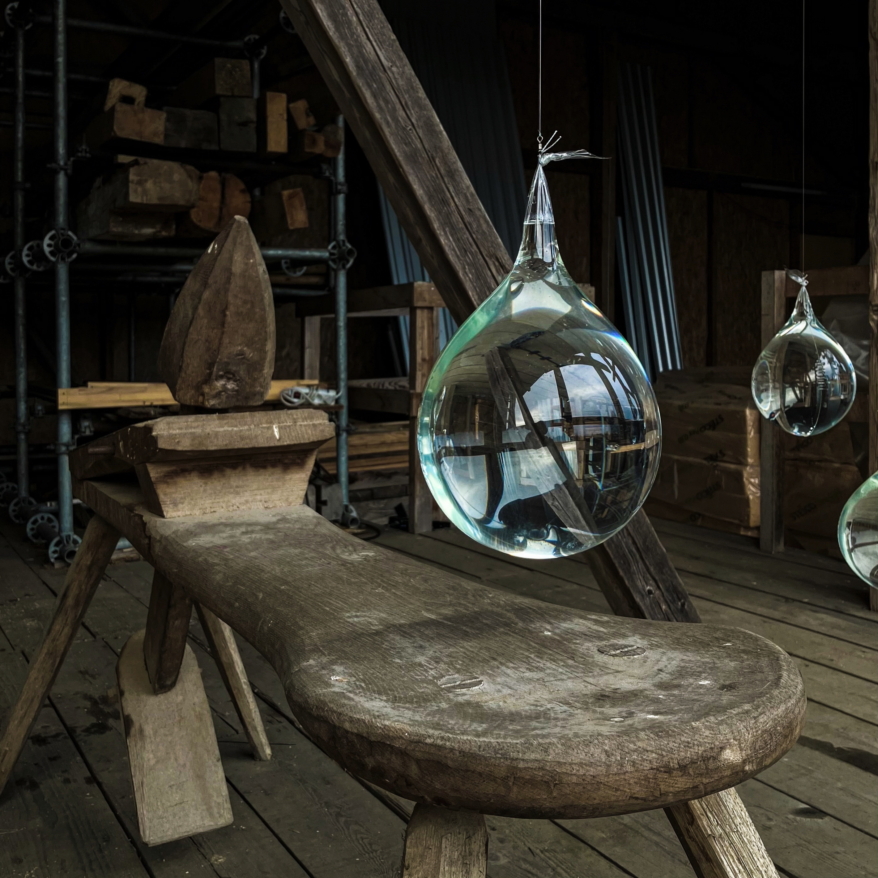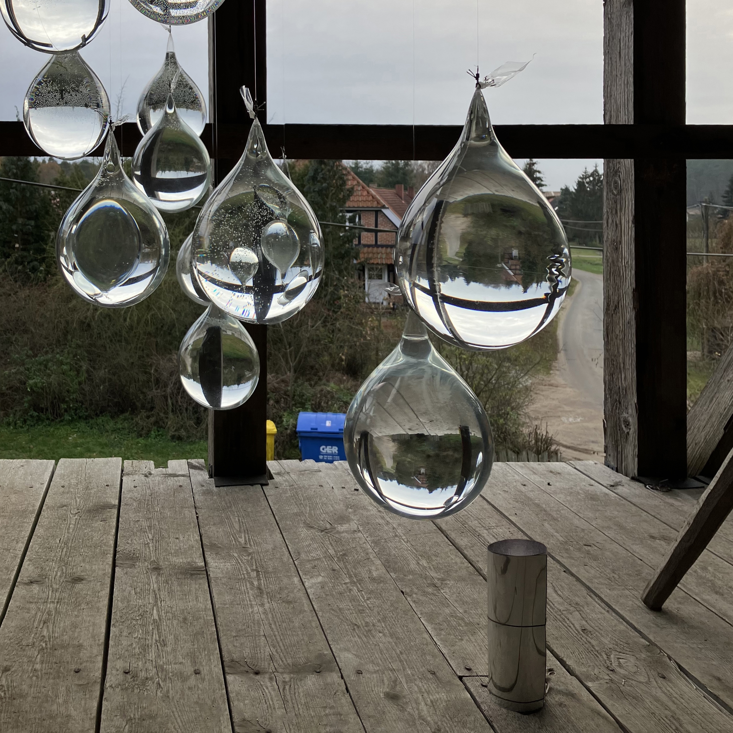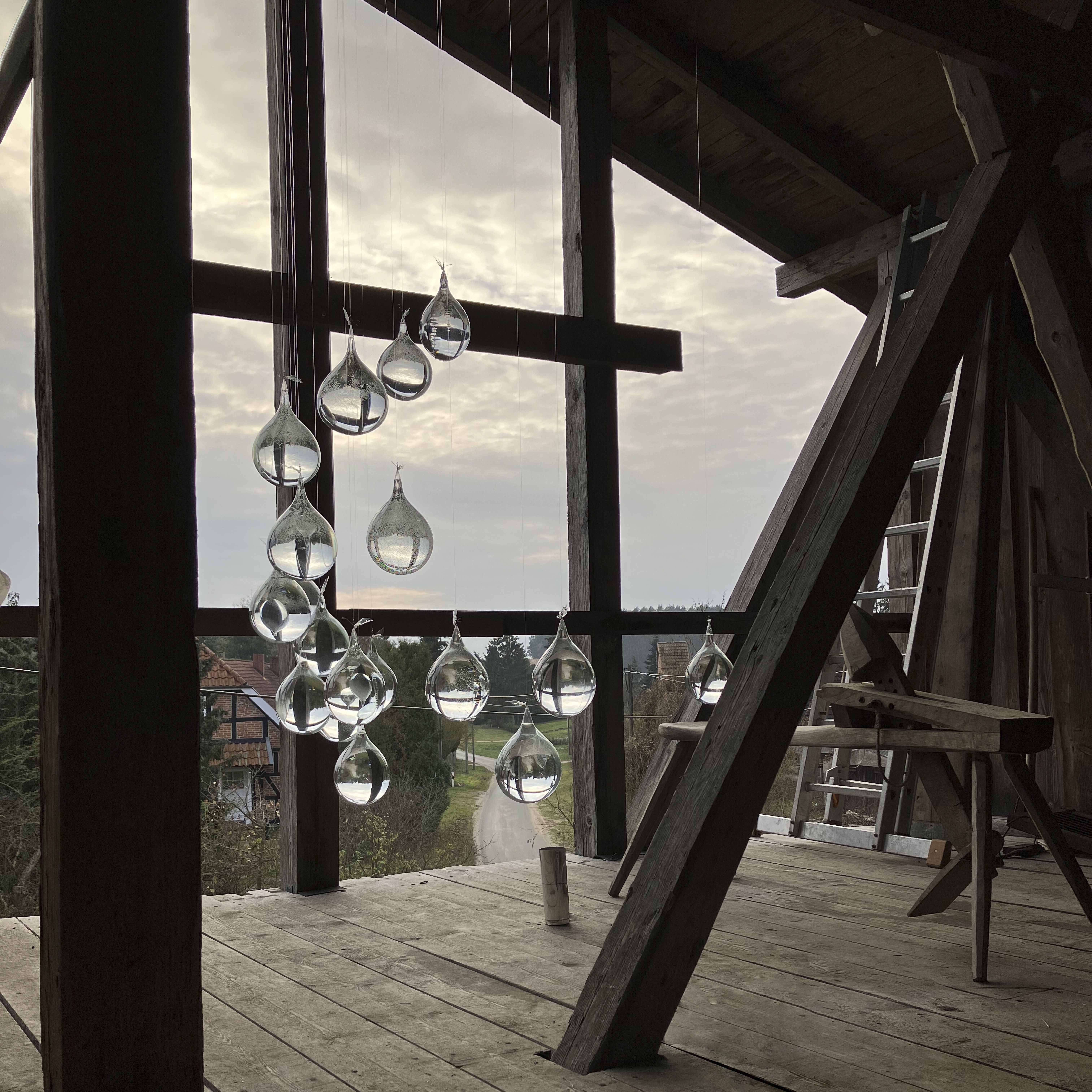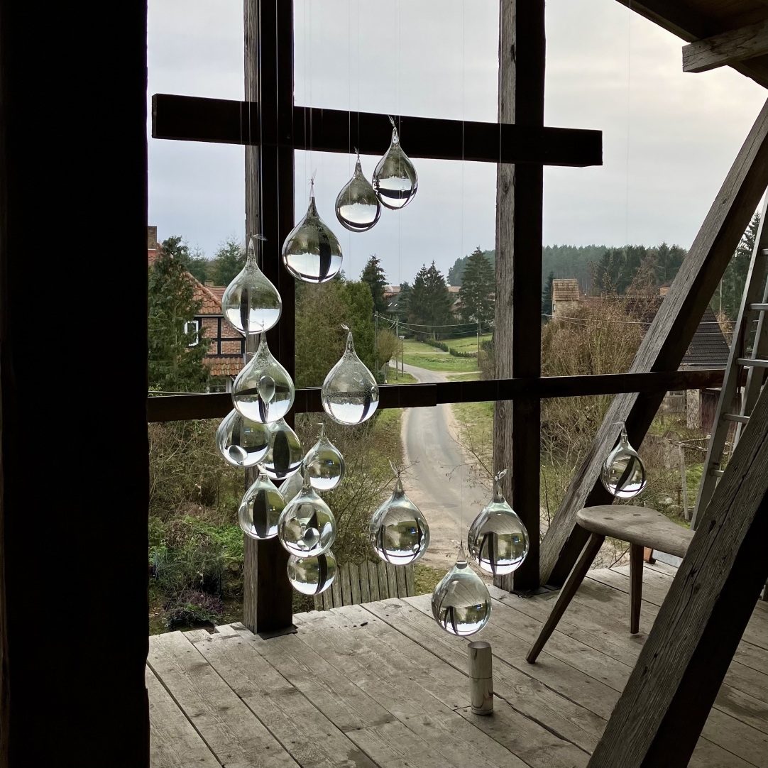 Furthermore, the project delved into experimenting with the interaction of winter horizon sun rays in the realm of light art. The installation artfully employs very cold color temperature artificial light and, elegantly intersects with the extended blue hours of northern Europe's winter. Executing this artistic concept involved the experimental scattering of droplets within an incomplete sphere, each containing varying salt and water concentrations.