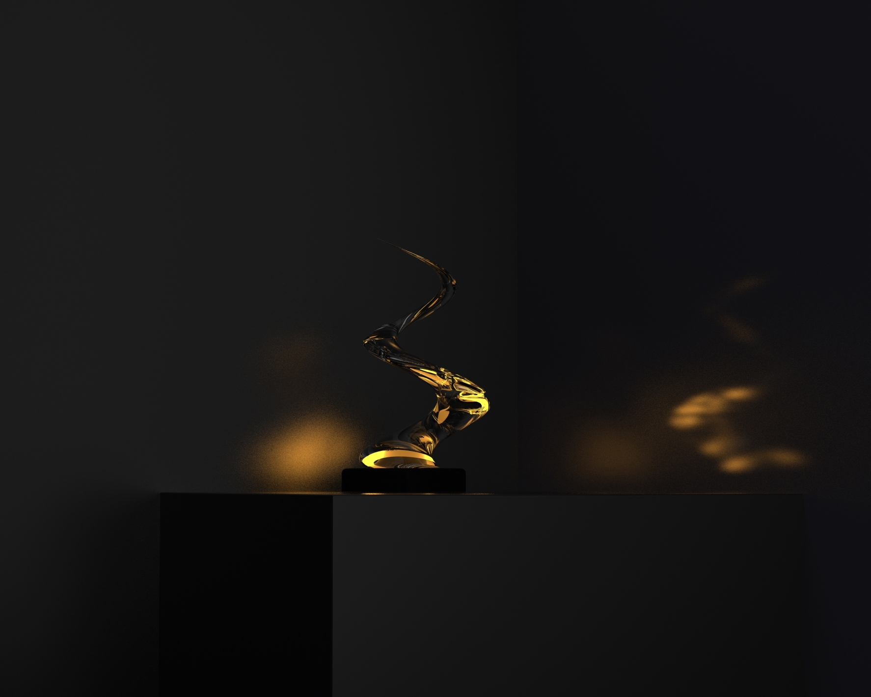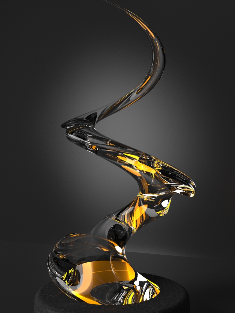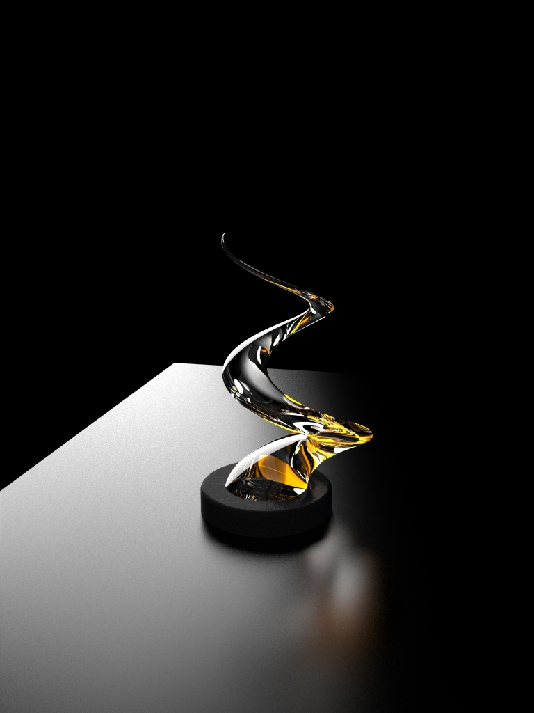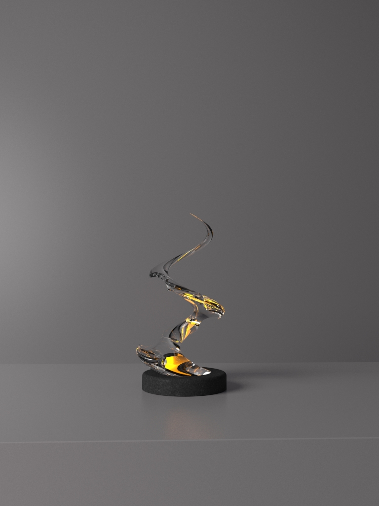 Entry DescriptionThe standout feature of this lamp is its helix-shaped low-iron alass, which is illuminated by a surface of LEDs. The glass has been meticulously designed with small holes on its surface, which creates an unperfect lighting effect inside the glass. The light refraction gives the impression of dancing flames, much like those seen in a firework display.