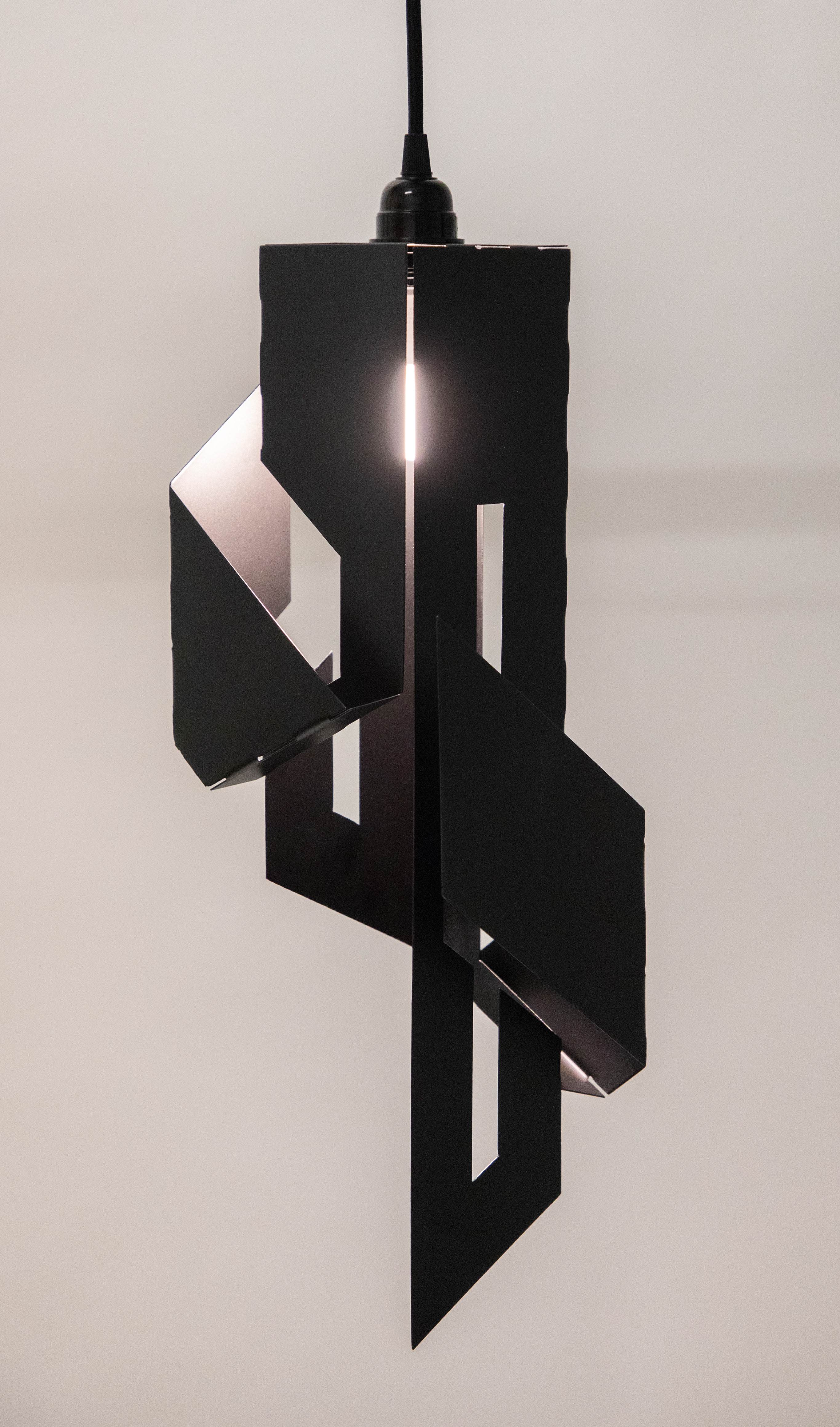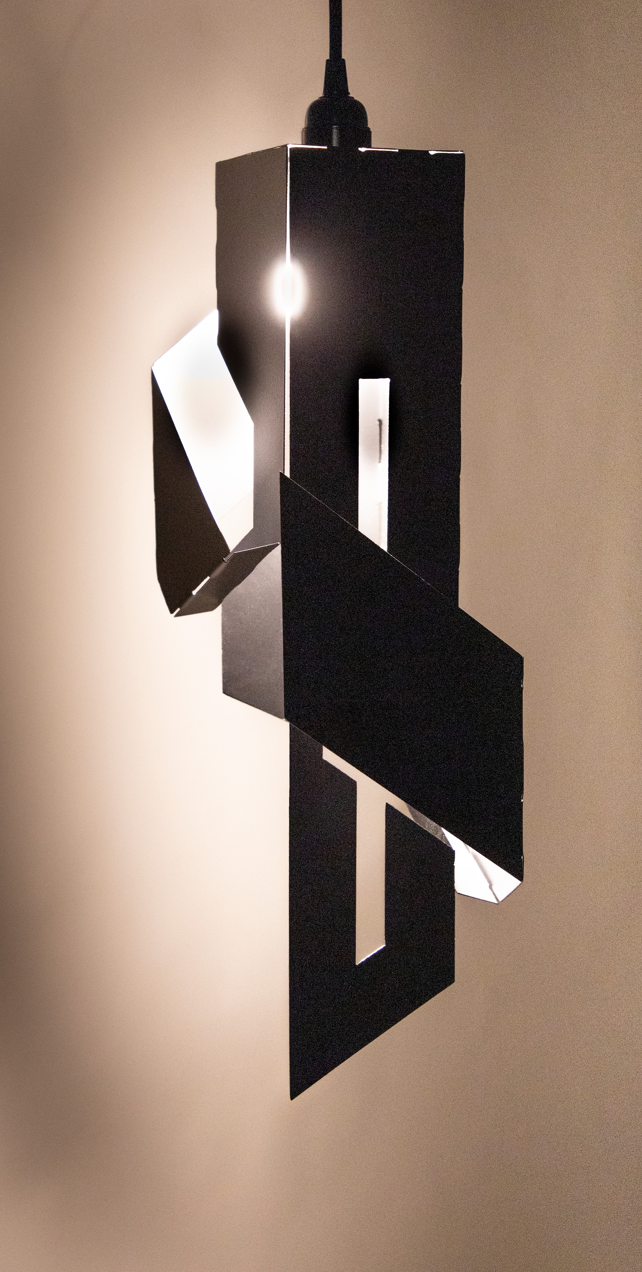 Lighting can create a space, and it can also become an independent space in itself. I want to create a unique separated space for hanging and offering lights. The lamp is folded from a single piece of metal. After completing a base shape, the metal is folded into two layers to create the space. The reflection of the second layer also can offer more light.