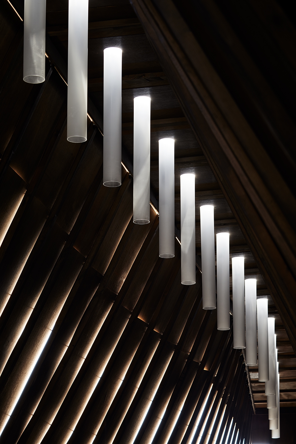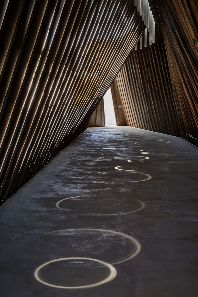 Entry DescriptionOn sunny days, when the sun shines and a certain amount of wind blows, light is led into the space from the pipes in the ceiling, creating a phenomenon of light that looks like drops falling onto the surface of water. The light constantly moves with the wind and falls to reveal new sights. This architectural space is a remarkable manifestation of the seasonal, daily and time-of-day changes caused by the atmosphere, and the sights that can be experienced differ depending on the time of day when you visit. It is an accidental creation of nature, which we humans cannot manipulate.