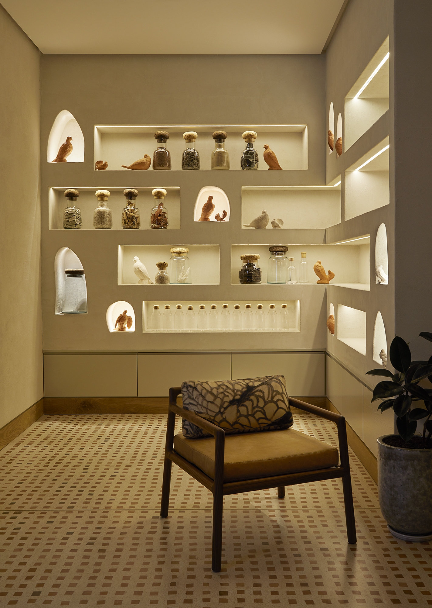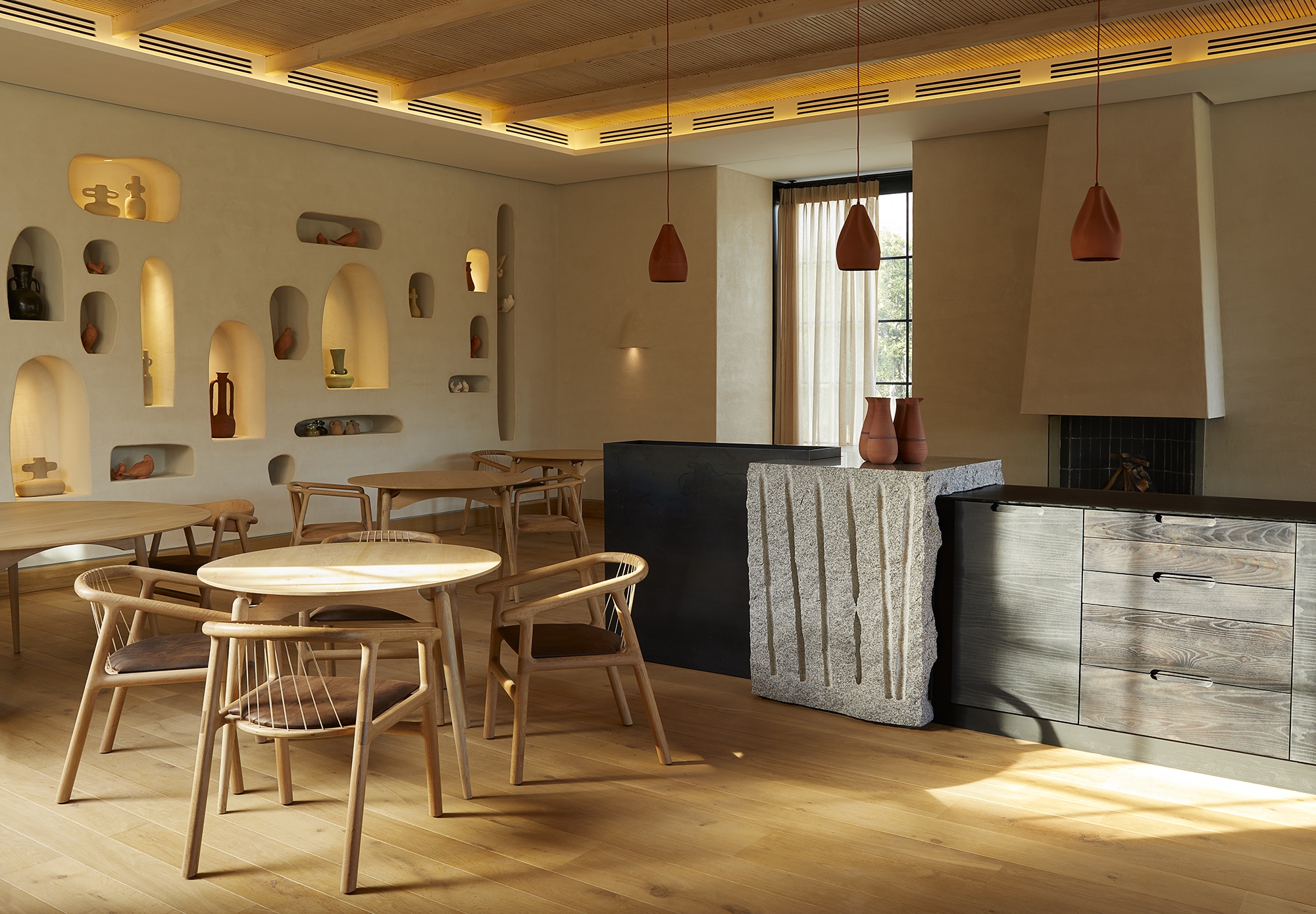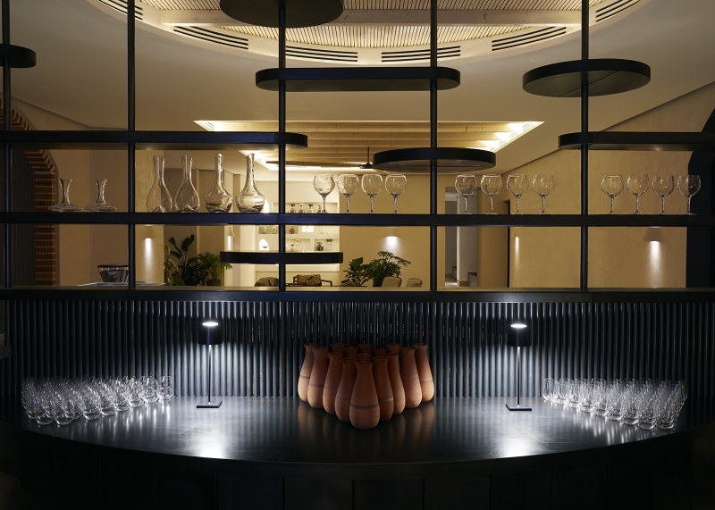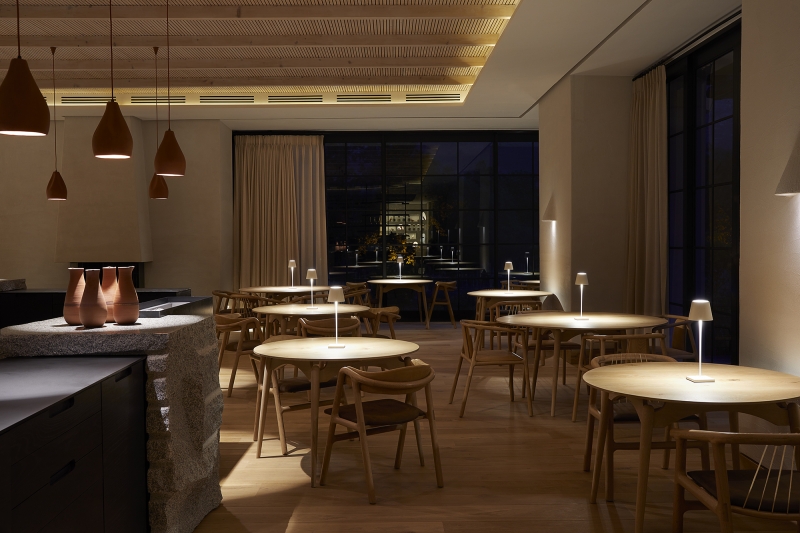 La Petite Colombe - “little dove” - offers diners the highest level of excellence, from service to exquisite multi-course lunches and dinners sprinkled with touches of whimsy and drama for a one-of-a-kind dining experience. The lighting scheme played an important role in achieving this. Subtle concealed indirect lighting improved the visual comfort of the space, while rechargeable and dimmable table lamps at the table empowered the guests to set their own mood and light intensity ensuring a tailored and unique experience for all. In this environment Food is the main focus, even the bar lighting is intentionally low so as not to distract from the culinary displays on each table. Pendants over the water stations provide a central ‘campfire’ glow to the space. Wall sconces provide the perimeter glow along with Reflection in the windows contain the space. The inspiration for the interior is very much based on the exterior and the land and the idea of transforming raw materials from the earth into beautiful man crafted objects. Stucco walls are textured and tactile. Enhancing material, texture, color and finish was emphasized with a variety of light types from softer ambient diffused linear light sources to focused lensed accent light to dramatically illuminated texture where the marks of human touch and making are apparent.