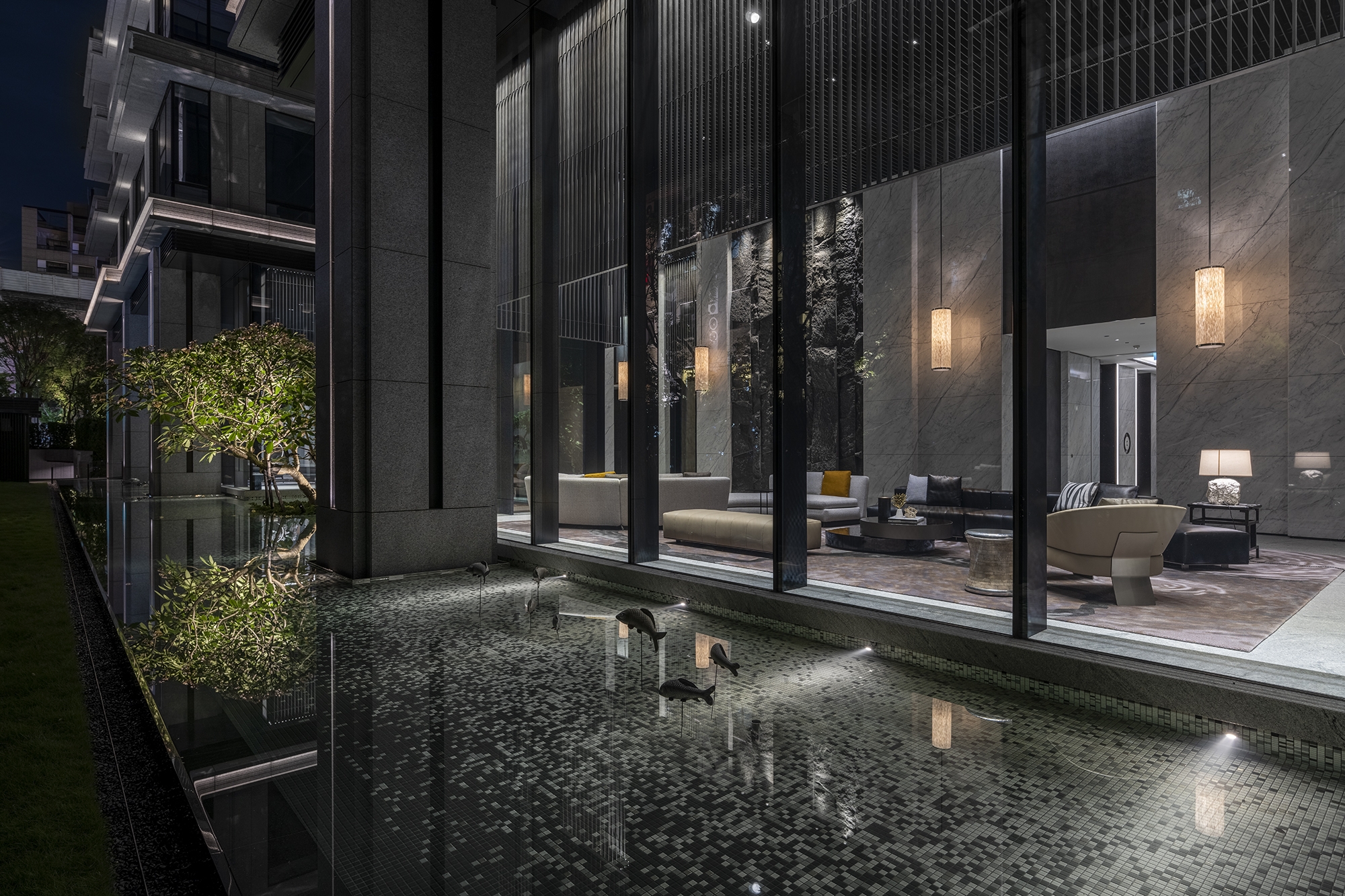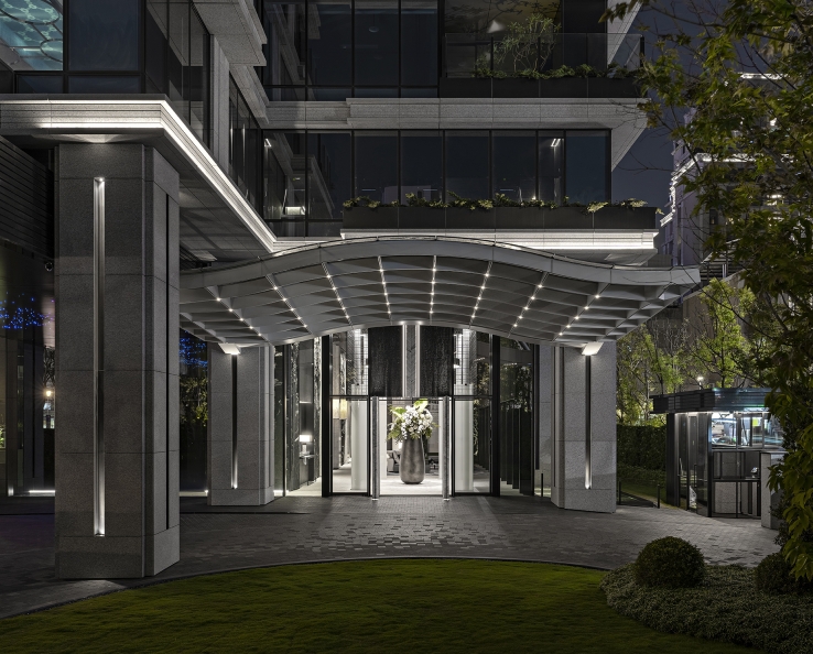Inspired by the tenth-century Chinese famous ink painting ” Travelers Among Mountains and Streams”, lighting designers employ traditional painting perspective (level, far and deep) and techniques (dot, dry brush stroke and splashed ink) with modern lighting touches to echo the architect's concept.