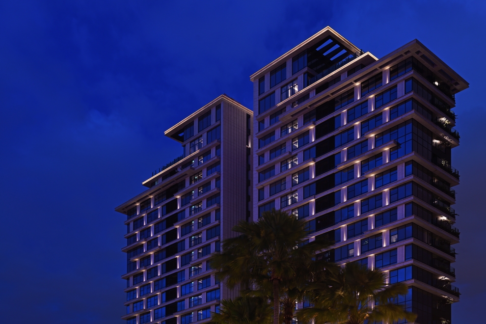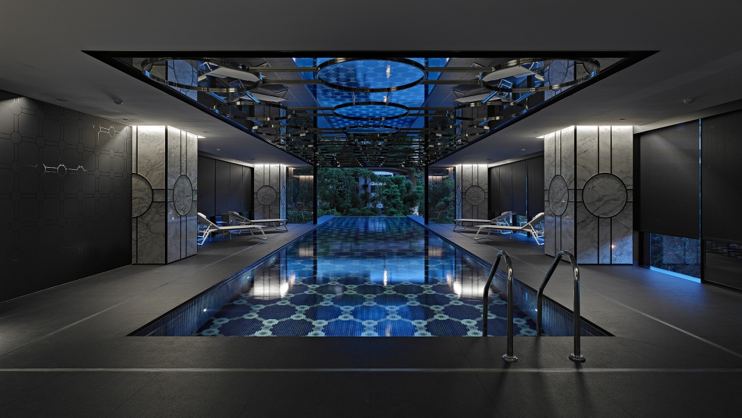 Entry DescriptionSilk Court, the high-end apartment, consists of two 23-story-high buildings on a podium where the public spaces are located. The architect envisioned this structure as a mountain cracked in the middle, invisible mountain stream running in between. Therefore, stone is applied as the major facade material to resemble the rock. Furthermore, rough texture rocks were used on the interior wall of the lobby to emphasize the idea.