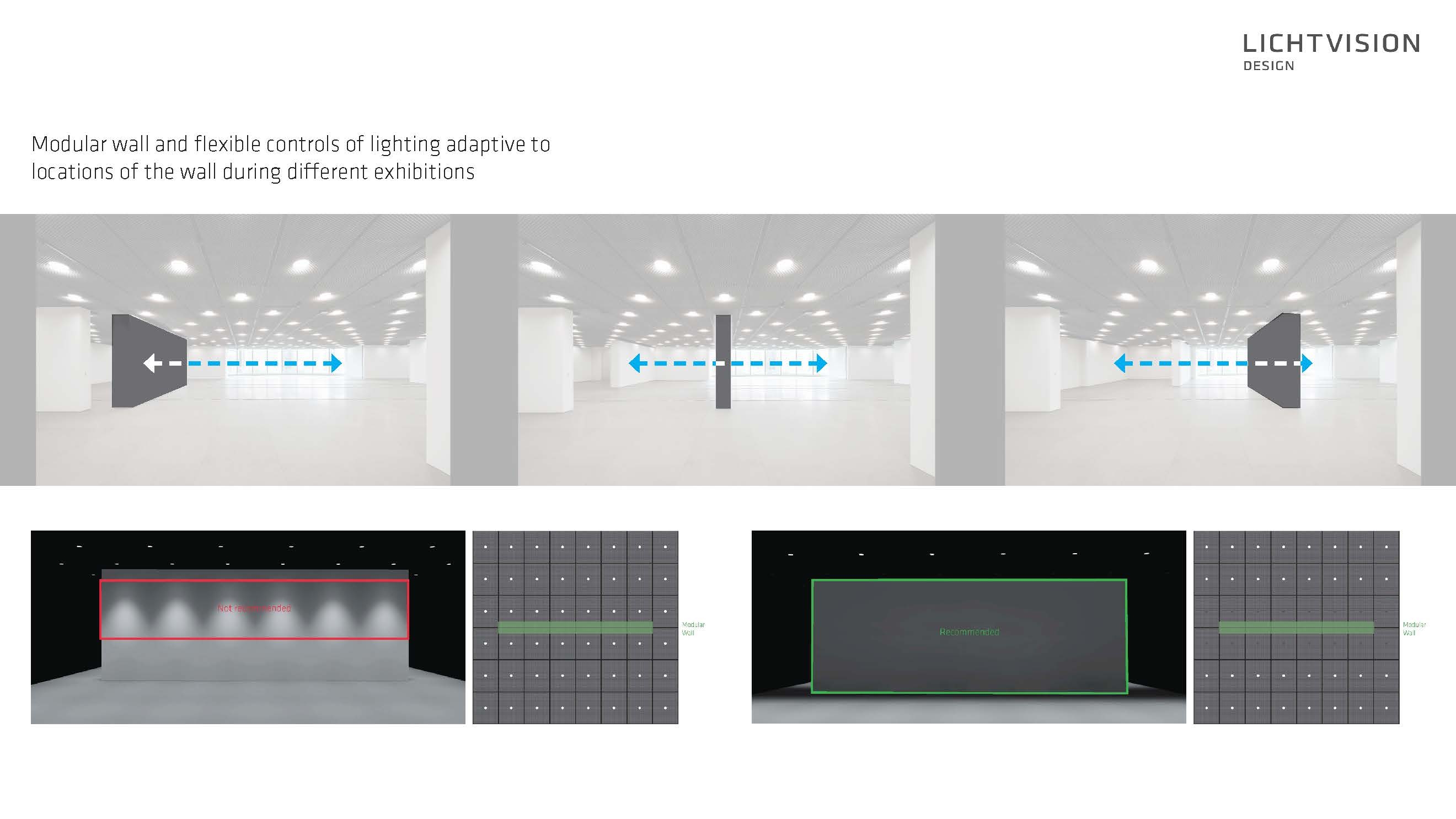 Sustainability ApproachAs part of the project's sustainable approach, adaptive reuse preserves fixtures from renovated tenant spaces for use in other areas needing them. Universal tracks enable the installation of both old and new spotlights in exhibition spaces, minimizing waste. Additionally, a hybrid control system emphasizes wireless sensors and controls, reducing cable usage by 15-20% compared to wired options. This initiative not only lessens the carbon footprint from cable production but also offers a forward-thinking solution for the space.